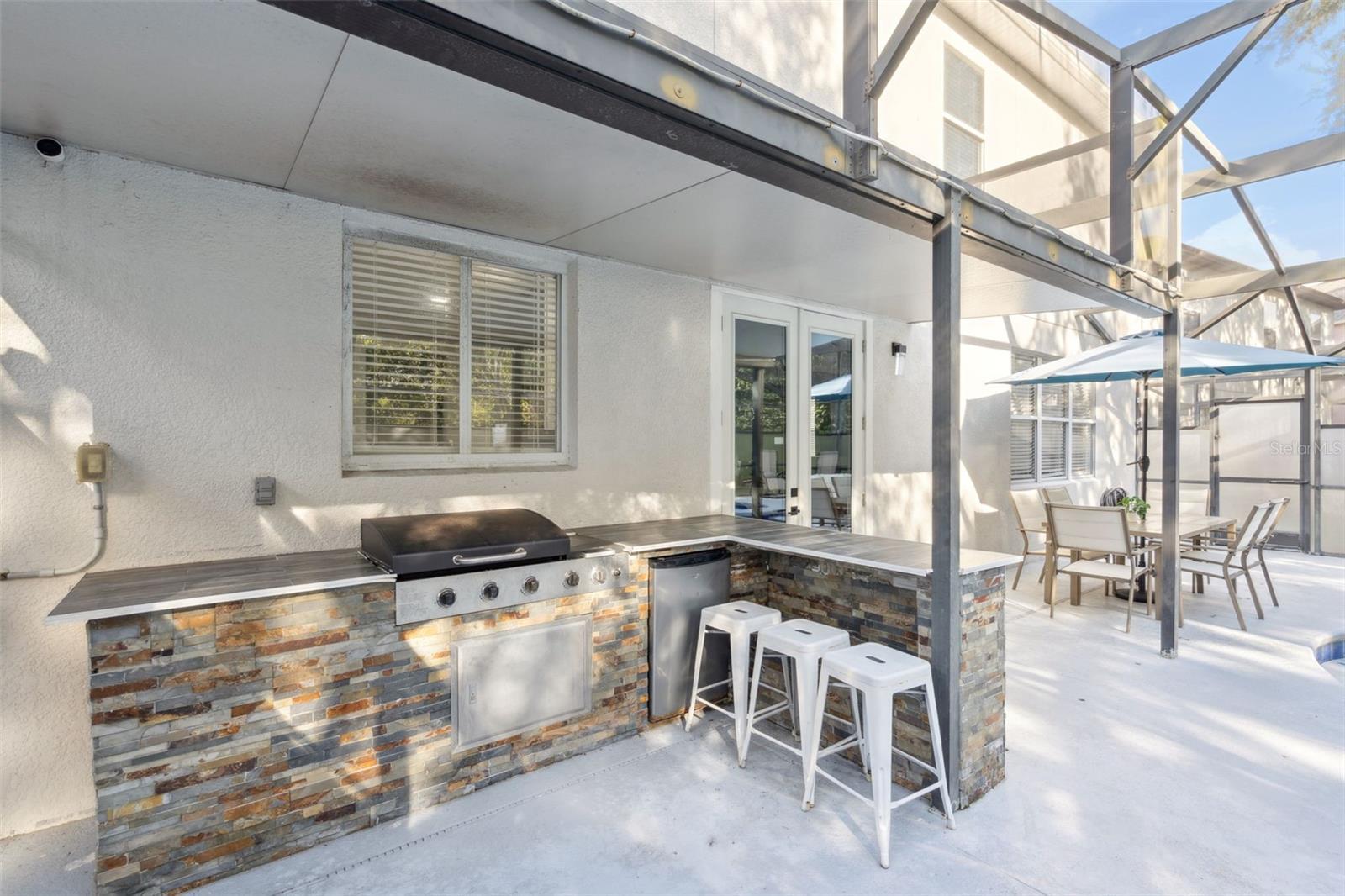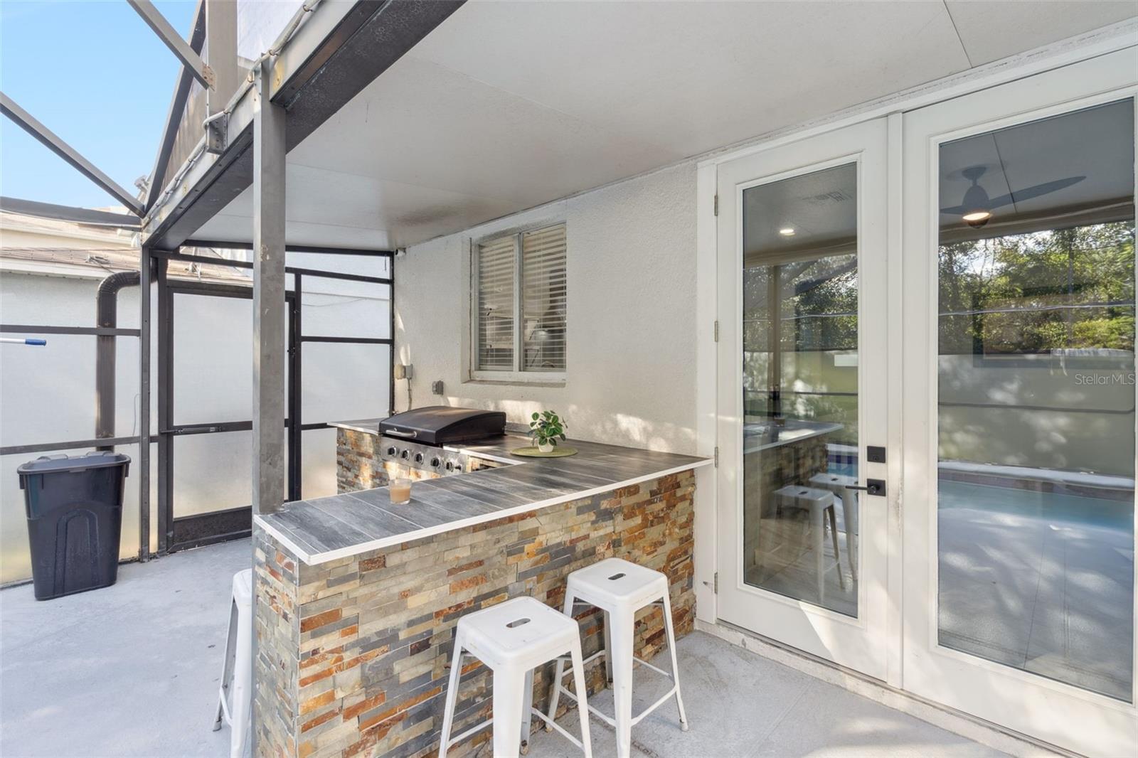 - Awning(s), French Doors, Outdoor Grill, Outdoor Kitchen