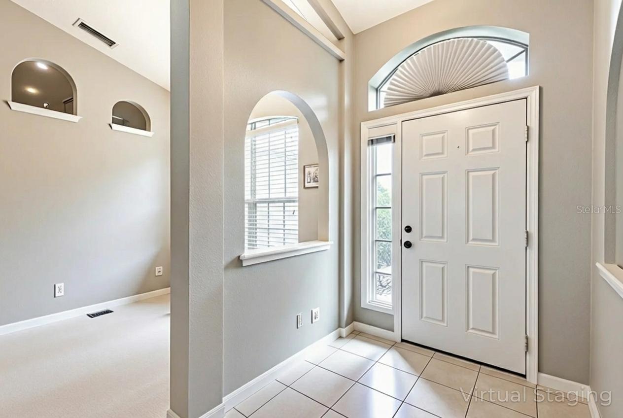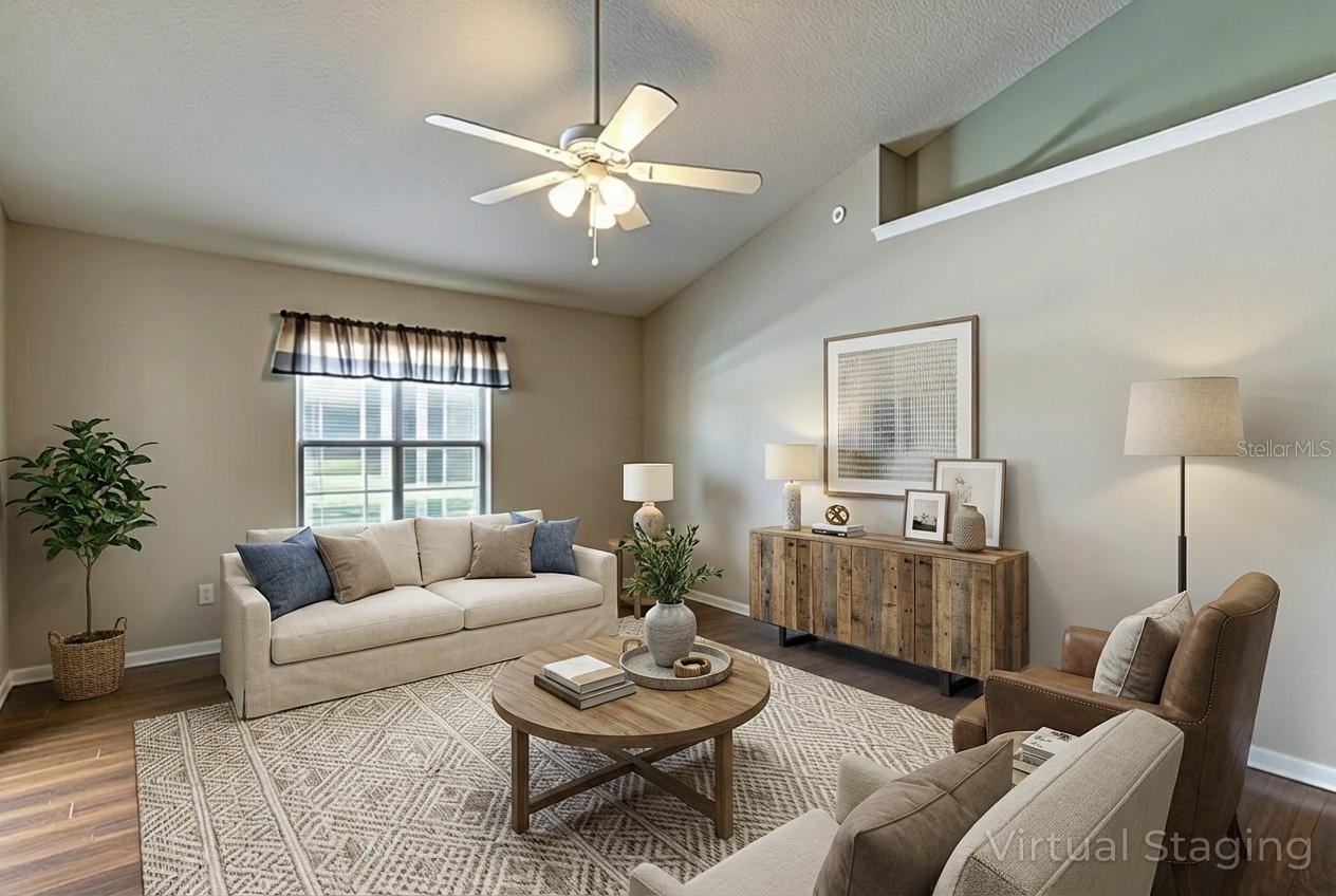 - Ceiling Fans(s), Central Vaccum, Eat-in Kitchen, High Ceilings, Kitchen/Family Room Combo, Primary Bedroom Main Floor, Split Bedroom, Stone Counters, Thermostat, Vaulted Ceiling(s), Walk-In Closet(s), Window Treatments