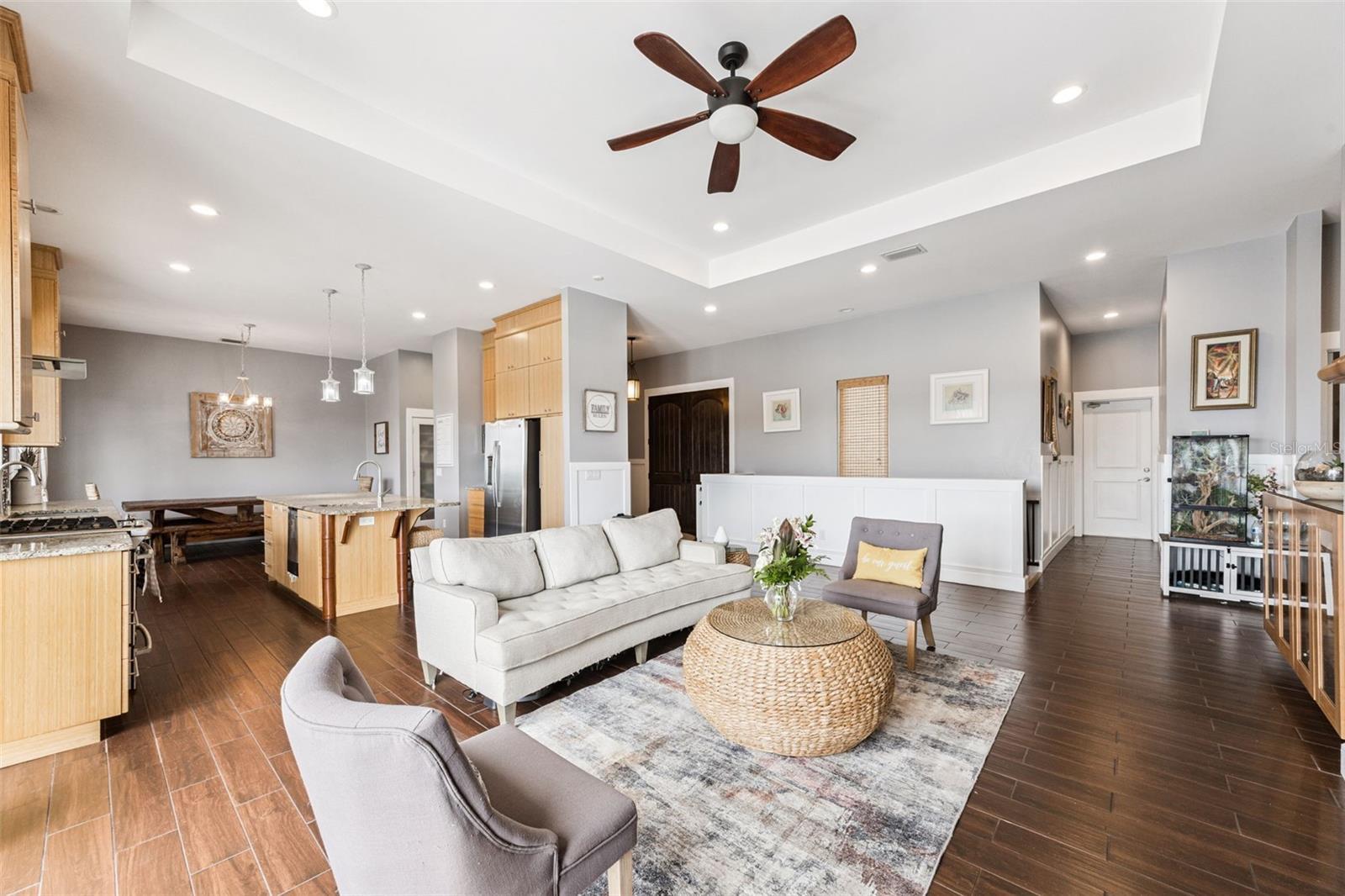 - Built-in Features, Ceiling Fans(s), Central Vaccum, Dry Bar, Eat-in Kitchen, High Ceilings, Open Floorplan, Solid Surface Counters, Solid Wood Cabinets, Split Bedroom, Stone Counters, Thermostat, Tray Ceiling(s), Vaulted Ceiling(s), Walk-In Closet(s), Wet Bar