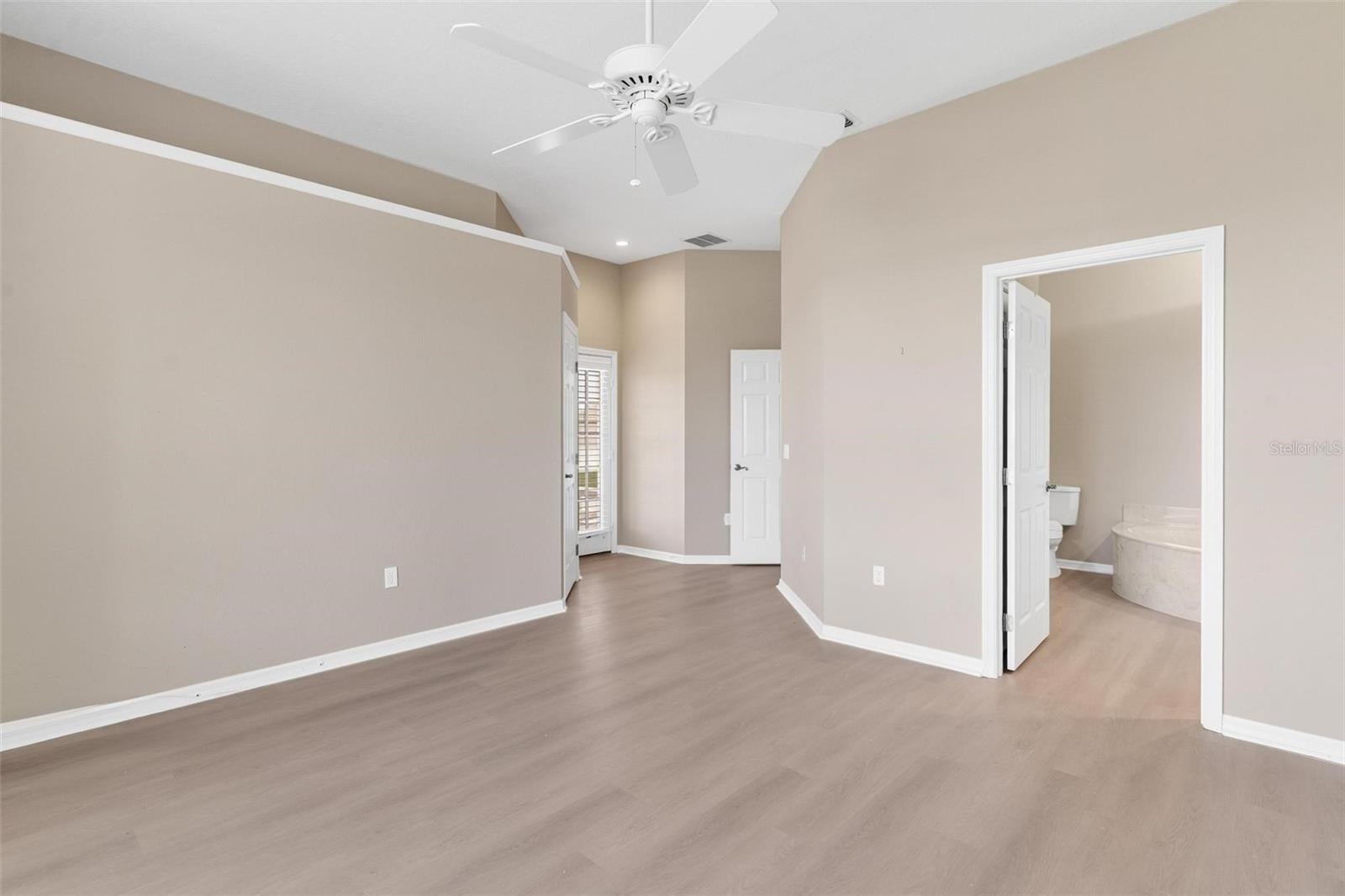 Perched high on a ridge in the gated community of Harbor Hills Country Club, this inviting 2-bedroom, 2-bath home offers comfort, style, and peaceful views of Lake Griffin and beyond. Each bedroom offers private en suite bathrooms. Also, there are two are conditioners to ensure ultimate climate. Step inside to find a neutral color palette and brand-new luxury vinyl plank flooring throughout-making this home move in ready and easy to love. The open living area flows effortlessly to the back screened porch with concrete pavers, where you'll enjoy gorgeous sunrise views over the spacious, open backyard- the perfect spot for morning coffee or quit reflection, or enjoy your favorite show as it is TV ready. The back porch also boasts roll down shades for privacy. Located in one of Central Florida's most sought-after golf and country club communities, this home offers the perfect blend of relaxation, recreation, and refined living. The two car garage features well maintained epoxy flooring. Come see why life feels brighter in Harbor Hills.