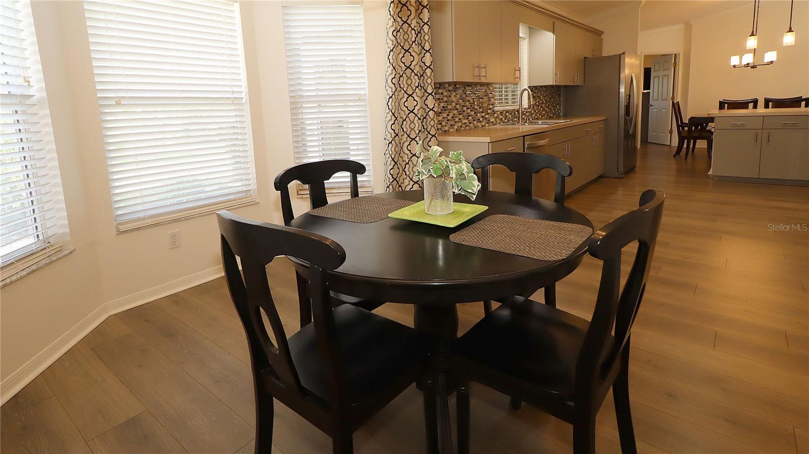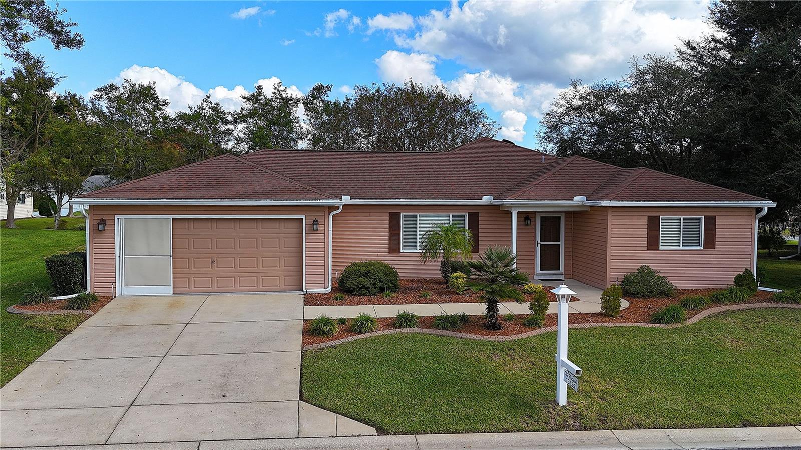 Here is an awesome opportunity to be able to live in this prestige gated 55+ community of Del Webb Spruce Creek Golf and Country Club. Mr. & Mrs. Clean currently live here and are wanting to start a new chapter in life. Professionally landscaped with curbing. Move-in ready. Laminate flooring throughout with tile in the bathrooms. Even the enclosed lanai is tiled; features acrylic windows w/valances, ceiling fan w/lighting and is climate controlled for year round use. Paver patio completes the outdoor living scenario with great eastern exposure. The home is very comfortable with living/dining combo that has crown molding plus a pony wall at the entry for architectural interest. The galley kitchen has stainless still appliances and sink with upgraded faucet; Formica counters with tile backsplash, recently painted cabinetry w/upgraded hardware. Breakfast nook with bay window over looking the patio and also features crown molding from living/dining room areas. Bonus room (great for office/den). Primary suite has slider entry to lanai and has a walk-in closet plus a built-in closet. En-suite has double, upgraded vanity with culture marble counter. Walk-in shower with sliding doors, raised toilet and linen closet. A window above the toilet adds natural lighting. Large guest bedroom and bath will not disappoint guests. Two-car garage w/sliding privacy screens, utility sink, painted floor, keyless entry, pull-down stairs & storage. Shingles (2013), HVAC (2022), water heater (2025). Located close to the Front Gate. Start enjoying this gated community that has 3 heated pools, tennis, pickleball, softball, fitness center, community center and restaurant onsite plus 4 - 9 holes of golf course. Numerous clubs and activities. Do as much as you want --- or nothing at all! For once, you are in control. Come be our new Del Webb neighbor.