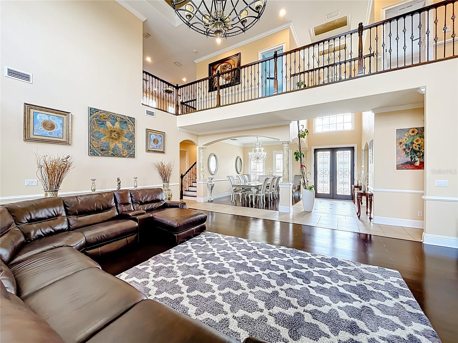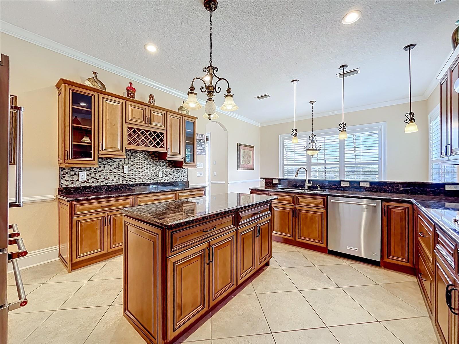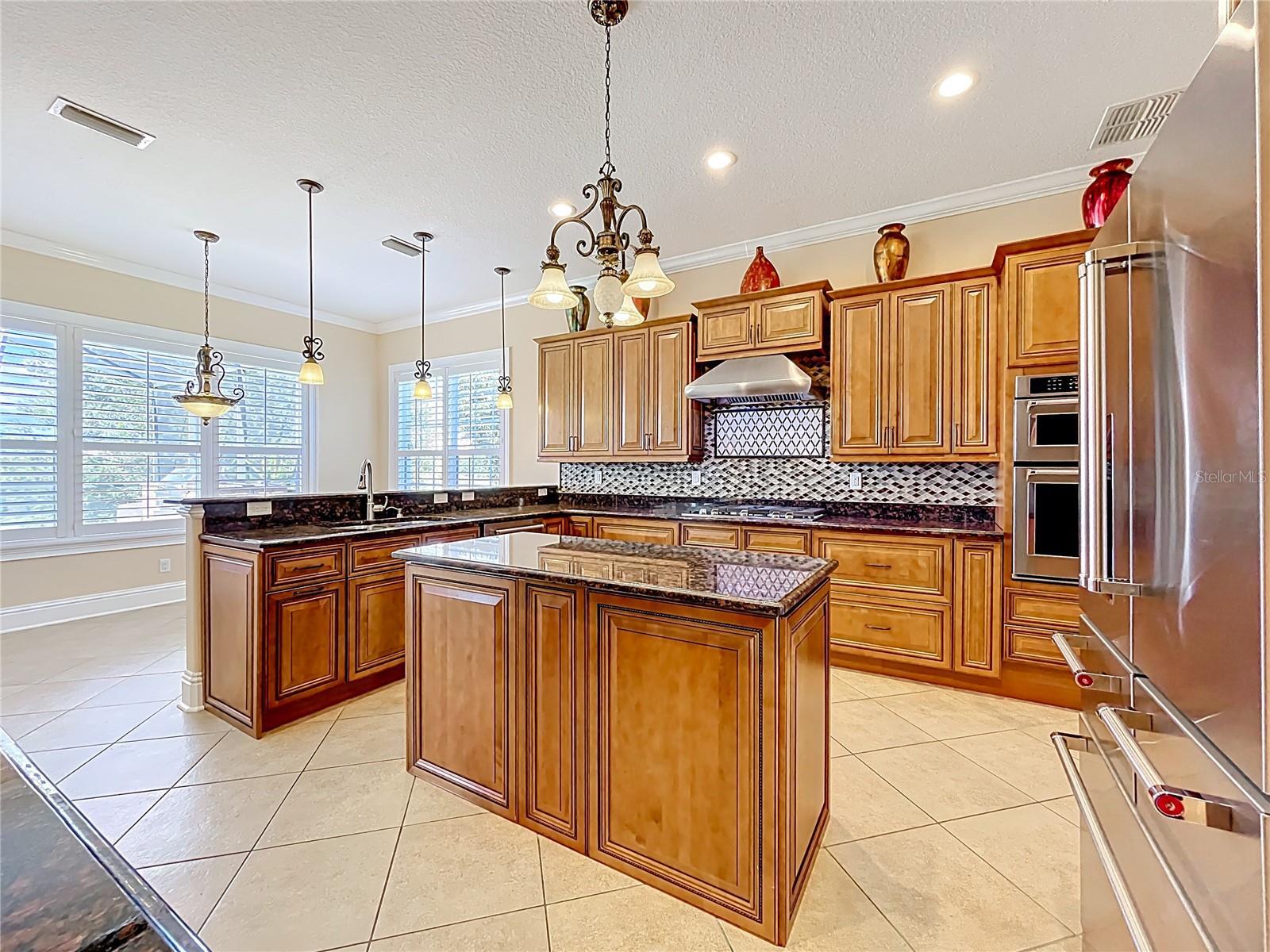 Absolutely Beautiful and Stunning 5-Bedroom Estate with Heated Saltwater Pool & Lake Views in Desirable Lost Lake Reserve of Clermont in the Tuscany Ridge Community Welcome to your dream home! This magnificent 5-bedroom, 5.5 bathroom residence offers almost 4,500 square feet of luxurious living space on a sprawling half-acre lot. From the moment you step inside, you'll be captivated by the grand scale and elegant design that truly feels like a private mansion. The home features a split floor plan with the Primary bedroom on the first floor and beautiful tile and wood flooring throughout. The gourmet kitchen is a chef's delight, boasting granite countertops, custom cabinetry, stainless steel appliances, and a built-in oven and Microwave. The Upstairs has a spacious loft provides the perfect space for a media room, home office, or play area. Step outside to your personal and massive screened-in heated saltwater pool and spa, surrounded by brick paver decking. Here you will also discover a fully equipped outdoor kitchen and BBQ grill, perfect for hosting unforgettable gatherings. This space features a built-in stainless steel grill, a prep station, and ample granite counter space, making outdoor cooking both stylish and convenient. This estate home also includes a generously sized 3-car side-entry garage, offering ample space for vehicles and storage. Designed for convenience, the garage features a dedicated half bath, perfect for quick cleanups after outdoor activities or poolside gatherings. Equipped with a remote-controlled opener, access is effortless and secure. Built-in storage areas provide plenty of room for tools, equipment, and seasonal items, making organization a breeze. The private backyard offers serene views of a tranquil lake with no rear neighbors, ensuring peace and privacy. Additional highlights include a charming front porch off the upstairs bedroom, a brick paver driveway, and more. It's in a prime location in the sought-after Tuscany Ridge community. This home is truly a masterpiece—beautifully designed, impeccably maintained, and ready for you to move in and enjoy.