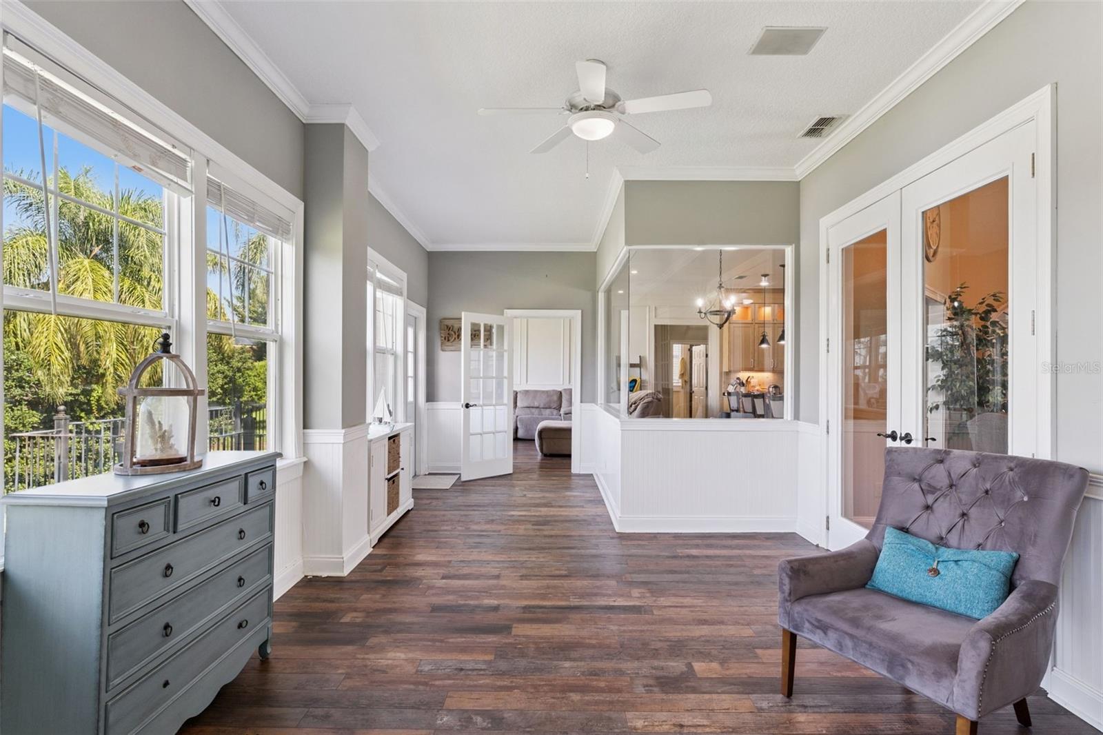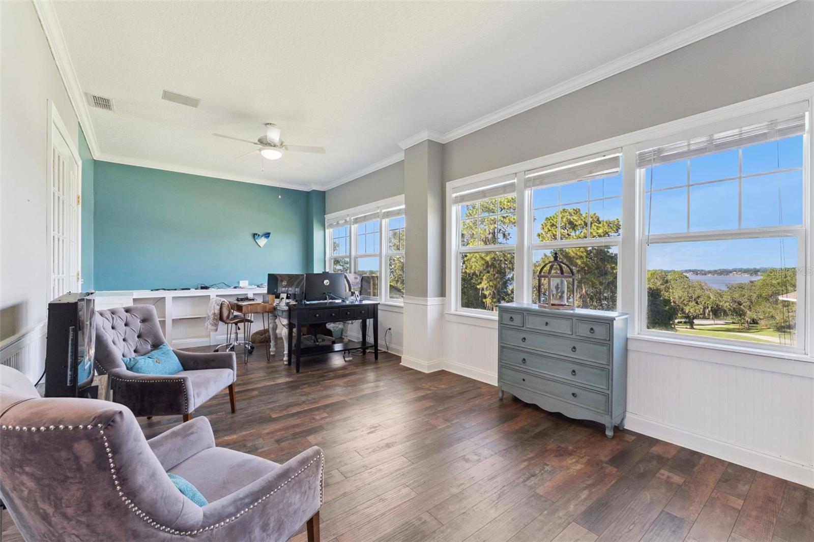 Under contract-accepting backup offers. Welcome to this stunning one-of-a-kind residence in the sought-after Lake Ridge Club, a chain of lakes community, with modern luxury across nearly 5,000 square feet of thoughtfully designed living space. This home features six bedrooms, 3.5 baths, a spacious loft, and a fully finished basement that creates an entertainer's paradise ideal for multi-generational living or those who love to host. As you enter through the gorgeous double doors, the expansive living room and formal dining room with soaring high ceilings welcome you into this remarkable home. The split floor plan ensures maximum privacy, with heart of the home being the chef's dream kitchen that opens to the family room with beautiful glimpses of Lake Minnehaha. This kitchen has custom solid wood stacked cabinetry with elegant crown molding, granite countertops, newer stainless steel appliances including a WIFI-enabled touch screen refrigerator, a separate prep sink, and soft-close drawers providing ample storage. The generous breakfast nook and convenient breakfast bar make this space ideal for casual family meals and entertaining guests. The main level features high-end waterproof laminate flooring throughout for durability and style, along with stunning newer windows that frame breathtaking lake views and spectacular sunsets. Two bedrooms and a full bath provide comfortable accommodations, while the recently remodeled guest bath and half-bath showcase custom vanities and charming modern farmhouse touches. The remodeled laundry room features designer tiles and butcher block countertops, plus a convenient mudroom for everyday living. Your personal sanctuary awaits in the expansive main bedroom suite, with coffered ceilings and double doors that open to the massive loft or flex space. This versatile area offers endless possibilities such as home office, play area for little ones, sitting room or homeschool space, all flooded with natural light from numerous windows and featuring stunning lake views. Go out onto the private balcony facing Lake Minnehaha to enjoy your morning coffee while watching gorgeous sunsets paint the sky. The en-suite bath is a masterpiece of luxury, complete with dual walk-in closets, double vanities and a large walk-in shower. The magic doesn't stop there. Adding a delightful touch of intrigue, a custom-built secret library door conceals a hidden stairway leading to the fully finished basement, an entertainment haven spanning over 2,100 square feet. This lower level could easily be transformed into an in-law suite or next-gen living quarters and includes a second primary suite with a Jack-and-Jill bath, two additional bedrooms, a dedicated movie room complete with furniture, and a custom bar ideal for entertaining. The massive bonus or game room provides endless possibilities for recreation and relaxation. A screened-in porch off the downstairs level offers a spot for outdoor relaxation, alfresco dining and grilling, with access to the spacious backyard. The property includes a two-car side entry garage with ceiling-to-floor cabinetry for organized storage, plus an expanded driveway. The low HOA fee includes access to the clubhouse and community pool, and for an additional fee, storage is available for boats/jet skis/RVs. Please check out the virtual tour for a stunning drone video showcasing just how close this magnificent home is to the lake. As added bonus, this home has a $275,000 plus/minus assumable mortgage at 2.875%.