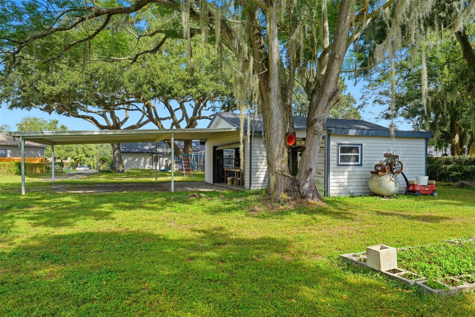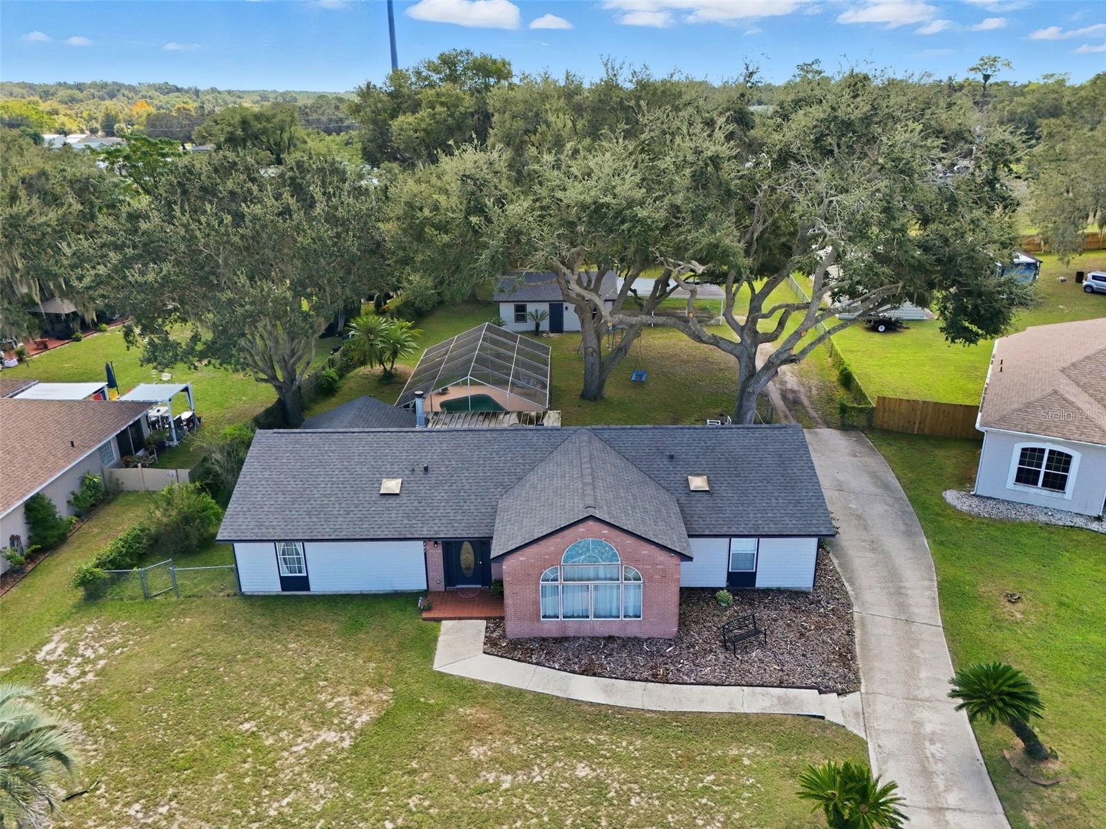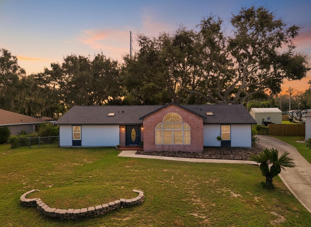 Prime Leesburg Pool Home with Chain of Lakes Access! Enjoy the best of Florida living in this inviting 3-bedroom, 2-bath home with deeded access to Lake Griffin and the Chain of Lakes—complete with a private community boat ramp and dock for endless boating and fishing adventures. Situated on just over a half-acre, this property offers the perfect balance of indoor comfort and outdoor enjoyment. Relax or entertain in your own backyard oasis featuring a screened-in inground pool, spacious covered back porch, and a fully fenced yard shaded by a stunning canopy of live oaks. Inside, you’ll find a bright and open layout with an eat-in kitchen that opens to the pool area through sliding glass doors and features a cozy wood-burning fireplace, creating a warm and inviting gathering space. A flex room provides versatile use for an office, craft room, or hobby area. Both bathrooms feature skylights, adding natural light throughout, and one bedroom includes a loft area—perfect for storage or a child’s hideaway. The property also boasts an oversized detached 2-car garage/workshop with a 2-car carport, offering flexible use for vehicles, projects, or storage. Additional highlights include a generator hook-up, city water and sewer, a reverse osmosis system at the kitchen sink, and plenty of room to park a boat or RV. Major updates include a new roof (2022) and HVAC system (2021). Don’t miss this rare opportunity to own a pool home with private lake access, a workshop, and beautiful natural surroundings—schedule your showing today! Seller is offering $5,000 to the buyer for prepaids|closing costs|rate buydown with an accepted contract.