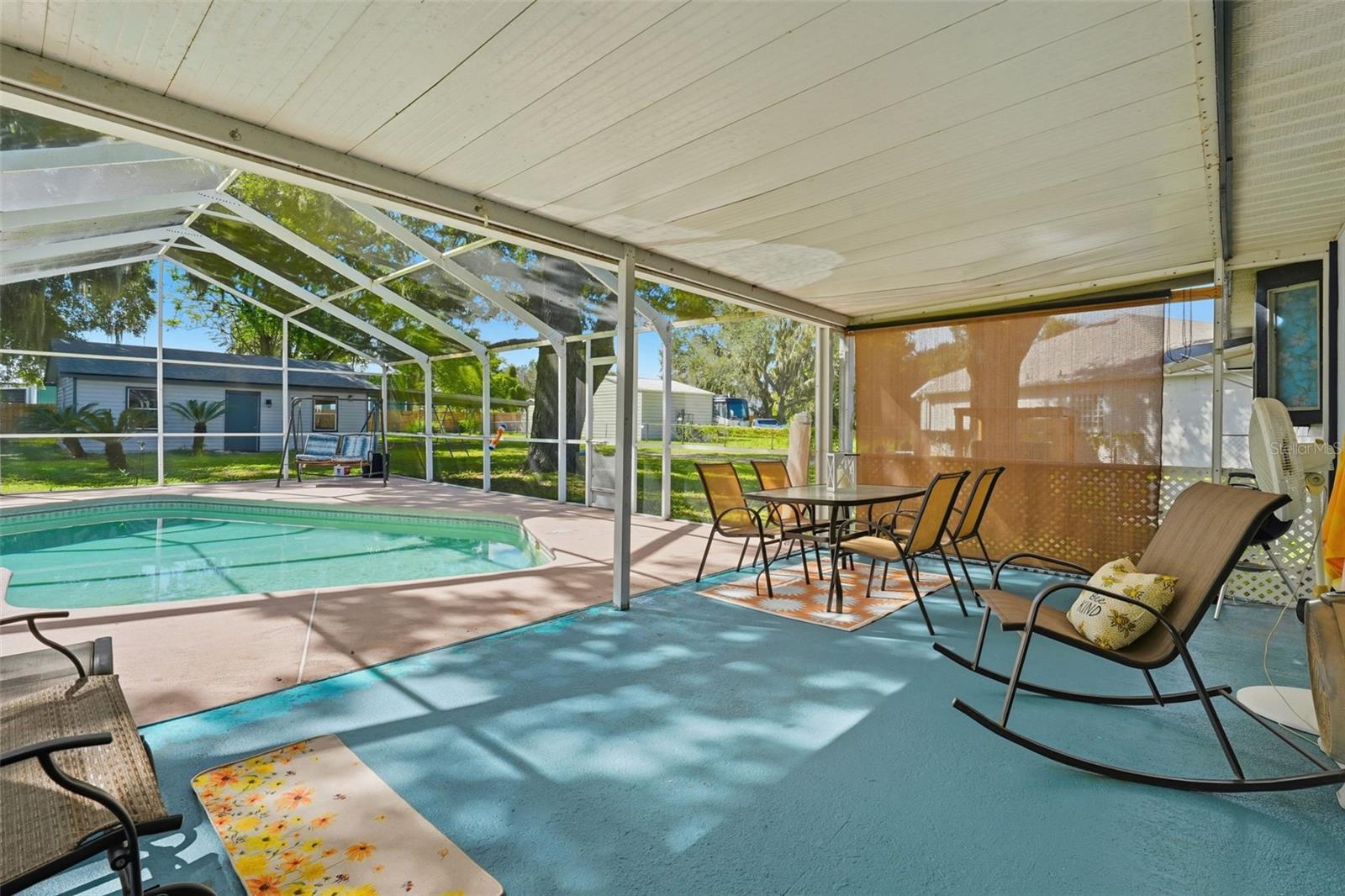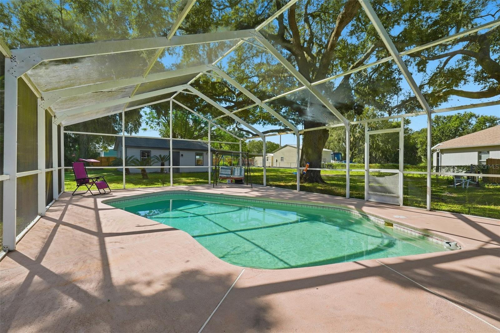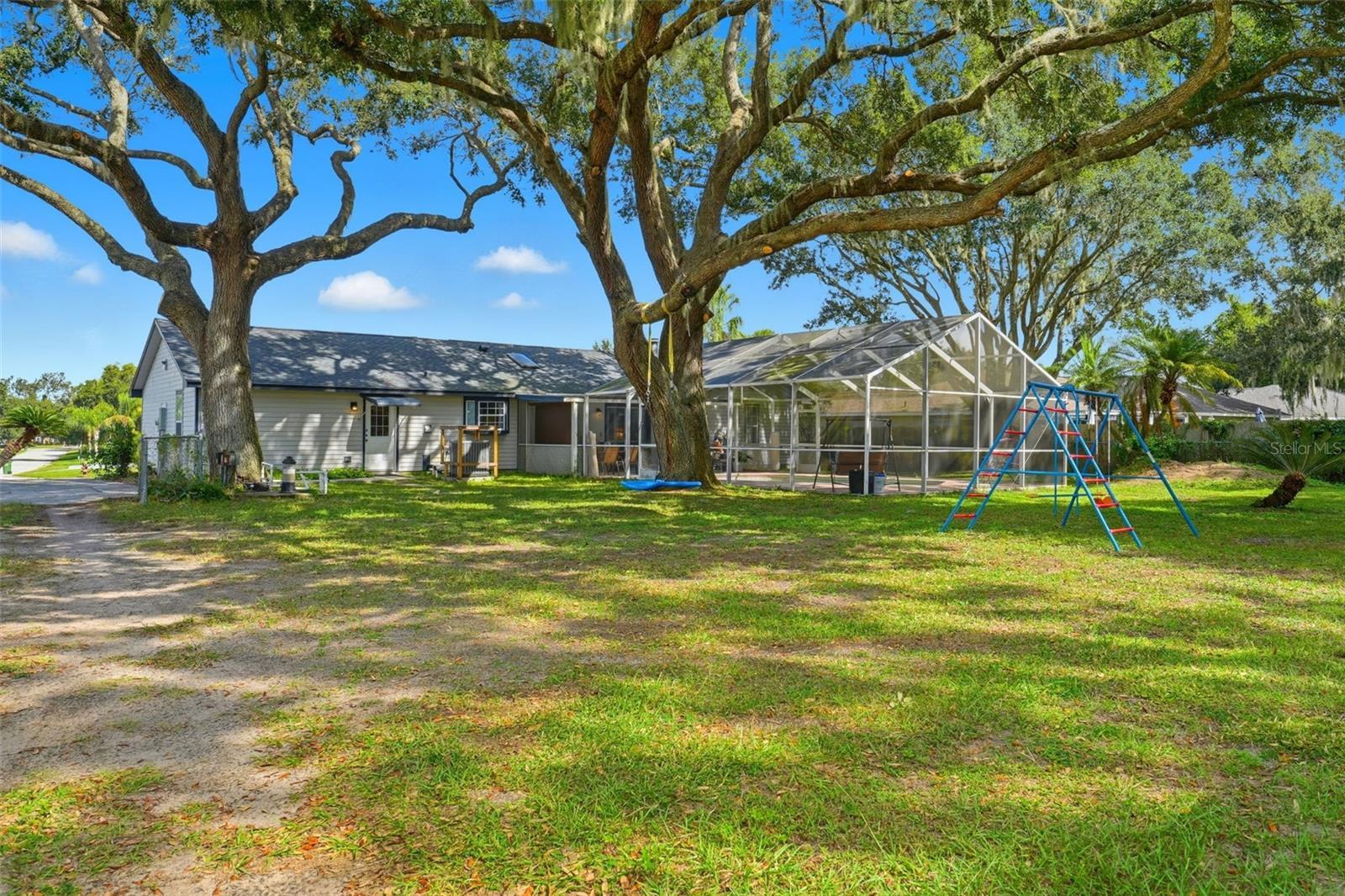 Prime Leesburg Pool Home with Chain of Lakes Access! Enjoy the best of Florida living in this inviting 3-bedroom, 2-bath home with deeded access to Lake Griffin and the Chain of Lakes—complete with a private community boat ramp and dock for endless boating and fishing adventures. Situated on just over a half-acre, this property offers the perfect balance of indoor comfort and outdoor enjoyment. Relax or entertain in your own backyard oasis featuring a screened-in inground pool, spacious covered back porch, and a fully fenced yard shaded by a stunning canopy of live oaks. Inside, you’ll find a bright and open layout with an eat-in kitchen that opens to the pool area through sliding glass doors and features a cozy wood-burning fireplace, creating a warm and inviting gathering space. A flex room provides versatile use for an office, craft room, or hobby area. Both bathrooms feature skylights, adding natural light throughout, and one bedroom includes a loft area—perfect for storage or a child’s hideaway. The property also boasts an oversized detached 2-car garage/workshop with a 2-car carport, offering flexible use for vehicles, projects, or storage. Additional highlights include a generator hook-up, city water and sewer, a reverse osmosis system at the kitchen sink, and plenty of room to park a boat or RV. Major updates include a new roof (2022) and HVAC system (2021). Don’t miss this rare opportunity to own a pool home with private lake access, a workshop, and beautiful natural surroundings—schedule your showing today! Seller is offering $5,000 to the buyer for prepaids|closing costs|rate buydown with an accepted contract.