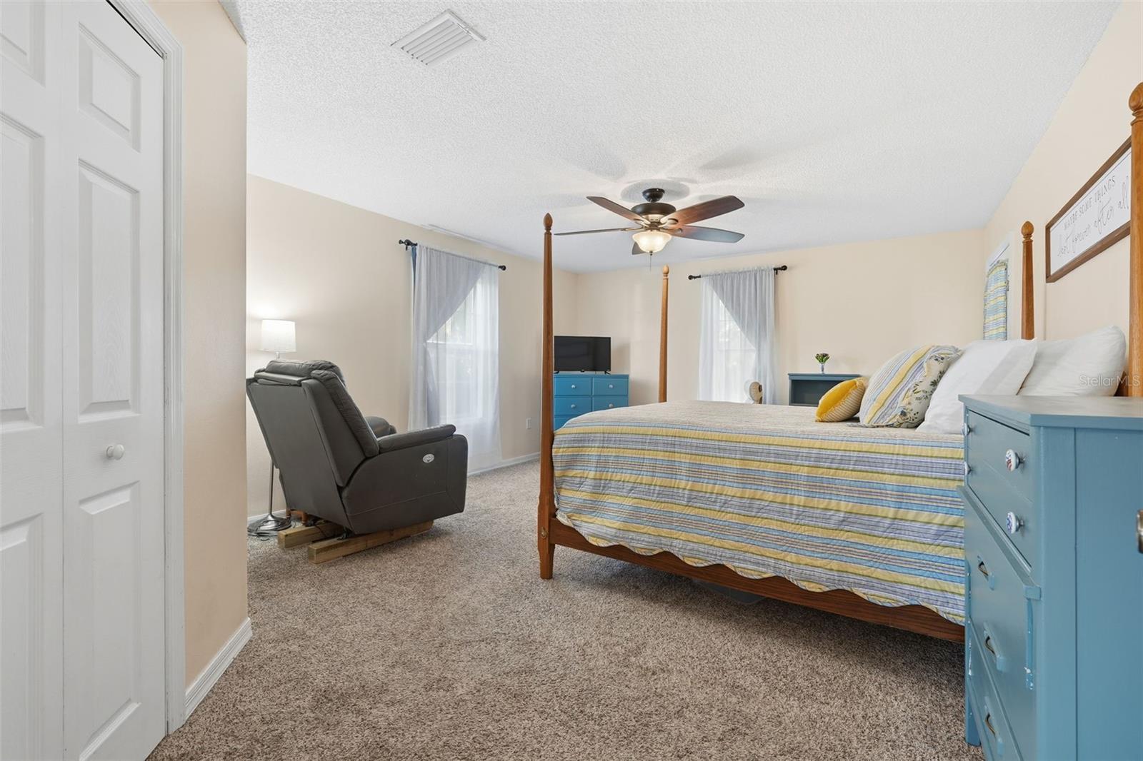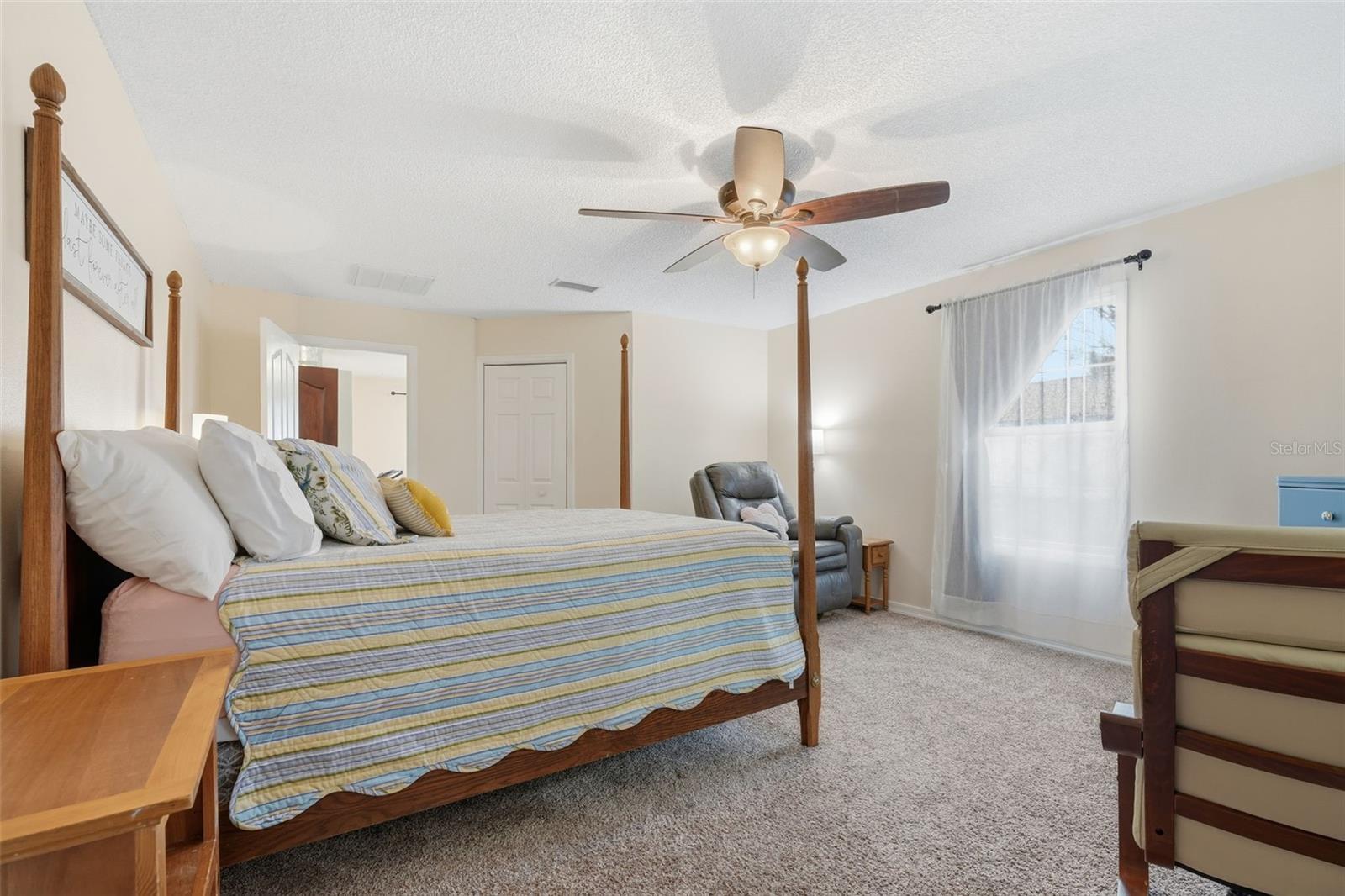 - Ceiling Fans(s), High Ceilings, Primary Bedroom Main Floor, Solid Wood Cabinets, Split Bedroom, Thermostat, Walk-In Closet(s), Window Treatments