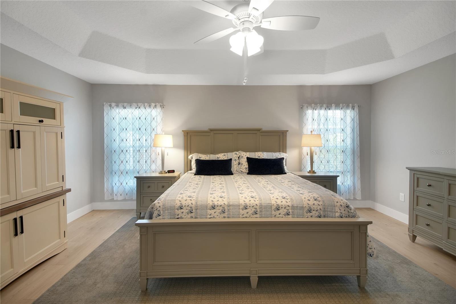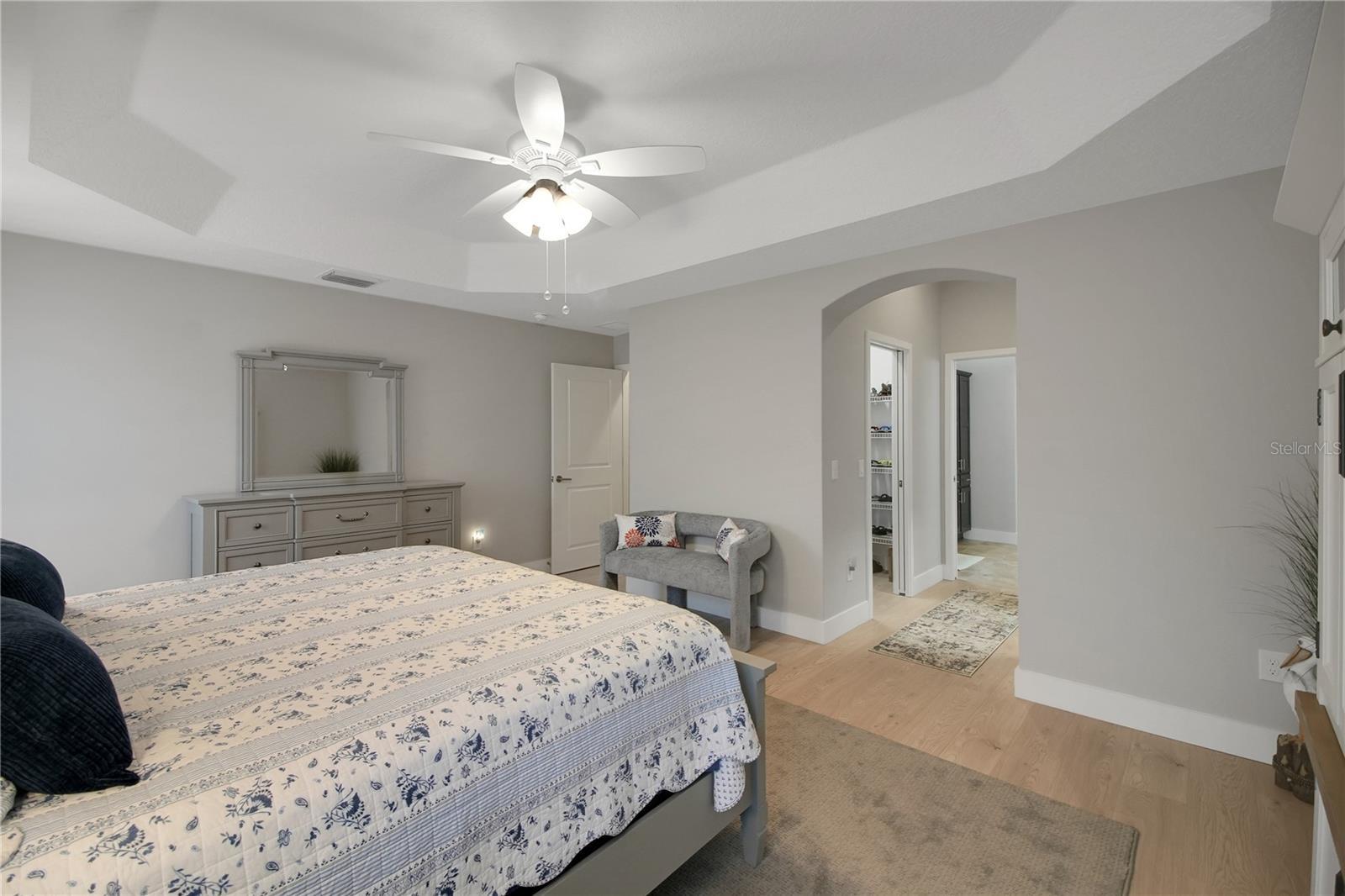 - Ceiling Fans(s), Eat-in Kitchen, High Ceilings, Open Floorplan, Primary Bedroom Main Floor, Split Bedroom, Stone Counters, Tray Ceiling(s), Walk-In Closet(s)