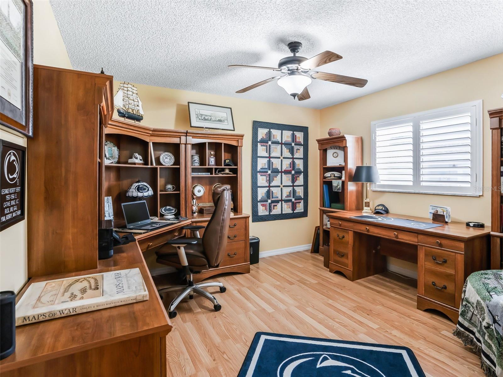 - Ceiling Fans(s), Eat-in Kitchen, High Ceilings, Primary Bedroom Main Floor, Split Bedroom, Stone Counters, Walk-In Closet(s), Window Treatments