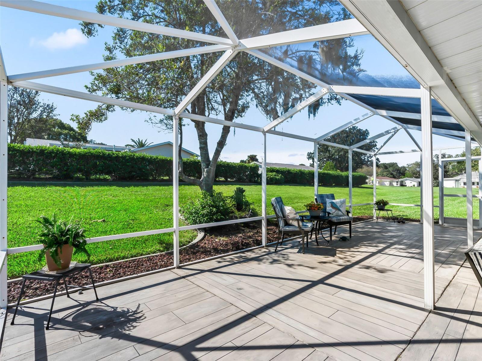 GORGEOUS 3 Bedroom, 2 Bath TURN-KEY Furnished home in desirable Spruce Creek South! This sprawling, well-cared-for residence is offered fully furnished "TURN KEY", including accessories and a golf cart. Nestled on an oversized homesite with palm trees, lush landscaping, and a private backyard, this home offers exceptional comfort and convenience. Enjoy peace of mind with a NEW ROOF (2025) and dual water heaters (2021). The spacious two-car garage features golf cart parking, service door, and pull-down attic stairs. The remodeled kitchen (2021) boasts white cabinetry, granite countertops, and oak flooring, flowing into a bright breakfast nook with bay windows. The split-bedroom floor plan offers privacy, with a large primary suite featuring a remodeled en-suite bath, walk-in closet, and dual vanities. Two guest bedrooms—one perfect as a home office—share a full guest bath. Formal living and dining rooms complement the family room that opens to an enormous screened-in lanai, perfect for entertaining family and friends. The lanai is beautifully furnished with new furniture and a cozy fire pit, ideal for relaxing or gatherings year-round. Additional highlights include ceiling fans throughout, gutters and downspouts, and a wrap-around sidewalk from the garage to the lanai. Just minutes to the clubhouse, pickleball, billiards, gym, and softball field. Close to The Villages, VA Clinic, shopping, dining, and medical facilities. Lovingly maintained, move-in ready, and truly one of a kind!