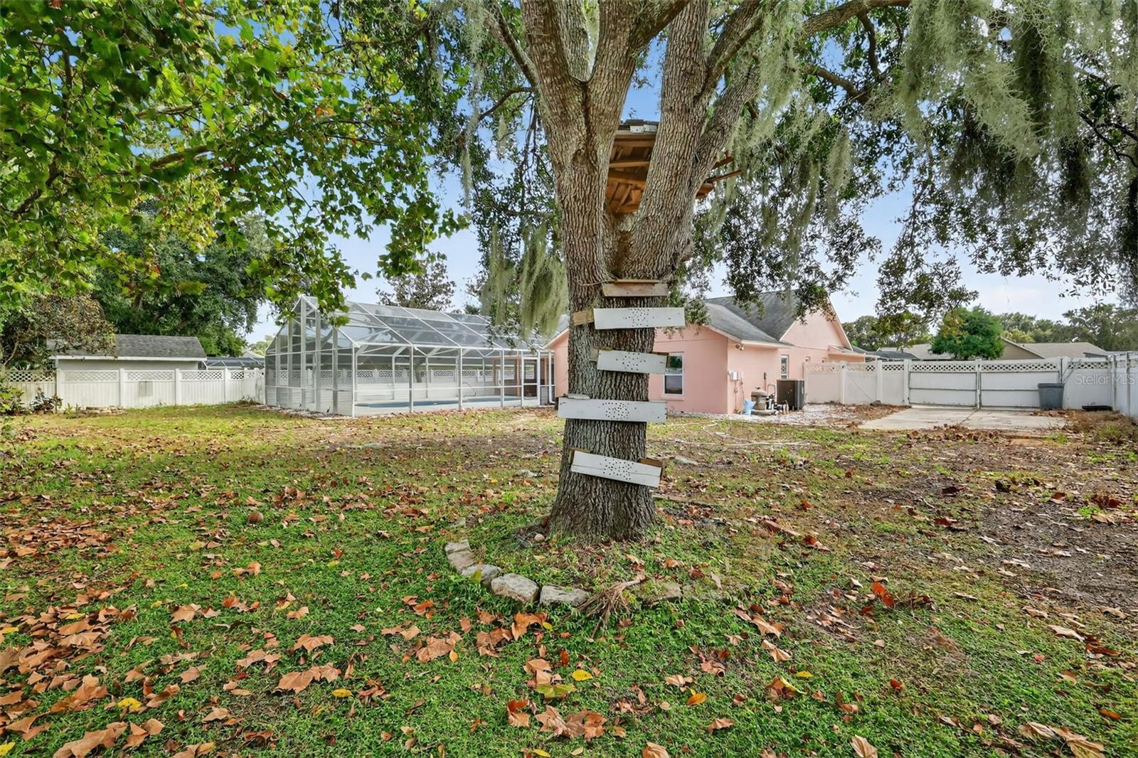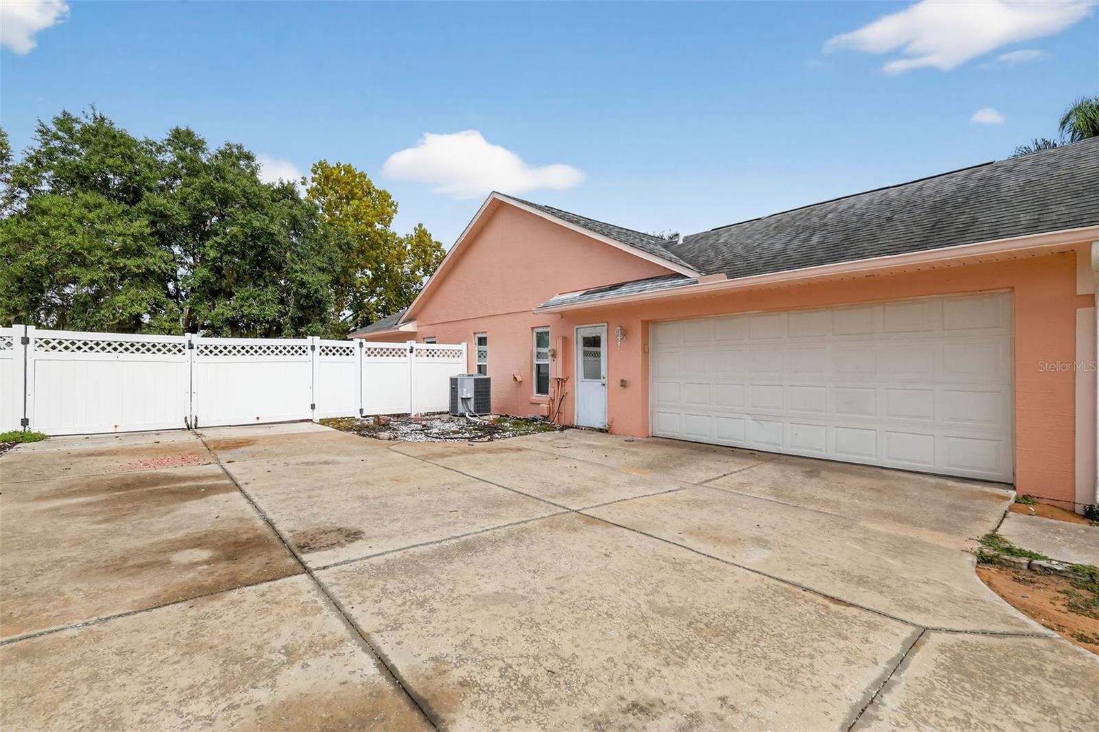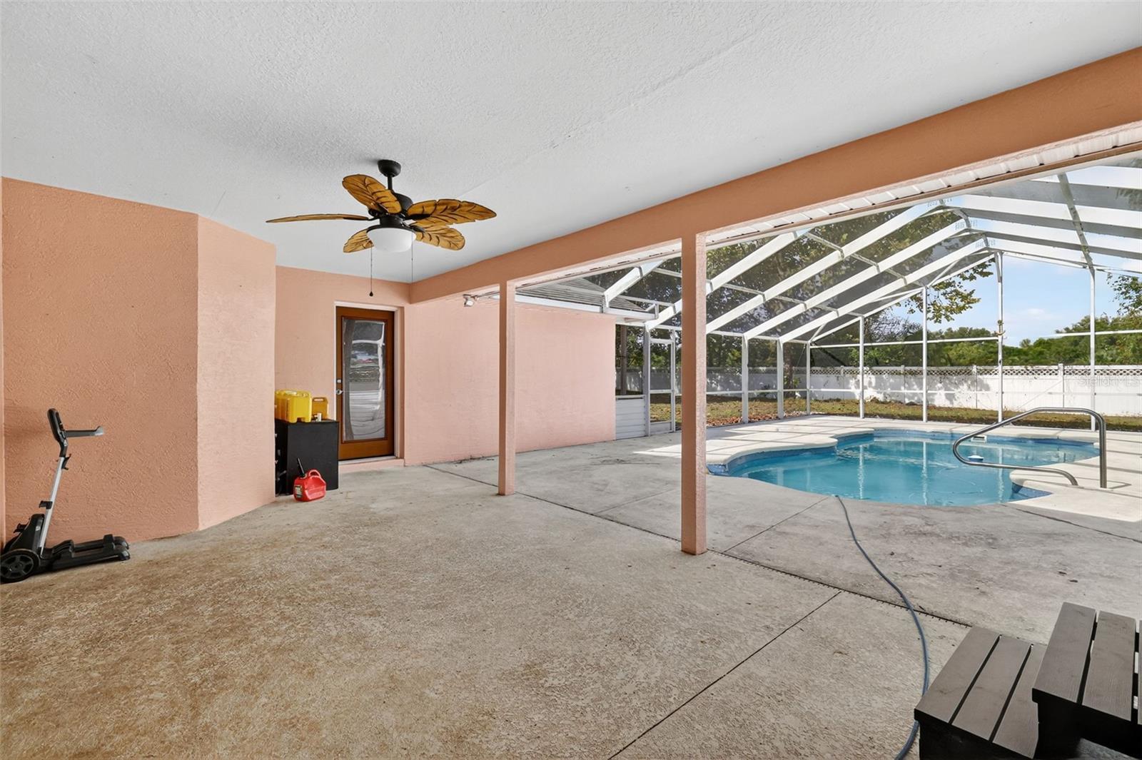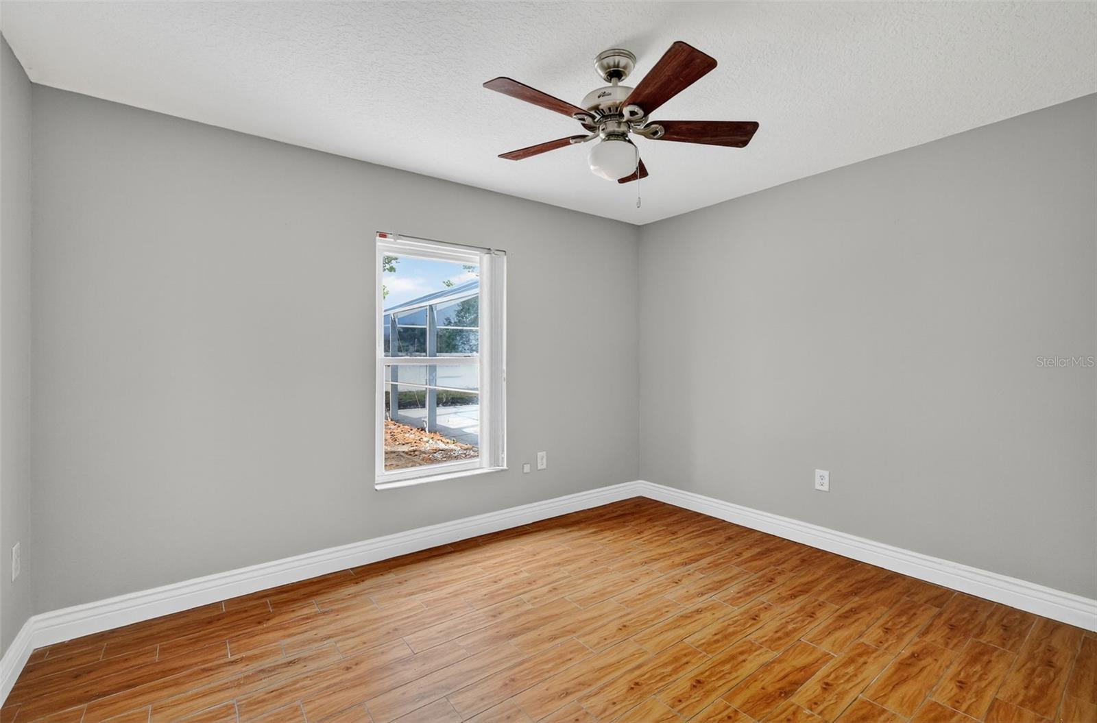 Welcome to this 4 bedroom, 2 bath pool home with Lake Yale access. The open, split floor plan features vaulted ceilings and wood-look tile flooring throughout. The kitchen offers a built-in stove, breakfast bar seating, and opens to the living and dining areas perfect for everyday living or entertaining. The primary suite has direct access to the pool, a walk-in closet, and a private bath. The guest bath also opens to the pool area for added convenience. Step outside to enjoy the screened, heated chlorine pool, relaxing hot tub, and fenced backyard with a dog run. Recent updates include new interior paint, new pool enclosure screens, and exterior paint completed in April 2025. Additional features include an indoor laundry room and side-entry garage. Experience the best of Florida living with this spacious home and community Lake Yale access.