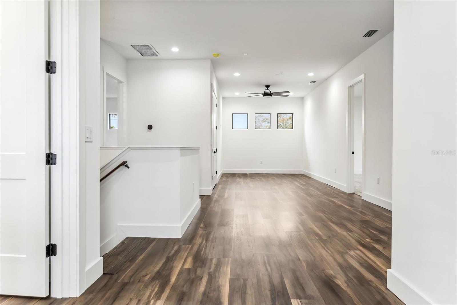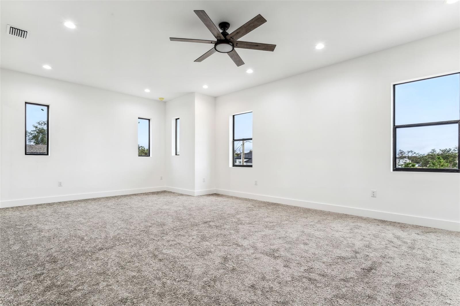 - Ceiling Fans(s), Crown Molding, High Ceilings, Open Floorplan, PrimaryBedroom Upstairs, Solid Surface Counters, Thermostat