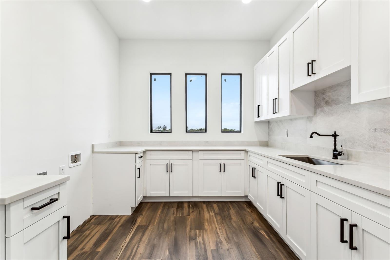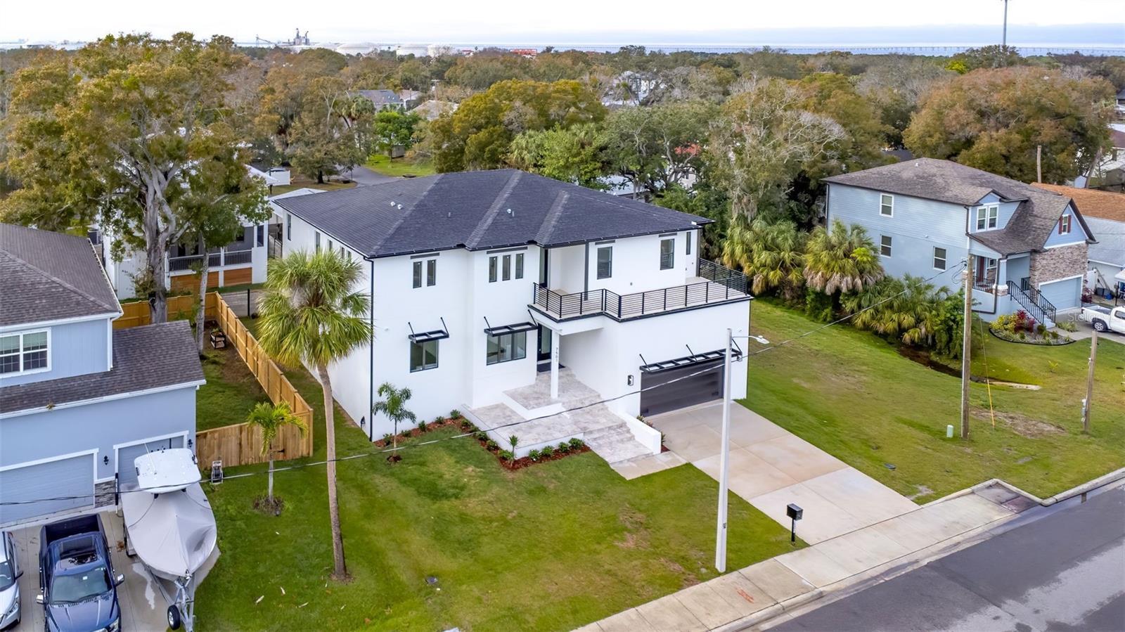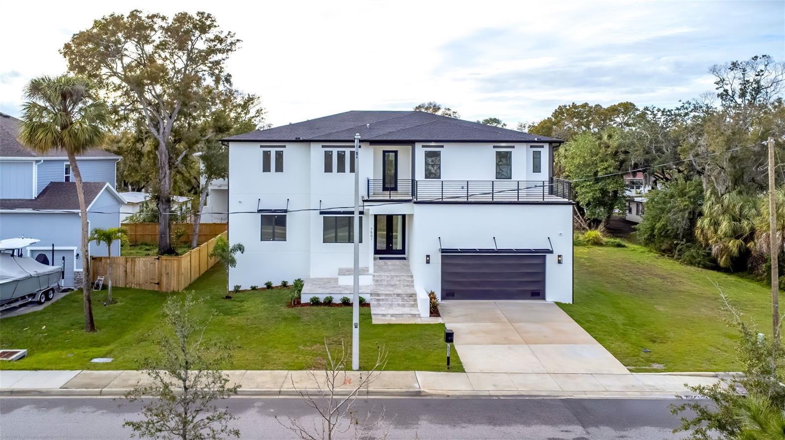 Modern new construction in Port Tampa with no HOA or CDD. This 5BR/4.5BA home offers 4,941 SF of open living space just minutes from Hyde Park, Downtown, and Picnic Island Beach. Features include a chef’s kitchen with gray shaker cabinets, waterfall quartz countertops, quartz backsplash, stainless Forno appliances, and dual-faucet sink. Open-concept living and dining lead to a large tiled patio ideal for entertaining. The primary suite offers two walk-in closets and a spa-style bath with freestanding tub and dual vanities. Each bedroom includes an ensuite bath and walk-in closet. Additional highlights: loft with balcony, first-floor flex room/office, 50AMP, 240V outlet for car charger, 17 built-in speakers, and prewiring for 8 exterior cameras.