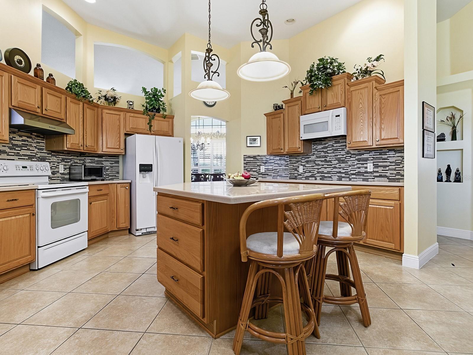 - Built-in Features, Ceiling Fans(s), Eat-in Kitchen, High Ceilings, Kitchen/Family Room Combo, Split Bedroom, Stone Counters, Walk-In Closet(s)