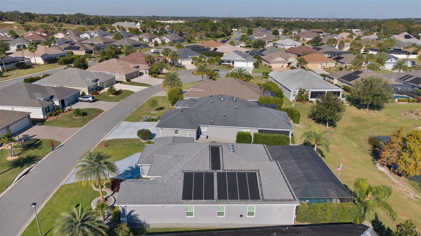 EXPANDED GARDENIA DESIGNER HOME with GOLF CAR GARAGE, LAKEFRONT VIEW AND HEATED SALTWATER POOL – VILLAGE of PINE RIDGE Welcome to this stunning EXPANDED GARDENIA Home, built in 2016 and thoughtfully enlarged to 2,070 sq. ft. of beautifully finished living space. Perfectly located in the desirable Village of Pine Ridge, this residence blends comfort, elegant design, and serene lake views into one exceptional property. Home Sold Partially Furnished From the moment you arrive, the UPGRADED LANDSCAPING, SMARTLY PAINTED DRIVEWAY and ENTRY, and Inviting Front Sitting Area create undeniable curb appeal. The clean BLOCK AND STUCCO exterior offers timeless charm and low-maintenance durability. Step inside to find ceramic tile laid diagonally throughout the main living areas, rounded drywall corners, and exquisite CROWN MOLDING, picture-frame, and chair-rail trim. The open floor plan highlights custom architectural columns that define the dining room, vaulted ceilings throughout, and a tray ceiling in the primary suite for added dimension and style. The chef’s kitchen showcases gleaming QUARTZ COUNTERS, STEPPED CABINETS, STAINLESS STEEL appliances, and an upgraded GLASS TILE BACKSPLASH—perfect for both cooking and entertaining. Each Bedroom has Carpeted Flooring and Ample Closet Space. The Primary Bedroom also features TRAY CEILING and for Additional Comfort a Mini-Split AC Unit. Dual Sinks and A Roman Walk-In Shower. Two Walk-In Closets, So No Sharing ! Both Guest Bedrooms Both bathrooms feature QUARTZ COUNTERS, with a ROMAN SHOWER in the primary Bath and a WALK-IN SHOWER in the Guest Bath. Comfort and practicality shine through with a MINI-SPLIT A/C system in the primary bedroom, ceiling fans in all bedrooms, and ample storage cabinetry in the laundry room. The garage accommodates two cars plus two golf cars, and features insulated doors, painted floor, pull-down Attic Stairs, and built-in Extra Storage Cabinets. Step outside to your own private oasis — an Expansive Saltwater Pool with SOLAR AND PROPANE HEATING, WATERFALL feature, multiple seating areas, and dedicated tanning and grilling zones. The EXPANDED NEWLY RE-COVERED SCREENED LANAI includes a mounted TV and Remote-Controlled Awning, Custom CEILING and Painting, creating an ideal setting for year-round Florida living. From this space, take in the unique and tranquil lake view, a perfect backdrop for gathering with family and friends for years to come. Additional Features are, Water Softener 2024, Interior and Garage Painted 2025, Exterior Drive, Patio and Walkways Power Washed 2025, Roof Pressure Washed 2025, Birdcage Rescreened and Painted 2025, Pool Deck Repainted 2025, Lanai Custom Ceiling Installed 2025, Murals Painted 2019 and 2014, Remote Controlled Lanai Awning 2021. Front Lawn Re sodded 2025. Attic Flooring with Taller Ceiling for Attic Storage and Convenience. Radiant Barrier, Insulated Garage Doors with Power Screen. This immaculate home truly has it all — luxury finishes, smart upgrades, and an unbeatable location, golf, recreation, shopping, and dining in The Villages. Nearby you'll find The Okeechobee Golf Course and the Seminole and Escambia Golf Courses, The Moyer Recreation Center, The Pine Ridge Eagle Preserve, The Sharon Rose Wiechens Preserve, The Pine Ridge Neighborhood Rec. Center. Also The Colony Plaza and Sarasota Shopping Centers. Take a few minutes to look over the Pictures and Video of this HOME and Schedule a Private Showing. Thank you.