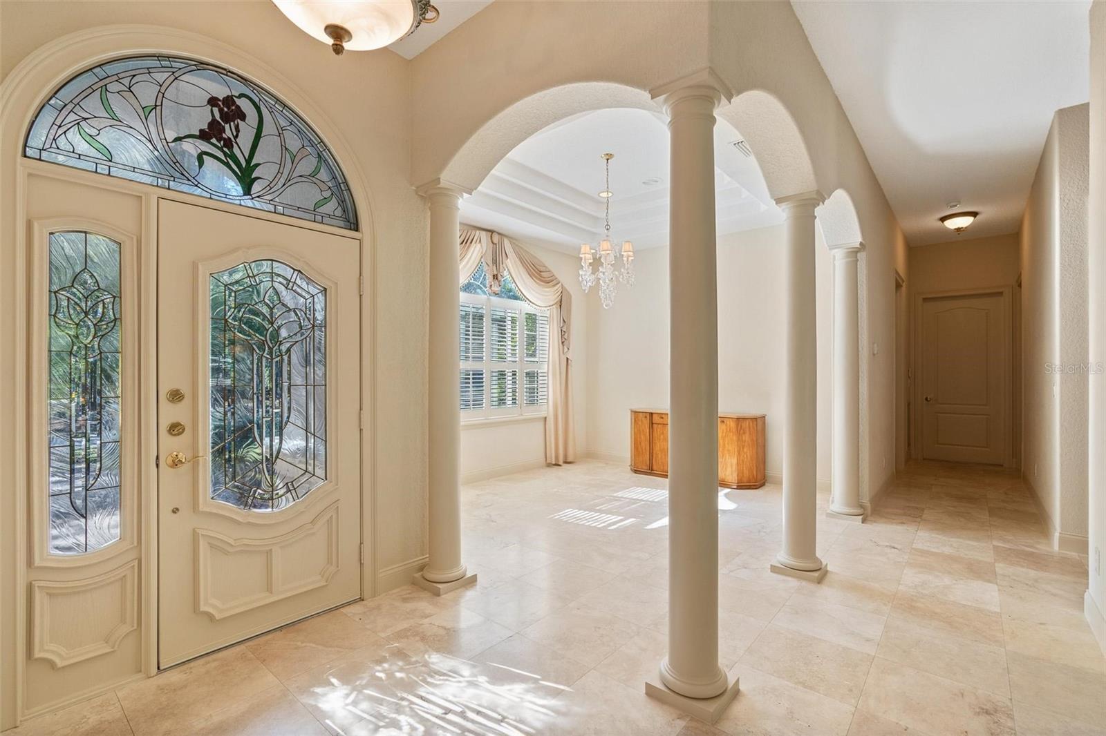 One or more photo(s) has been virtually staged. Experience an exceptional blend of luxury, craftsmanship, and estate style living in this custom built home on over an acre of beautifully manicured land. Offering nearly 3000 square feet, this residence was designed with intention and built with premium materials that set it apart from anything else on the market. Every detail reflects elevated quality from the fourteen foot ceilings to the tray accents, intricate cut outs, crown molding, and artisan finishes that define each room. ROOF 2022, AC 2023, WELL 2023 The heart of the home is the expansive kitchen designed with curated details, abundant cabinetry, and a massive walk in pantry. The primary suite is a true retreat with a resort style marble bathroom featuring a fully marble bathtub, step, and shower along with a large custom closet. Additional bedrooms are spacious with high ceilings and include thoughtfully crafted built in shelving and a dedicated desk area. The enclosed back porch offers an elegant extension of the home with generous space for an outdoor kitchen, morning coffee, or evening gatherings. Mature landscaping, two electric water fountains, and a stone gas fireplace frame the property with an estate like feel. A massive laundry room, a well maintained two car garage, a young roof, young AC, and a new well complete the home with long term peace of mind. Stained glass accents add character and artistry throughout while natural light enhances the home’s warm and inviting design. Adjacent access to Lake Dorr provides opportunities for boating, fishing, and kayaking offering a rare combination of luxury living and outdoor recreation. Conveniently located within twenty minutes of grocery stores and twenty five to thirty minutes from downtown Eustis and Mount Dora for dining and entertainment. This home stands as a one of a kind offering where quality, comfort, and craftsmanship come together. It is ready to be brought to life by its next owner.