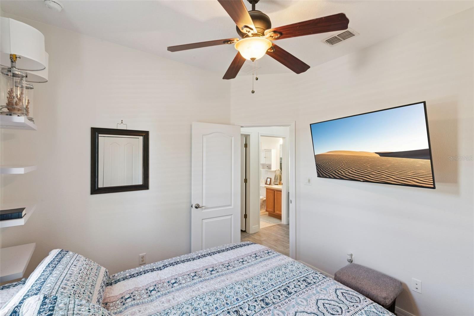 - Ceiling Fans(s), Central Vaccum, High Ceilings, Open Floorplan, Split Bedroom, Stone Counters, Thermostat, Walk-In Closet(s), Window Treatments