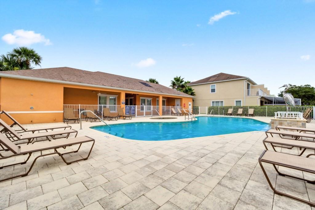 Welcome Home to this beautiful well maintained fully furnished 3 Bedroom, 3 Bath end unit town home with splash pool in the Serenity at Silver Creek community in the rolling hills of Clermont !! This townhome checks all the boxes with a new 2024 AC system, New Pool Pump & Housing. Newer Full size washer & Dryer, New Luxury Vinyl Plank in all bedrooms, new lush stair carpet, microwave and window treatments. This home offers a modern European flair throughout and truly is a must see, added bonus with a premium lot of water views and just a few steps from the community pool and clubhouse. As you enter this stunning home we have a bedroom to the right, with a full bathroom that can be made private to the room but also for guests to use. A spacious open plan kitchen/dining and living room, all elegantly decorated with a modern flair and stunning lighting. The gourmet kitchen is styled with European wood cabinets, stainless steel appliances and Quartz countertops with a waterfall edge, including a wine fridge accessible from the living room. Sliding glass doors off the living space lead to the splash pool and screened in lanai with plenty of privacy. Upstairs we have the primary suite with sliding glass doors leading to a huge balcony to relax. Ensuite double vanity and spacious shower and large walk in closet. The third bedroom is oversized with 2 full beds, a desk area and snug little window seat spot, walk in closet and full bathroom. The layout of this home is perfect to give guests privacy and space to relax. This home can be rented short term/air B & B - snowbird retreat or even full time living. Perfectly located just minutes from shopping, restaurants, Disney and all major HWYS. The HOA fee includes Exterior Maintenance, water, sewer, concierge trash pick up, dedicated parking space, club house, pool, gym and games room !! This truly is a turn key property, current bookings can also convey, call today for your own private tour !!!