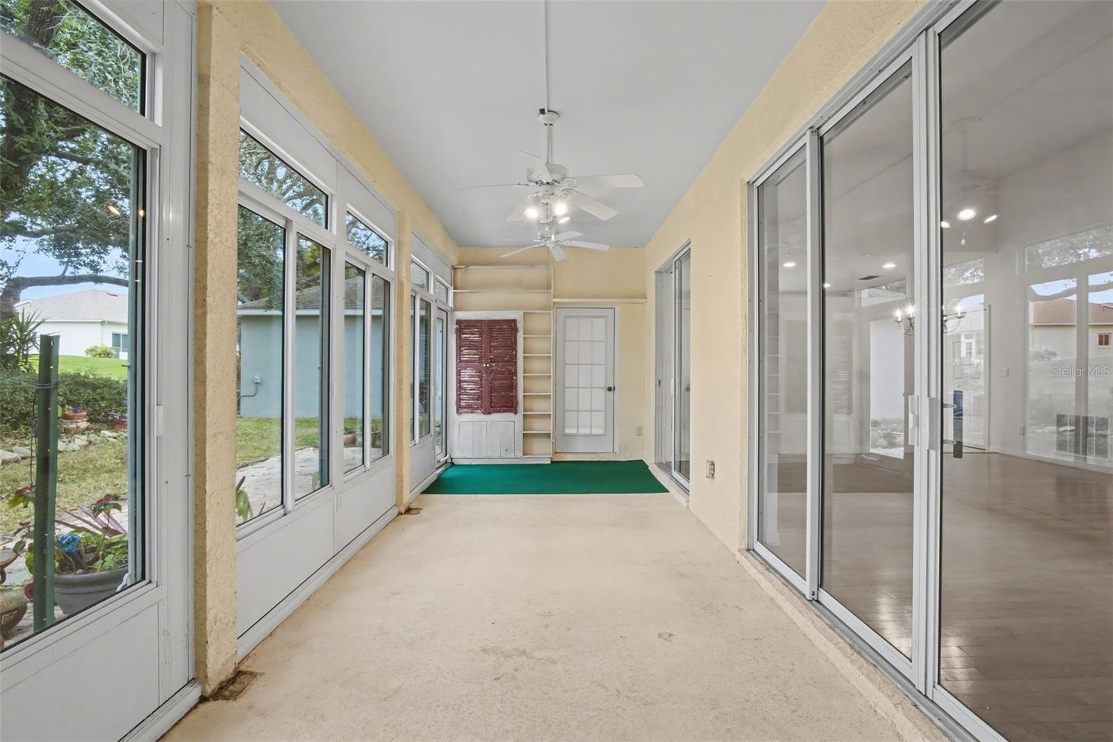 Welcome to this comfortable and affordable 2 bedroom, 2 bath property with an office/den…perfect for work, hobbies or extra guest space. This Cancun model is situated in a quiet cui-de-sac and offers a practical layout with plenty of room to relax, entertain and enjoy everyday living. The spacious eat-in kitchen features Corian countertops, ample cabinet space and access to the enclosed lanai. Double pullouts in cabinets make organizing and access a breeze. Just off the kitchen, the open living room/dining room combo boasts gleaming hardwood floors and leads to the enclosed lanai through sliding doors, creating a flexible extension of living space. The primary bedroom includes a private en-suite with a soaking tub, walk-in shower and large walking closet. A comfortable second bedroom provides a welcoming space for your guest. Enjoy time in the enclosed lanai overlooking the garden area and a paved patio for barbecuing, relaxing or soaking up the Florida sunshine. Roof 2005 HVAC 2014. Home is ready for a buyer’s personal updates and finishing touches. Come see how comfortably it can fit into your lifestyle. The Plantation at Leesburg is an active 55+ community that offers 2 golf courses, restaurant, 3 clubhouses with pools and spas, 2 workout facilities, pickleball, tennis, horseshoes, bocce ball, clubs, activities and much more.