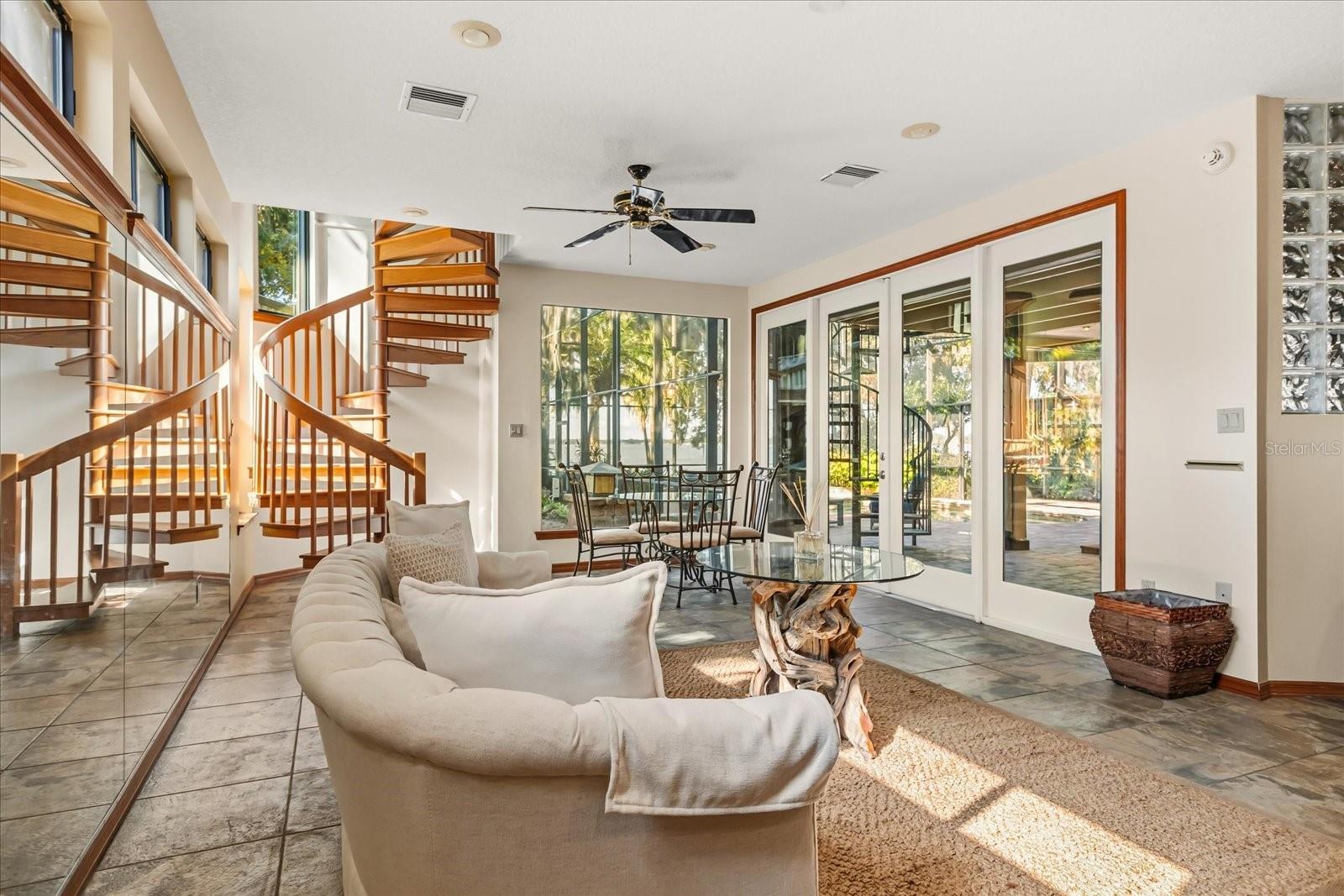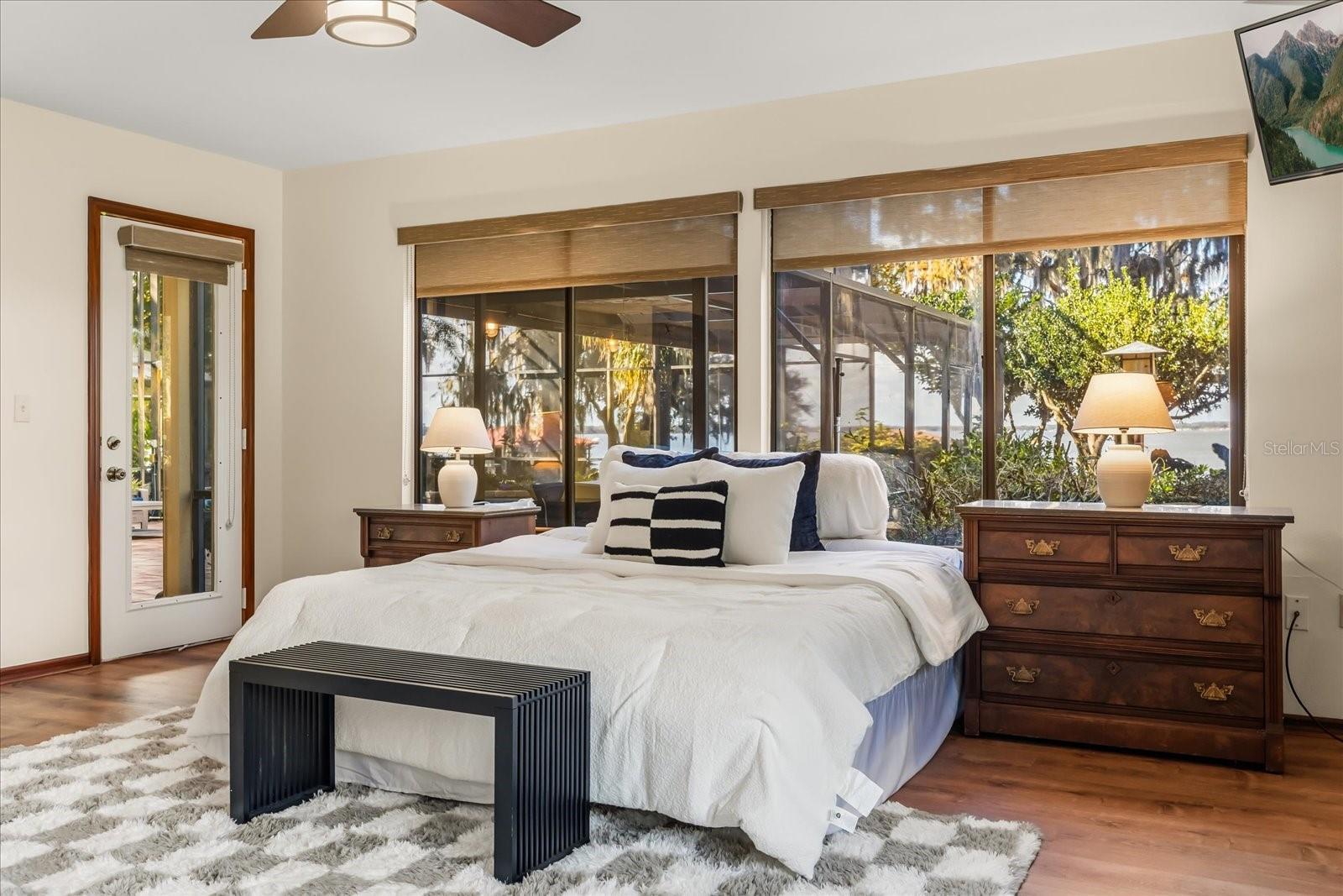 Experience breathtaking sunsets over Lake Dora, a prized gem of the Harris Chain of Lakes, from this exceptional luxury estate where over 120 feet of pristine shoreline set the stage for an elevated waterfront lifestyle. Set on approximately 0.76 acres within the impressive Squirrel Point community, the property blends elegance and tranquility in a setting designed for both beauty and relaxation. A private boathouse and dock with boat lift provide effortless access to the water, inviting spontaneous afternoons on the lake and memorable cruises with friends and family. Outdoor living is nothing short of extraordinary. A spacious screened-in lanai overlooks the lake and showcases a resort-style pool, hot tub, and fully equipped summer kitchen complete with a gas grill, smoker, sink, and refrigerator—ideal for entertaining or unwinding at the end of the day. Beyond the lanai, an expansive paver patio extends the outdoor experience with both a covered pavilion and open-air seating areas, creating versatile gathering spaces for everything from lively celebrations to quiet evenings by the water. Lush, mature landscaping envelops the property, enhancing privacy and transforming the grounds into a tranquil retreat that feels worlds away while remaining conveniently connected. Designed to maximize the views, the main living spaces are elevated on the second floor, where soaring ceilings and expansive windows in the living and dining rooms frame the shimmering waters of Lake Dora. The living room is anchored by a wood-burning fireplace, adding warmth and character to the refined setting. The open kitchen is both stylish and functional, with ample space for a breakfast table—perfect for relaxed mornings with the lake as your backdrop. The home features a thoughtful and flexible layout with two primary suites—one upstairs and one downstairs—each serving as a private retreat. The downstairs primary bathroom was remodeled in 2022, as was the bathroom in one of the additional bedroom suites. Three additional bedrooms, an office, and multiple gathering spaces provide comfort and versatility for family and guests alike. A spiral staircase connects the upstairs primary suite to an entertainment room below, complete with a wet bar and full bathroom, and offering direct access to the lanai and pool area—an ideal setting for hosting or relaxed evenings by the water. Practical luxury continues with a 22kW Generac whole-house generator, three recently replaced A/C units, and three water heaters, all replaced in 2025—delivering peace of mind alongside modern efficiency. By boat, enjoy an approximately 10-minute cruise to downtown Tavares, “America’s Seaplane City,” or to the charming historic streets of Mount Dora, celebrated for its exceptional dining, boutique shopping, and year-round festivals. Closer to home, Deer Island Golf Course—a privately owned, 18-hole championship course—is located approximately 3½ miles away and easily accessible by golf cart. Convenient access to Interstate 429 allows for effortless travel to Orlando’s business, shopping, and entertainment districts, as well as Florida’s east coast beaches. This is a home that must be experienced in person—schedule your private tour today.
