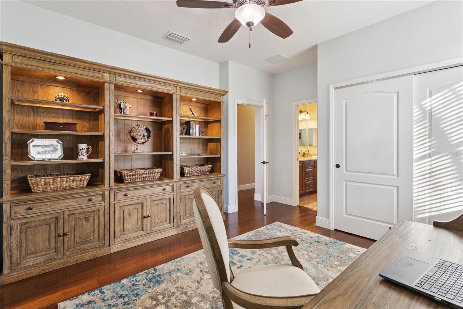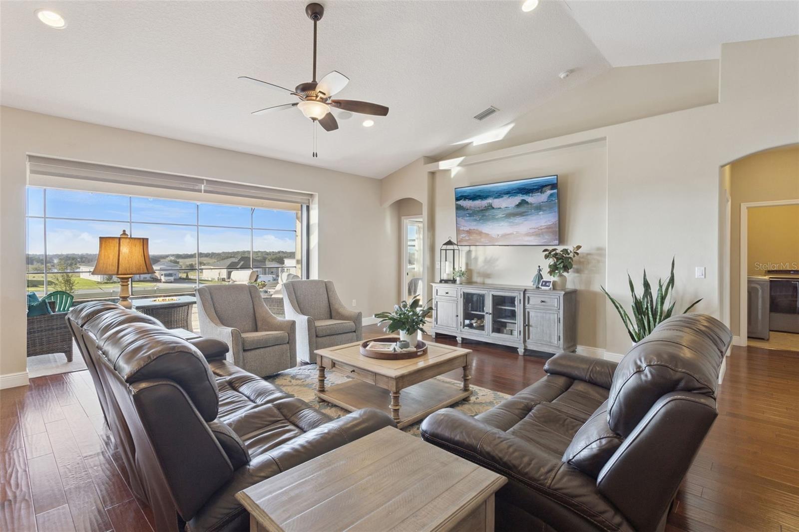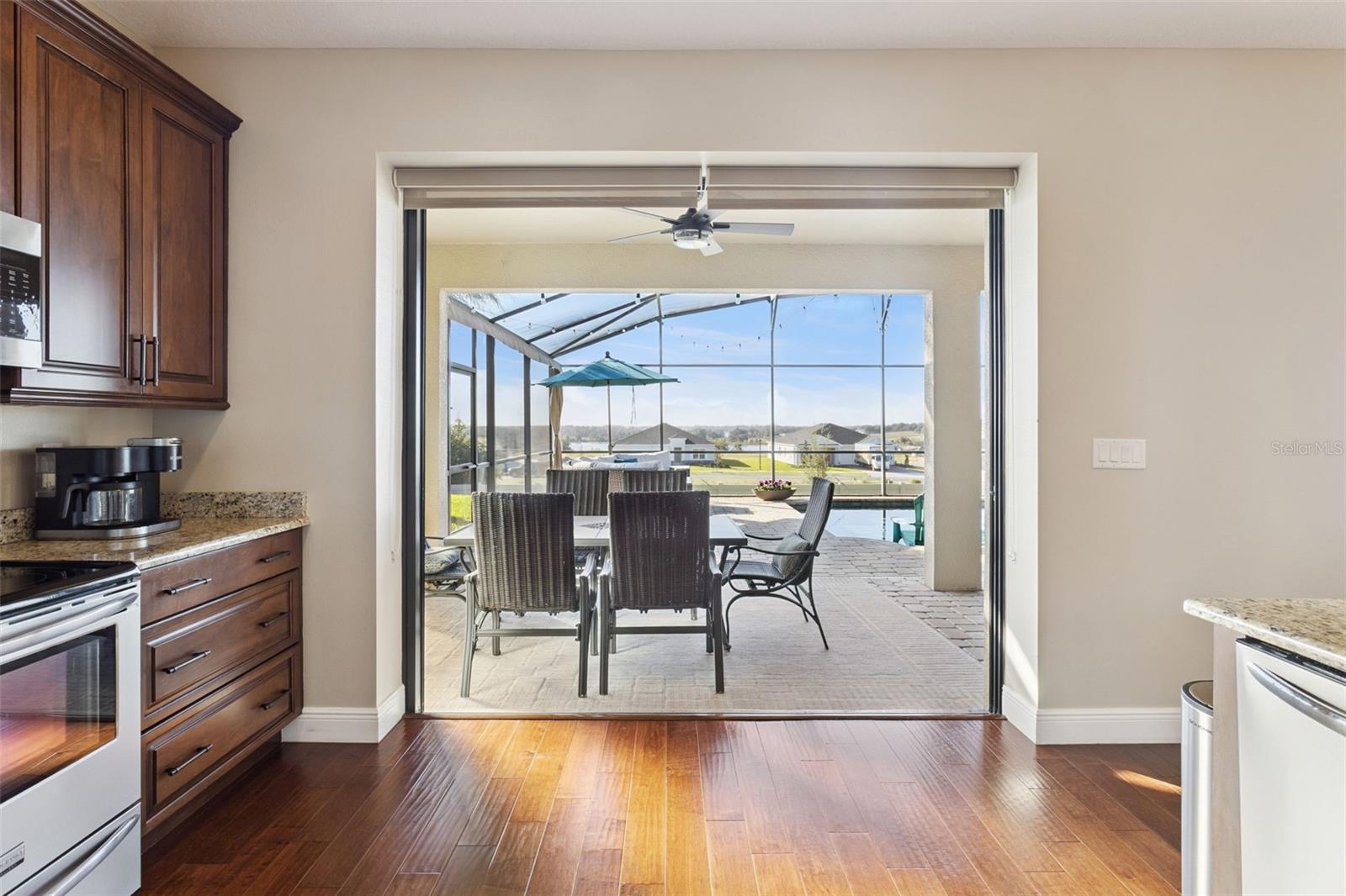 Under contract-accepting backup offers. Welcome home to this immaculate custom-built pool home offering 4 bedrooms, 3.5 baths and 2,238 square feet of thoughtfully designed living space, premium upgrades, and a resort-style backyard—all in a prime location close to shopping, dining, hospitals, and everyday conveniences. From the moment you arrive, you’ll notice the extra-large pavered driveway, upgraded landscaping, and spacious 3-car garage with added depth, perfect for storage, a workshop, or recreational gear. Inside, the open floor plan is filled with natural light thanks to two triple sliding glass doors that frame beautiful views of the pool and lanai. The interior features hardwood flooring throughout the main living areas and bedrooms, with tile in all bathrooms, and granite countertops throughout the home. The layout is ideal for both everyday living and entertaining. The primary suite is a private retreat with direct views of the pool, dual vanities, a large walk-in shower, and a walk-in closet. Bedrooms two and three share a Jack-and-Jill bathroom, while the fourth bedroom is a spacious en-suite with its own full bathroom and walk-in shower—perfect for a guest suite, in-law suite, or multigenerational living. Step outside to your own private oasis. The south-facing saltwater pool is heated, surrounded by a pavered patio and fully enclosed within a screened lanai, creating a true resort-style backyard. The vinyl-fenced yard offers privacy and low-maintenance living—ideal for relaxing, entertaining, or enjoying Florida sunshine year-round. Major updates include a roof just 2 years old and an AC system only 6 months old, providing peace of mind and energy efficiency. This home is truly move-in ready and meticulously maintained. If you’re searching for a luxury pool home, custom construction, in-law suite, and modern upgrades in a convenient location—this one checks every box. *Aerial photo property lines are an estimate and to be verified by buyer.
