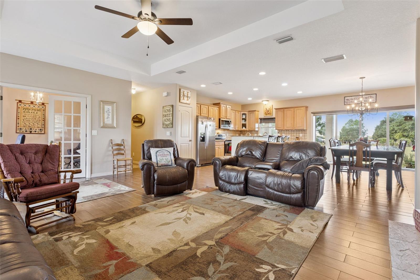 Under contract-accepting backup offers. Quiet lifestyle can be found in this beautiful custom built home on 4.62 acres. Fully fenced, gate entrance, and a pole barn. Plenty of room if you decide you want to add a swimming pool or another garage. Three bedrooms, two bathrooms and a home office. Primary bedroom & bathroom have a large walk in closet, inside laundry room, tub, shower and double vanities. All ceramic tile floors throughout the house. Great Room with WB fireplace, dining room and kitchen offer great entertainment space. Guest bathroom has a walk in shower and double sinks. House was built with energy efficiency in mind with additional insulation in the walls and attic. Open porch is on the front and back of the house. Underground utilities and county taxes. Come walk the property and you will fall in love with this home!