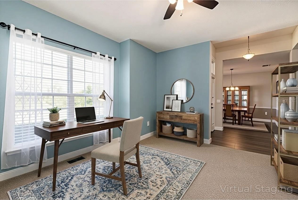 Welcome home to comfort, space, and thoughtful design. Built in 2018 and lovingly maintained by the original owners, this inviting 4-bedroom, 2-bath home sits on an oversized .25-acre lot with no neighbors directly across the street, offering a peaceful and open feel from the moment you arrive. Manicured landscaping sets the tone as you approach, and the attached 22x21 two-car garage provides both convenience and storage. Step inside to soaring ceilings and a welcoming foyer that immediately showcases the formal dining room and a versatile den—perfect as a quiet reading retreat or a dedicated home office. From here, you’re drawn into the open living room, where luxury vinyl flooring adds warmth and durability, creating an ideal space for everyday living and gathering with friends. The kitchen is both functional and inviting, offering abundant cabinetry, generous counter space, and a pantry for extra storage. A cozy dinette sits just off the kitchen, making casual meals and morning coffee feel effortless. The split floor plan provides privacy, with three additional bedrooms and a guest bathroom located on the opposite side of the kitchen. Each guest bedroom features carpeted flooring, ceiling fans, and built-in closets—comfortable and ready for family or guests. Tucked away for relaxation, the primary suite is a true retreat. It features two walk-in closets and an en suite bathroom complete with separate vanities, a stand-up shower, and a soaking tub—perfect for unwinding at the end of the day. Out back, the fenced yard offers endless possibilities. Enjoy the above-ground pool, plenty of room for pets to run and play, and space to create a garden or outdoor entertaining area. This backyard is designed for both fun and flexibility. Warm, welcoming, and thoughtfully laid out, this home offers space to live, work, and relax—inside and out. A wonderful opportunity to own a well-cared-for home with room to grow. All information recorded in the MLS is intended to be accurate however, it should be independently verified by buyer and their agent. Check out the Virtual Tour!