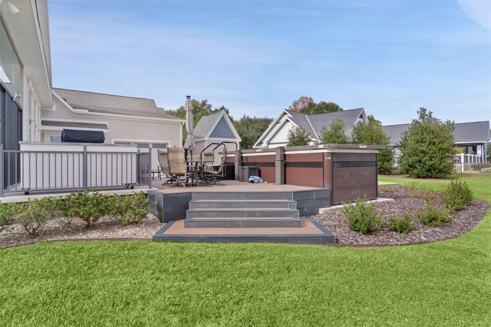 ~SMALL, PRIVATE GATED COMMUNITY~ ~PANORAMIC LAKE VIEW~ ~SELF CLEANING SWIM SPA~ ~5+ CAR GARAGE~ ~BUILT IN 2019~ ~PARTIALLY FURNISHED~ ~GLASS ENCLOSED LANAI~ ~MATCHING SHED~ ~TANKLESS WATER HEATER~ Welcome to a truly exceptional custom home in The Villages—where luxury design and thoughtful functionality come together in one unforgettable residence. Overlooking a tranquil lake and offering GOLF CART ACCESS to The Villages; this mostly furnished home is a rare find. The expansive residence features 3 bedrooms, 3 full baths, and 2 additional half baths, creatively designed with comfort and entertaining in mind. From the moment you enter, you’re greeted in the welcoming foyer with a COAT CLOSET and beautiful WHITE OAK ENGINEERED HARDWOOD FLOORING that flows throughout the home. The living room is highlighted by UPGRADED LIGHTING and opens seamlessly to an elegant dining area with SOARING CEILINGS and DESIGNER LIGHT FIXTURES—perfect for hosting memorable gatherings. The culinarian's kitchen is stunning and functional, with QUARTZ COUNTERTOPS, TILE BACKSPLASH, LG APPLIANCES, LARGE CENTER ISLAND, and 69sf BUTLER’S PANTRY with generous storage. A SEPARATE BAR AREA adds an extra layer of sophistication for entertaining. The primary suite is a private retreat with HIGH CEILINGS, ceiling fan, and high-set windows that flood the space with natural light. Also en-suite is the OVERSIZED/CUSTOMIZED 365sf WALK-IN CLOSET providing plentiful storage. Attached is a SEPARATE 106sf WALK-IN CLOSET that doubles as your HURRICANE SAFE SPACE. The spa-like primary bath boasts PORCELAIN TILE FLOORING, beautifully TILED ROMAN SHOWER, double sinks with QUARTZ countertops, private water closet. The 2nd bedroom includes a CUSTOMIZED BUILT-IN CLOSET and is complemented by a stylish bath with PORCELAIN TILE, tiled tub/shower combination, and QUARTZ countertops. The 3rd bedroom features a custom built-in closet and ceiling fan, with an adjoining bath showcased by PORCELAIN TILE, QUARTTZ countertops, TILED ROMAN SHOWER. A well-appointed powder room with porcelain tile and QUARTZ countertops adds convenience for guests. Additional interior highlights include a LARGE INSIDE LAUNDRY ROOM with extensive cabinetry and SAMSUNG appliances, as well as high-quality fixtures and finishes throughout the home. Step into the expansive, GLASS-ENCLOSED LANAI—finished with ceramic tile, under heat and air, DOUBLE-PANE HURRICANE-RATED WINDOWS, 2 ceiling fans, and a cozy FIREPLACE—creating a year-round indoor/outdoor living space. Just beyond, enjoy the large, SELF-CLEANING SWIM SPA with POWER LID that raises up and down. Swim spa splits into hot tub and workout sections, perfectly positioned to take in serene lake views. Car enthusiasts and hobbyists will appreciate the OVERSIZED AIR-CONDITIONED 5+-CAR GARAGE, complete with an AUTO LIFT, workbench, powder room with a large sink, SAUNA, UPSTAIRS STORAGE, and exceptional insulation. The home also features a sprinkler system. There is an additional MATCHING SHED for storing yard equipment, she-shed, man cave or playhouse, also air-conditioned. This custom home offers unmatched craftsmanship, abundant storage, luxury amenities, all within access to the vibrant and amenity-rich lifestyle of The Villages. This is truly Florida living at its finest. Located off Hwy 466, it is close to the Polo Fields and is a short drive to shopping, dining, and medical in Southern Trace and Laurel Manor.