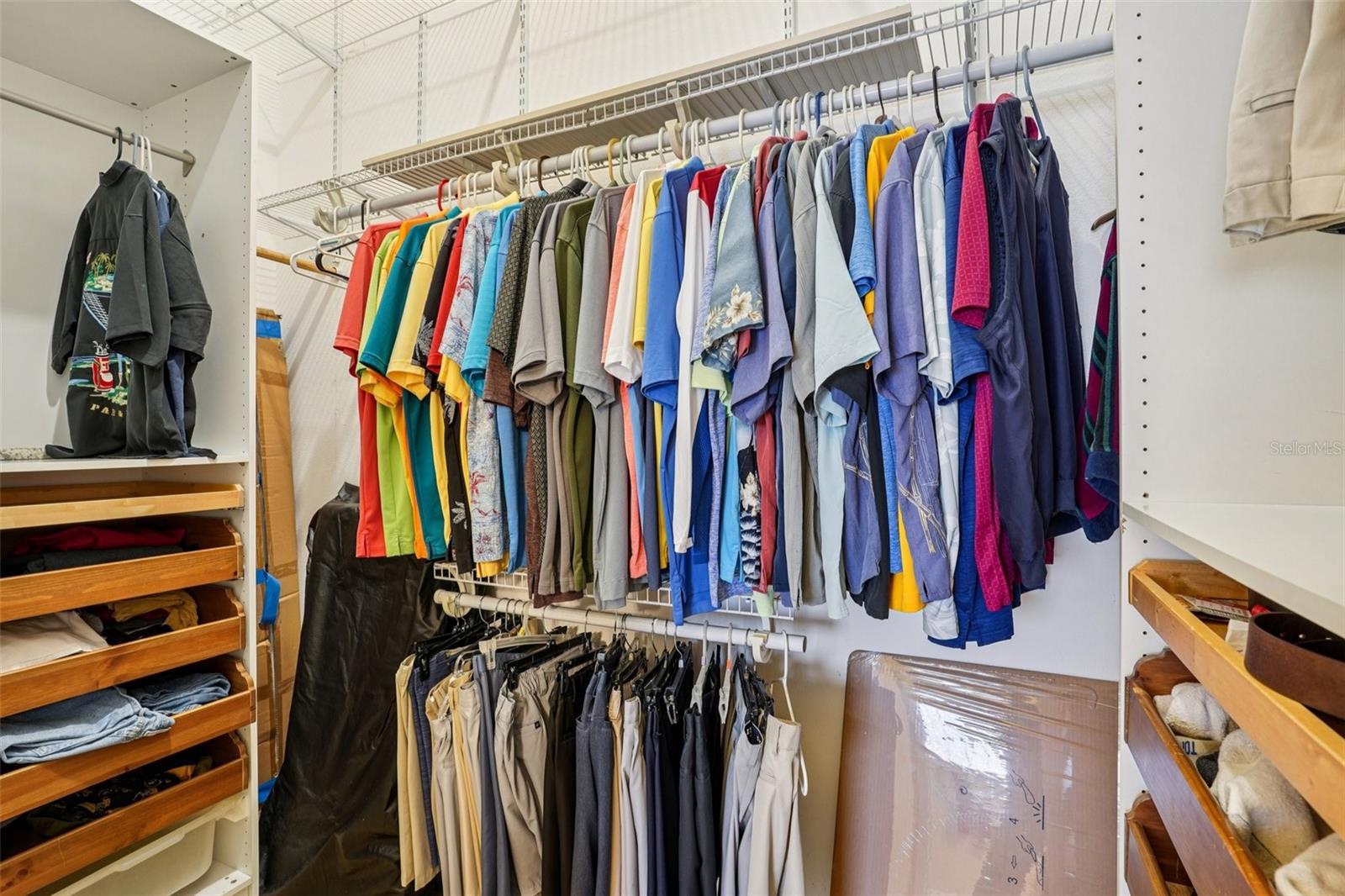 - Ceiling Fans(s), Crown Molding, Eat-in Kitchen, High Ceilings, L Dining, Primary Bedroom Main Floor, Solid Wood Cabinets, Thermostat, Walk-In Closet(s), Wet Bar