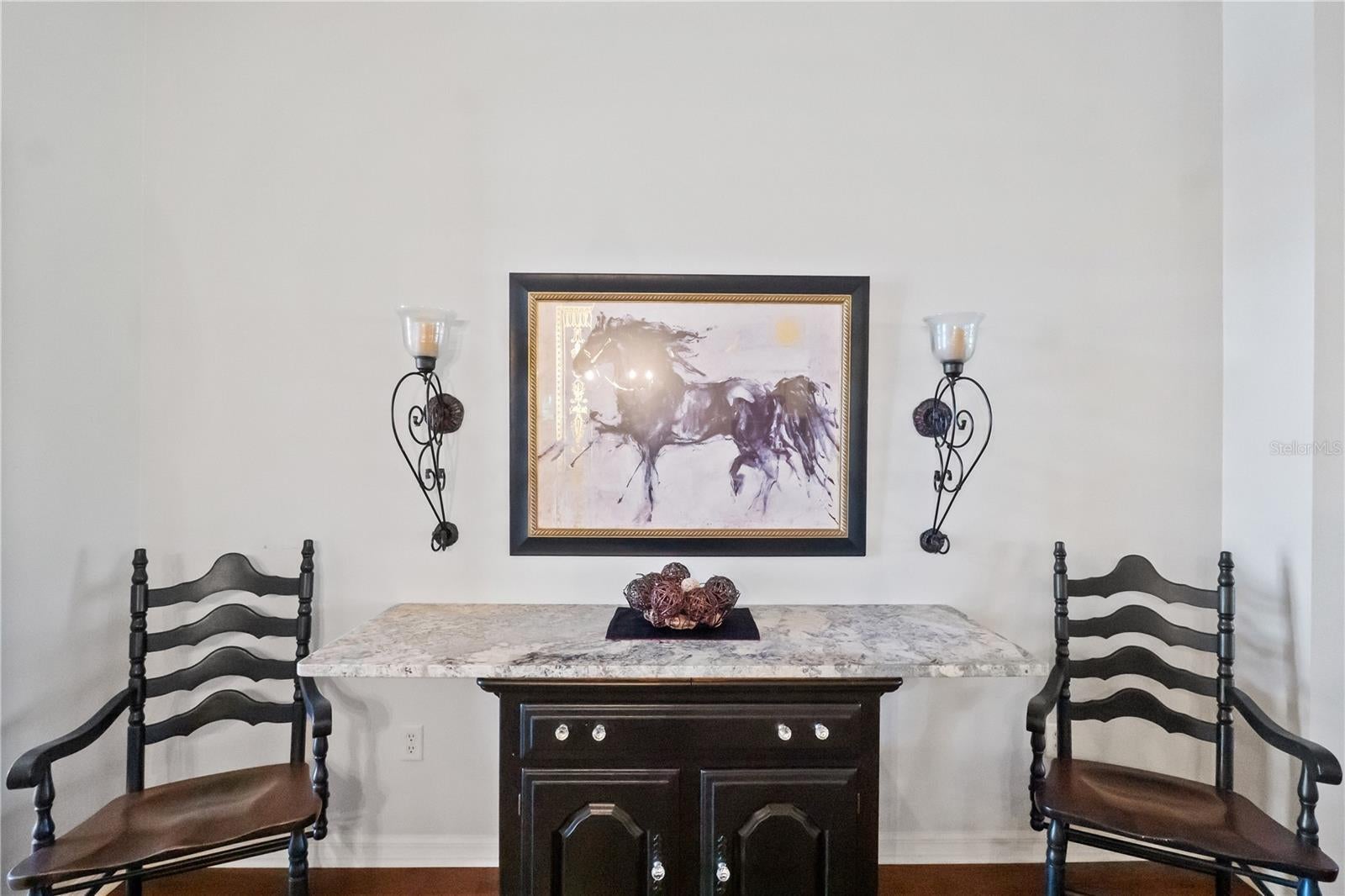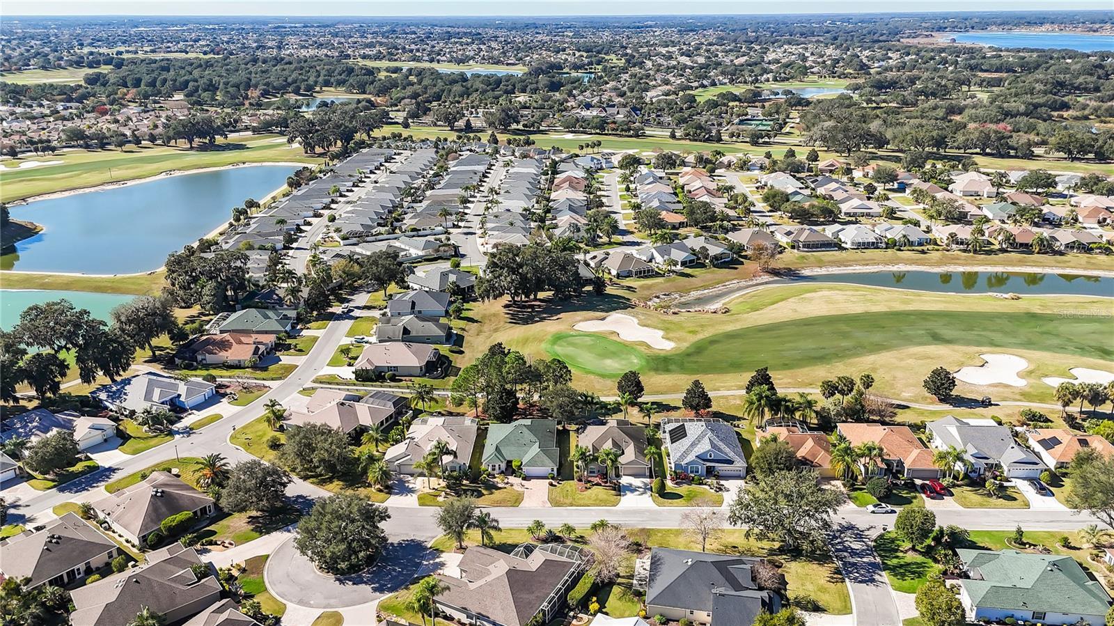 LOCATION, LOCATION, LOCATION! This stunning block and stucco Designer Home is located in the highly desirable Village of Virginia Trace and is just a short WALK to Lake Sumter Landing Market Square — enjoy nightly entertainment, dining, shopping, and the scenic waterfront without ever needing a car or golf cart! Perfectly situated on the MALLORY CHAMPIONSHIP GOLF COURSE (Virginia Course) hole #6, this residence showcases an expansive panoramic fairway view, offering beautiful vistas from sunrise to sunset. Step inside to find engineered hardwood flooring flowing through the main living room, dining room, and kitchen. The kitchen is a showstopper with White Bay cabinetry, granite countertops, and stainless steel appliances, including a French-door refrigerator and a gas double-oven range — ideal for cooking enthusiasts. Elegant touches continue throughout with high baseboards and a chair rail in the dining room. The oversized garage (23.5 deep) provides additional storage and flexibility for vehicles, golf carts, or hobby space. For peace of mind, the SELLER WILL BE INSTALLING A BRAND-NEW ROOF AND HOT WATER HEATER prior to closing. This home also comes with $17,000 in transferable seasonal rent for February through April. Buyers may choose to accept the rental income OR schedule a delayed closing in May. Furniture and the golf cart are available separately through the owners, making this an easy option for those seeking a turnkey lifestyle close to the heart of The Villages. With an unbeatable golf-front view, premium interior finishes, and one of the BEST walkable locations in all of The Villages — just steps from Lake Sumter Landing — this home is a rare opportunity you won’t want to miss!