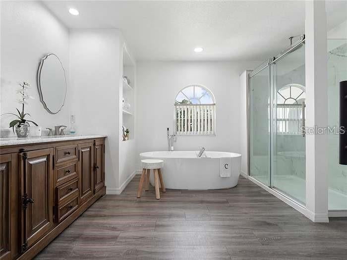 You won’t want to miss this beautiful home offering over 2,700 square feet of living space in the desirable Tamarind Parke at Cypress Woods community. This spacious residence features an open floor plan with high ceilings, 4 bedrooms, 2.5 bathrooms, and a 2-car garage, all complemented by exceptional curb appeal and character. Upon entry, you are welcomed by an expansive living and dining area with tile flooring throughout the main level. The kitchen is well-appointed with granite countertops, an eat-in nook, breakfast bar, and ample cabinet space, opening seamlessly to the family room—ideal for everyday living and entertaining. After a long day, unwind on the screened-in pool deck featuring a poolside bar with TV, perfect for hosting guests or enjoying game nights. The fully vinyl-fenced backyard provides privacy, while exterior LED spotlights create a striking nighttime ambiance. Upstairs, the staircase leads to a versatile loft and generously sized bedrooms. The oversized primary suite boasts a beautifully remodeled en-suite bathroom with vinyl flooring, a barn door for added privacy, and a large mounted monitor/TV ready for a camera system. Additional highlights include NO lease restrictions, making this property ideal for homeowners or investors alike. Conveniently located near shopping, dining, entertainment, and approximately 45 minutes from Disney. This home truly offers space, style, and flexibility—$100 pool Maintenance fee required in addition to rent. schedule your showing today. Rental application link https://apply.link/TQjMxxw