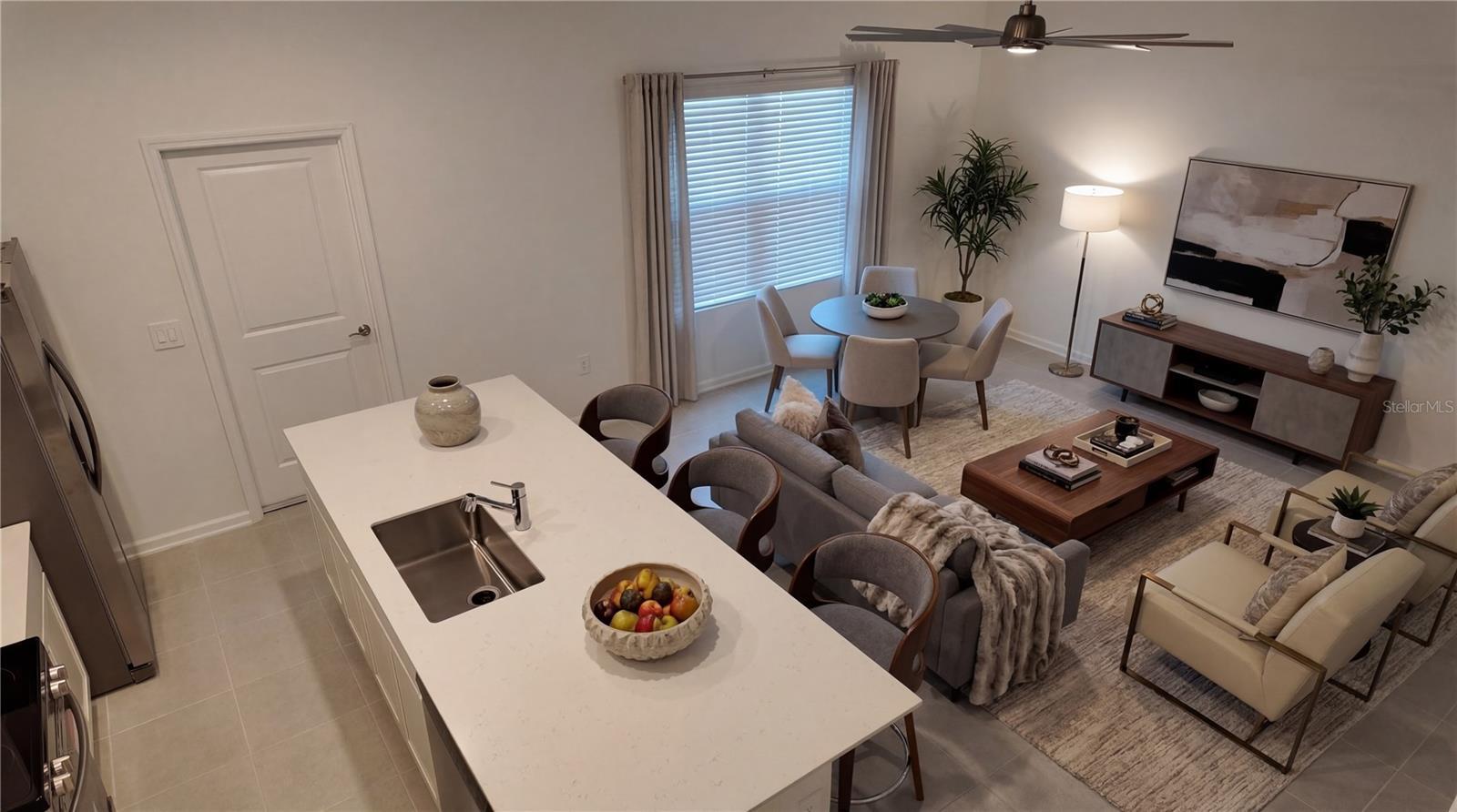 - Cathedral Ceiling(s), Ceiling Fans(s), Eat-in Kitchen, High Ceilings, Kitchen/Family Room Combo, Primary Bedroom Main Floor