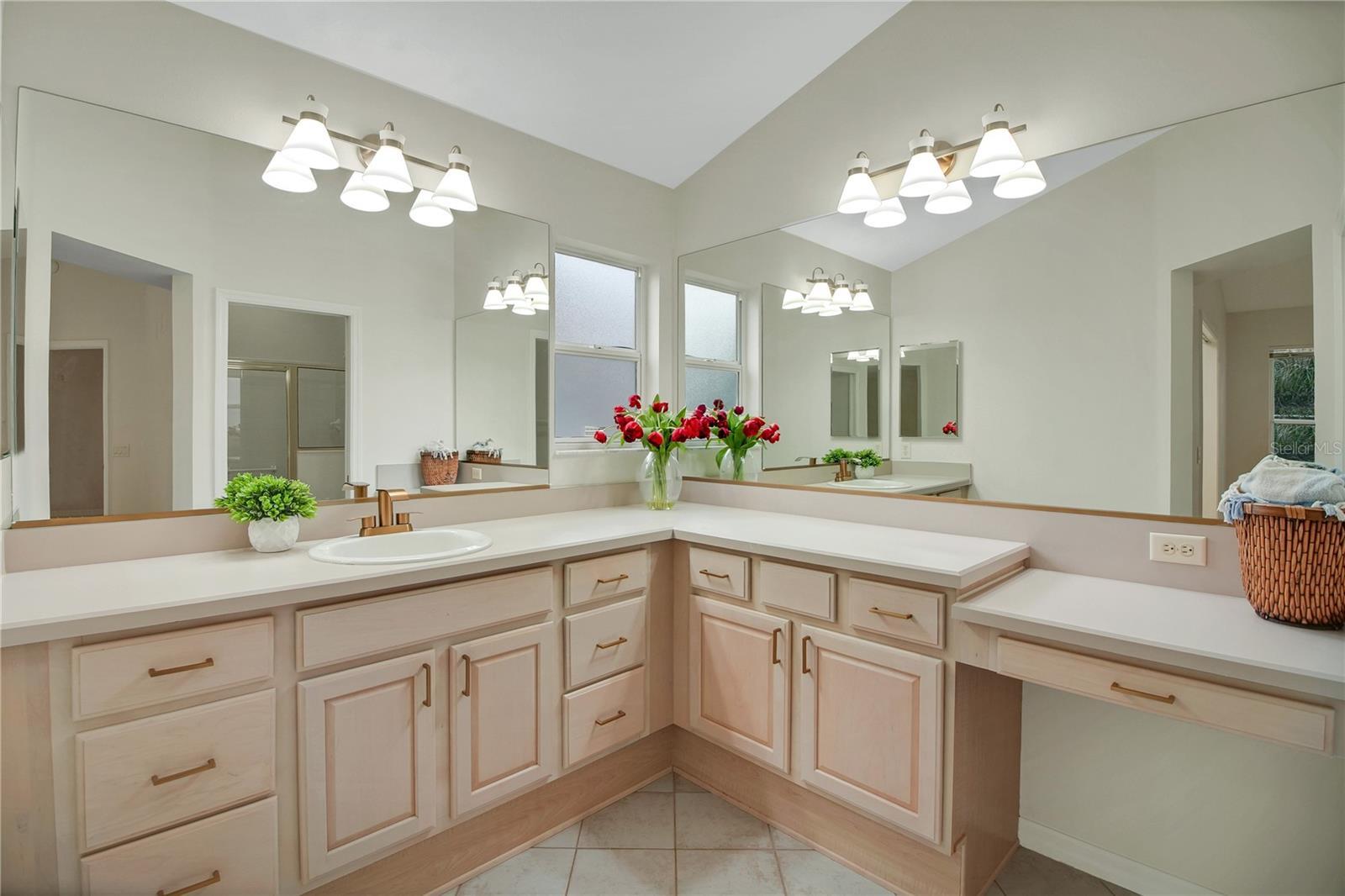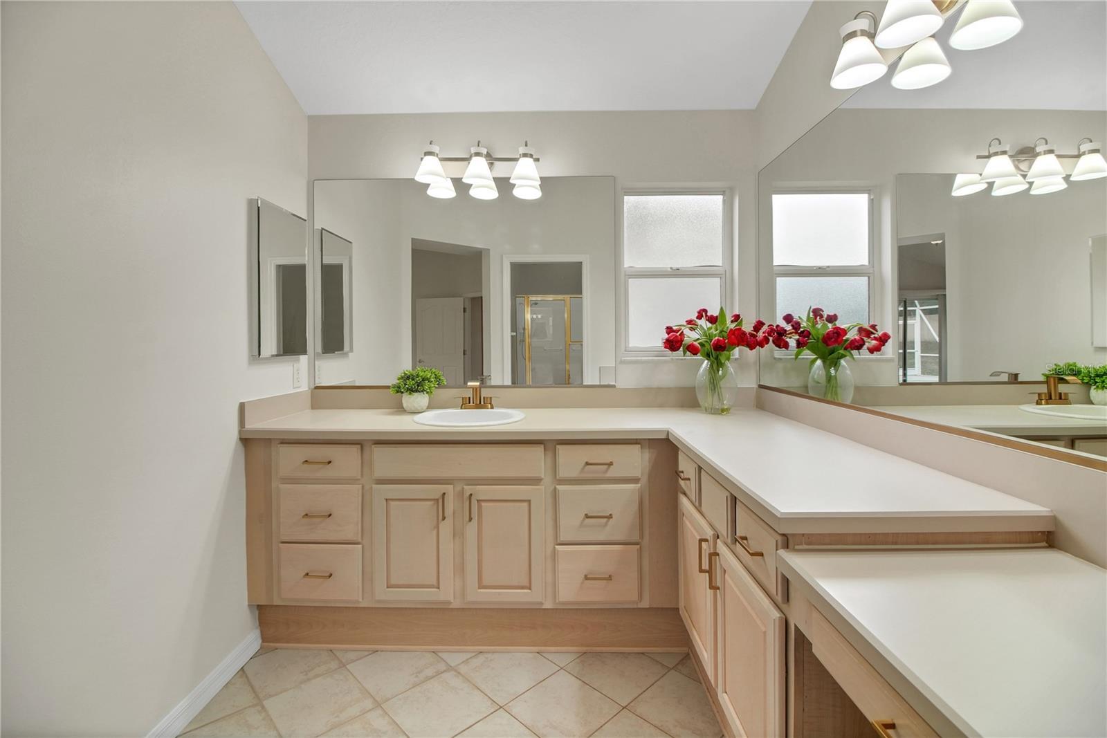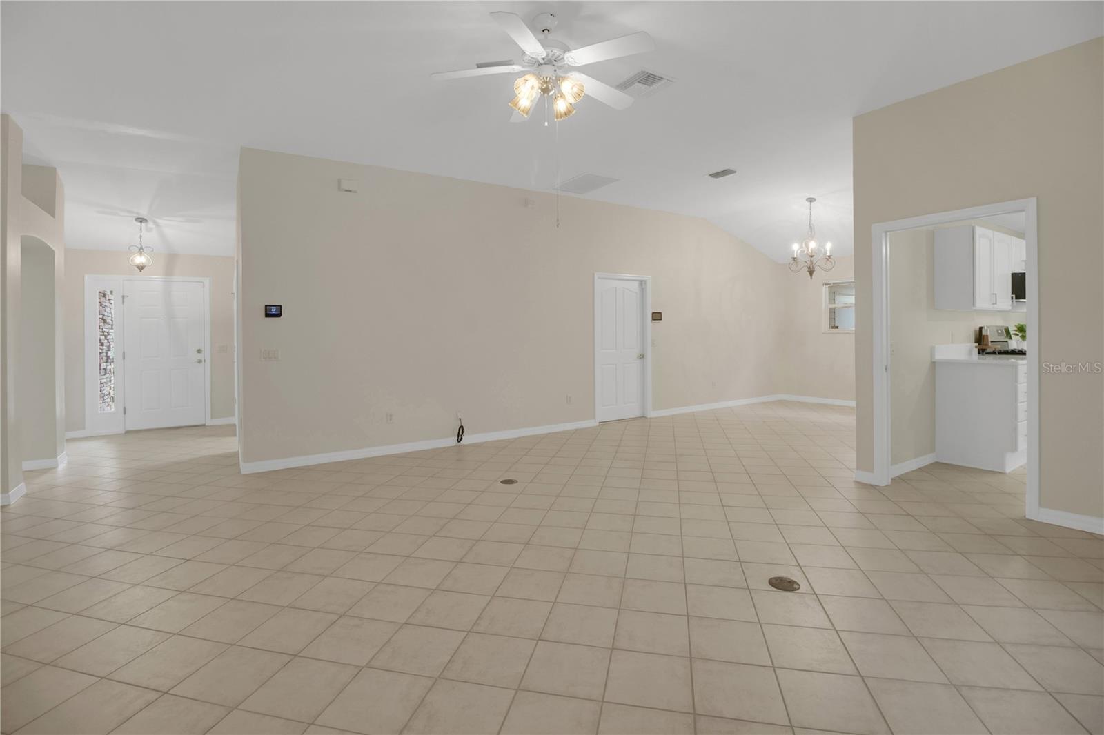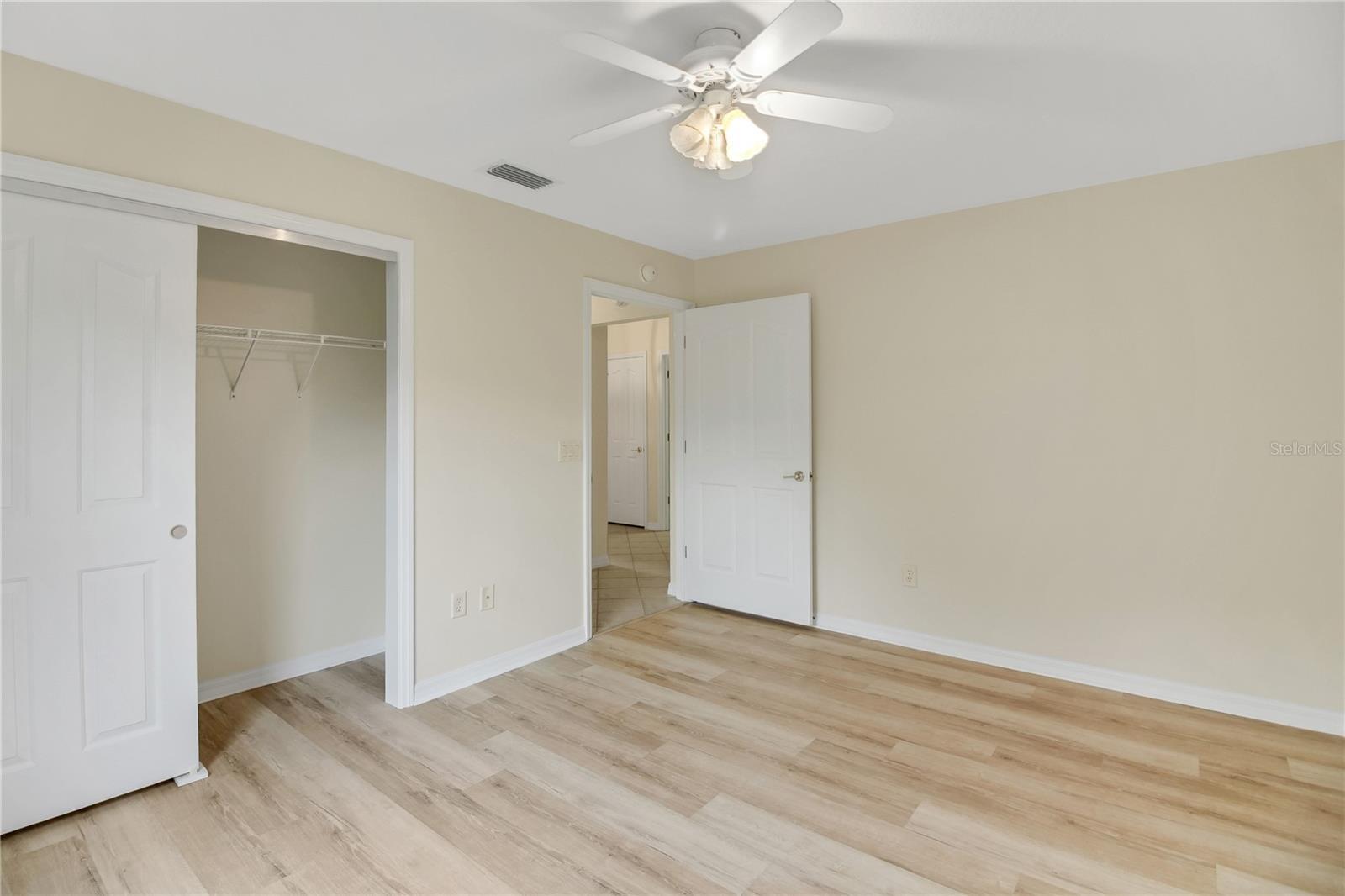 Welcome to this BOND PAID, beautifully updated and freshly painted 3-bedroom, 2-bathroom POOL home featuring a 2-car plus golf cart garage, located in The Villages. Step inside to discover tile and new luxury vinyl plank flooring throughout—no carpet anywhere. The kitchen shines with crisp white cabinetry, new quartz countertops, newer stainless steel gas range, and a new stainless steel microwave and newer stainless steel gas stove and refrigerator, making it both stylish and functional. The spacious primary suite offers a large walk-in closet and an ensuite bathroom with new light fixtures, hardware, and faucet. The oversized laundry room provides ample space for storage and organization. Outdoors, enjoy Florida living at its best in the screened lanai and pool area, perfect for relaxing or entertaining. No rear neighbors adds extra privacy. Additional highlights include a brand new water heater, newly painted driveway, new landscaping, roof replaced in 09/2020, and AC replaced in 2020. Ideally located close to Spanish Springs Square, this home offers convenience, comfort, and an exceptional lifestyle.