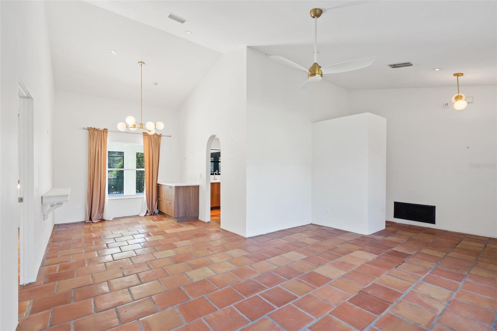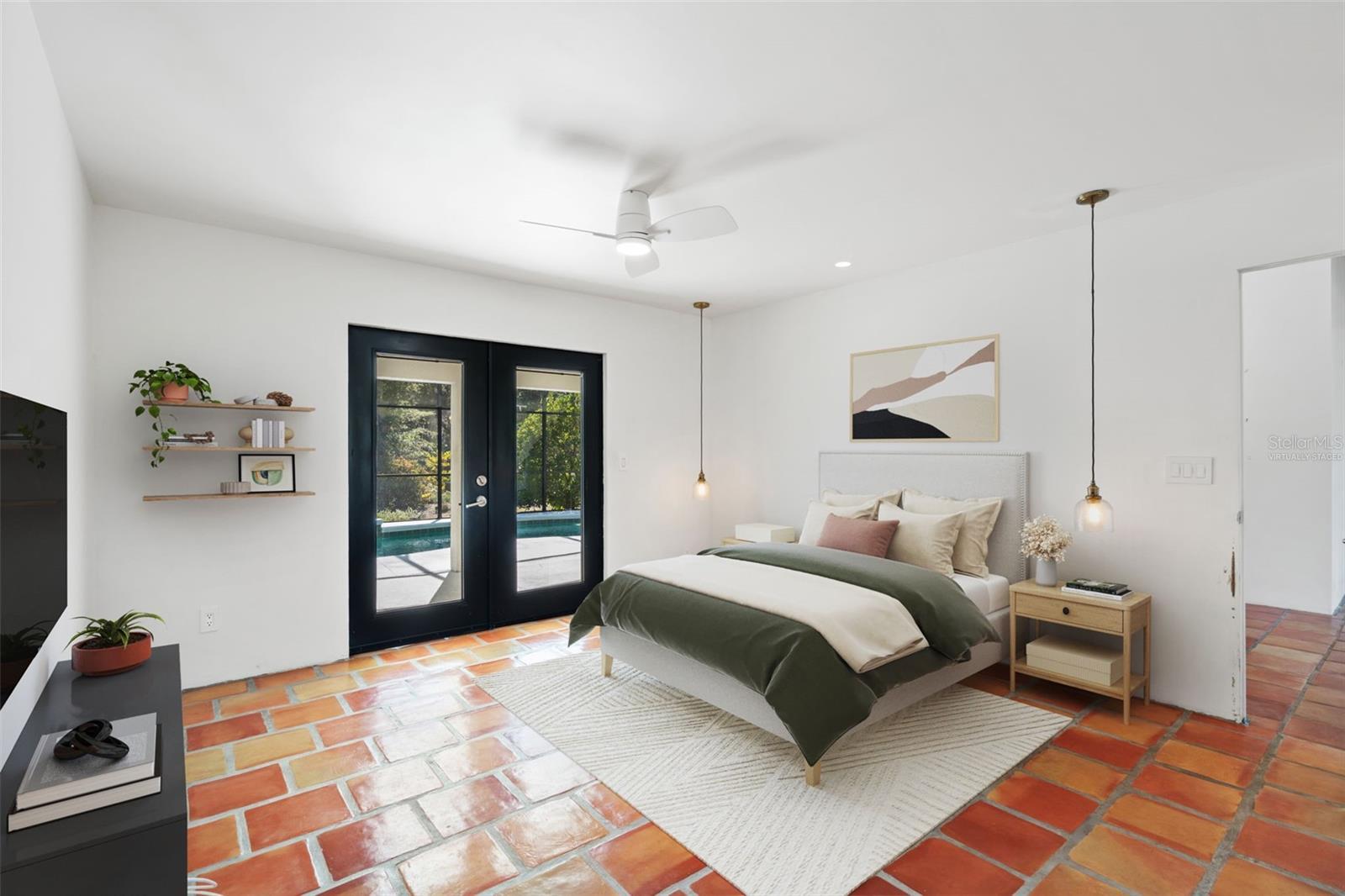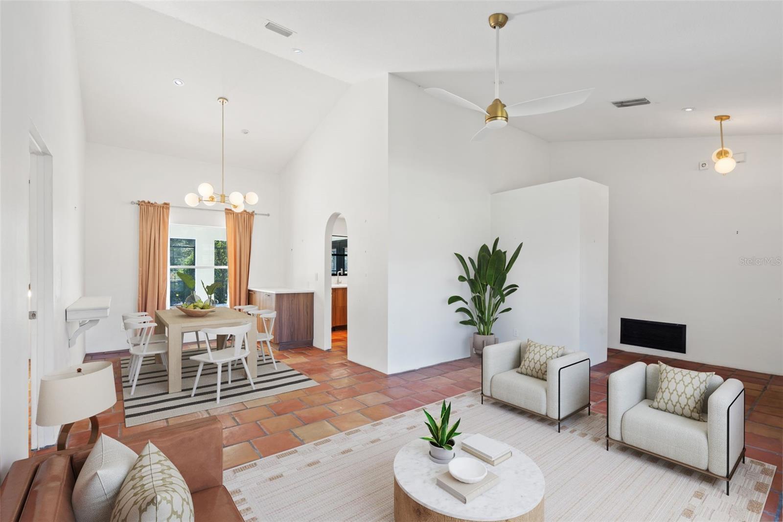 Under contract-accepting backup offers. One or more photo(s) has been virtually staged. This bright and minimal 3-bedroom/ 2-bathroom POOL/SPA home offers over 1,600 square feet of living space with custom Saltillo tile throughout and vaulted ceilings in the main living areas. A formal living and dining area provides extra flexibility for entertaining or everyday use, while the modern kitchen and open layout create an airy, welcoming feel. The primary suite features a studio-style design with an open-concept bathroom with direct access to the outdoor living area. Two additional bedrooms are thoughtfully split from the primary suite and share a full bathroom for added privacy. Outside, enjoy a fully fenced backyard with mature trees, a large covered patio, and an expanded hardscaped area for outdoor entertaining or lounging. Additional highlights include an oversized driveway and HOA amenities such as boat/RV parking, lake access to Lake Louisa and the Clermont Chain of Lakes, and community basketball/tennis courts with recreational field. HVAC 2015, Roof 2019, Water Heater 2021.