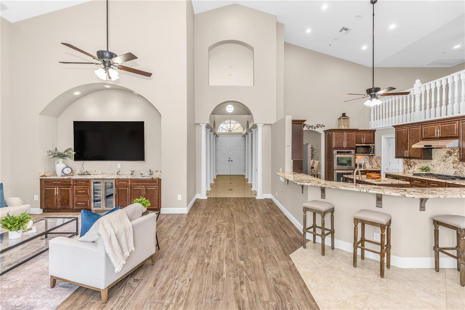 - Ceiling Fans(s), Chair Rail, High Ceilings, Open Floorplan, Stone Counters, Vaulted Ceiling(s), Walk-In Closet(s), Wet Bar, Window Treatments