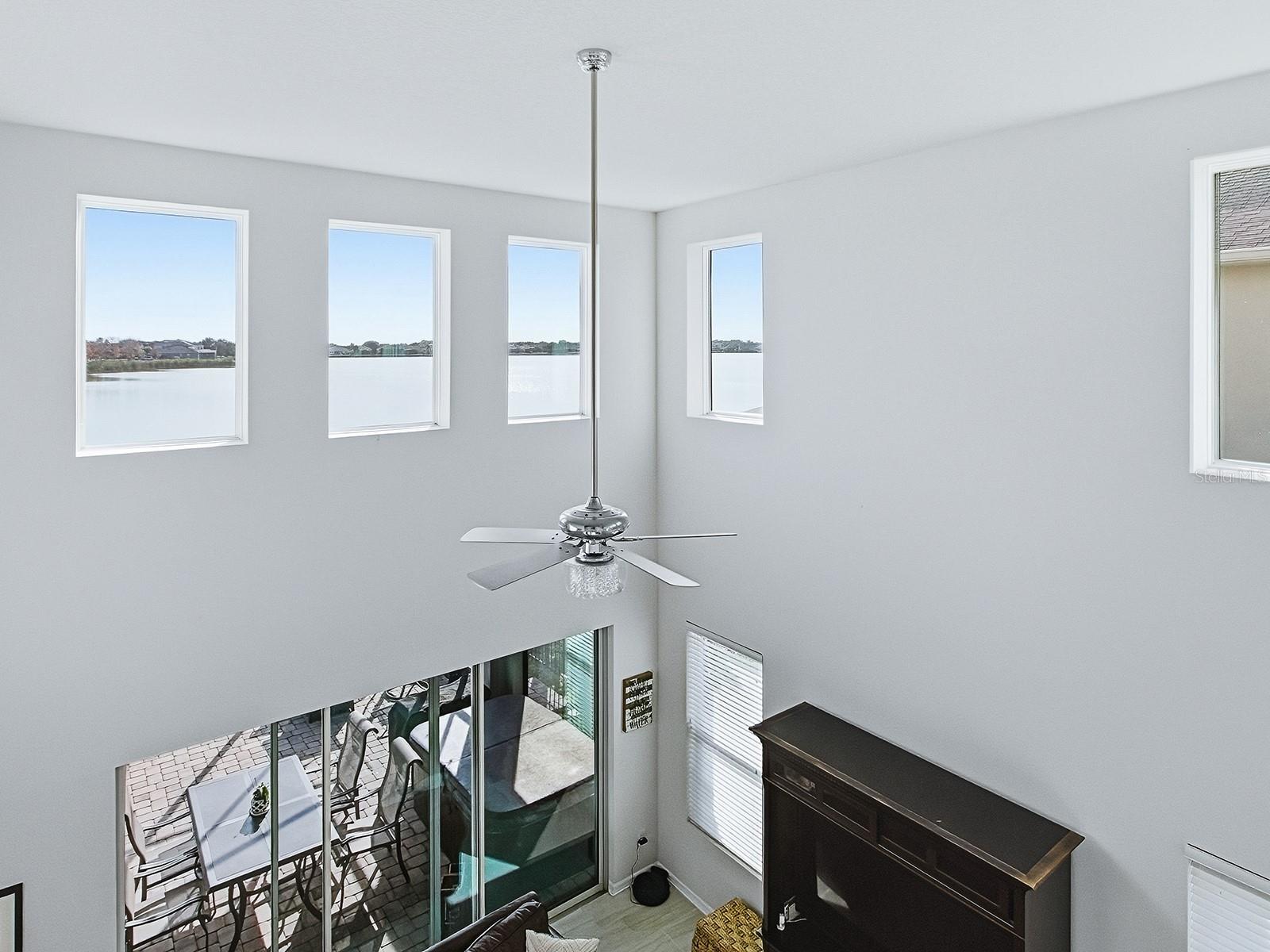 - Cathedral Ceiling(s), Ceiling Fans(s), Eat-in Kitchen, High Ceilings, Kitchen/Family Room Combo, PrimaryBedroom Upstairs, Solid Surface Counters, Walk-In Closet(s), Window Treatments