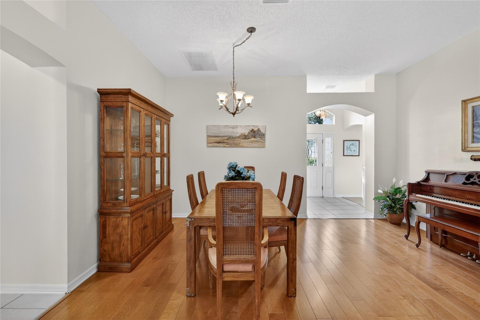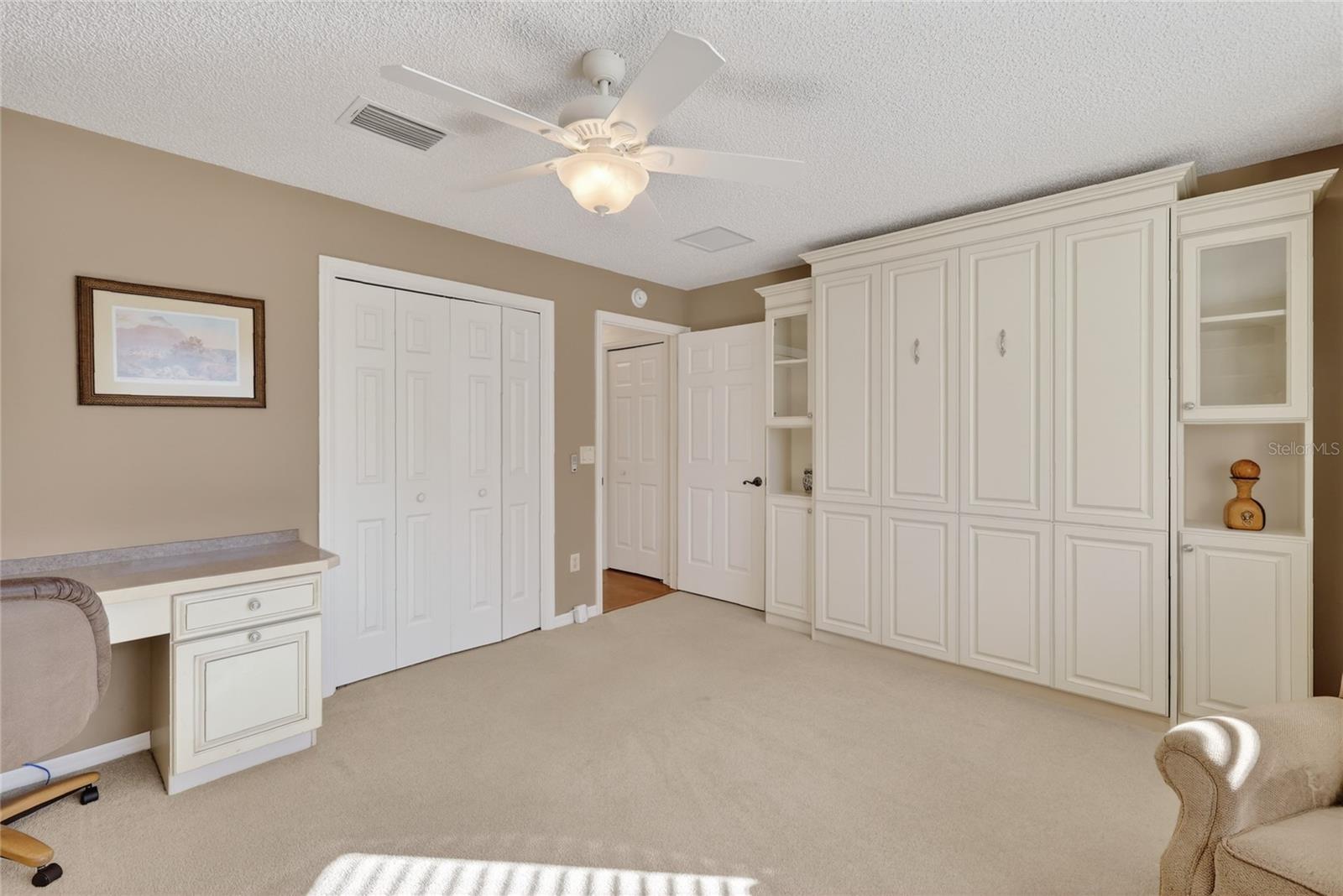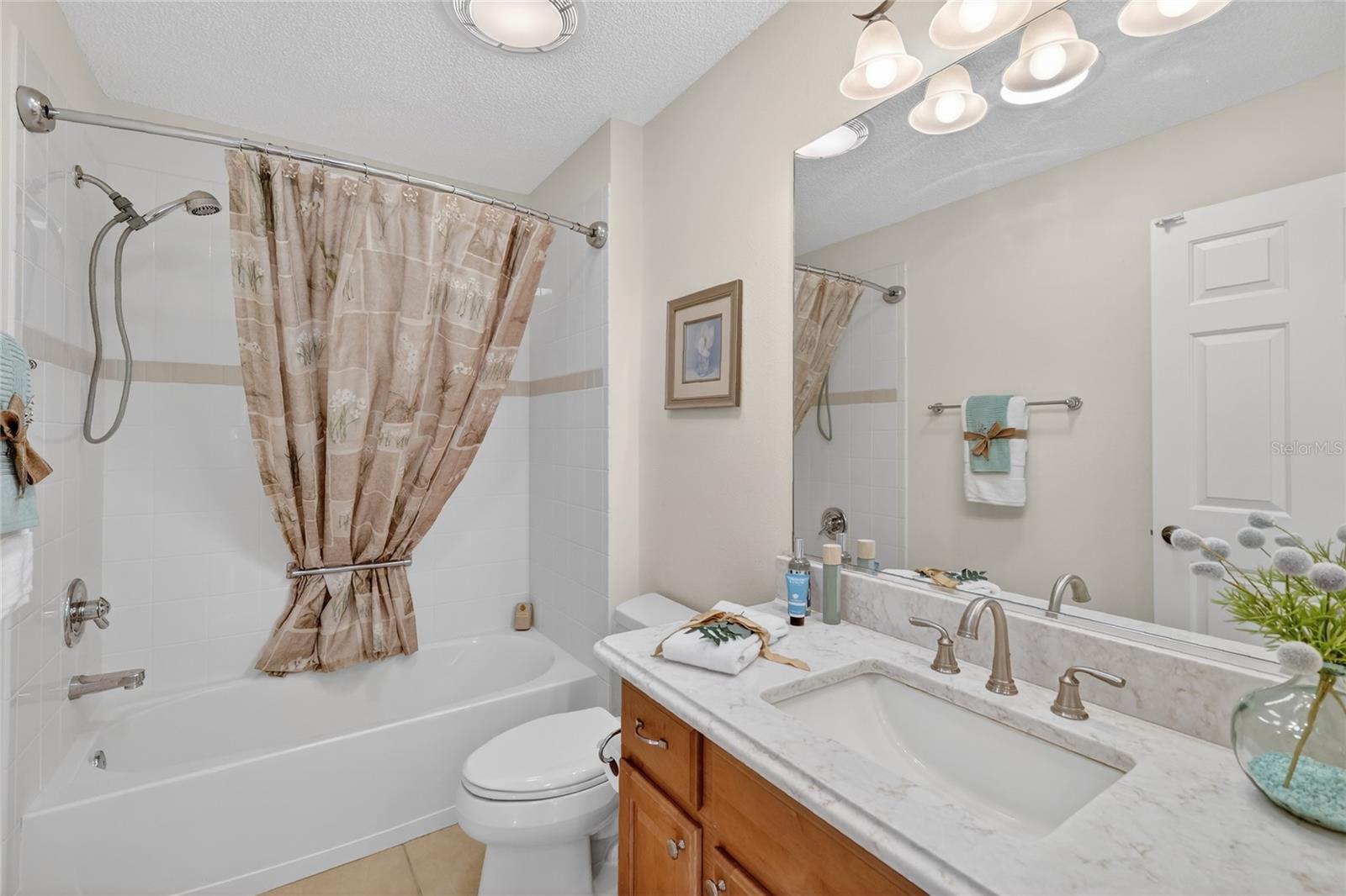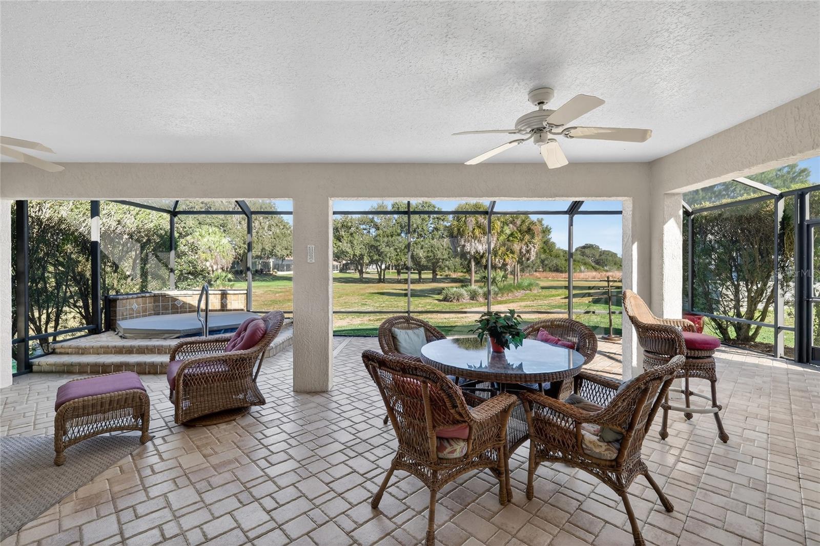 BREATHTAKING GOLF and PRESERVE VIEWS -- NO BOND -- ROOM FOR A POOL. Offering stunning panoramic views of the Pelican Golf Course and preserve, this 3-bedroom, 2-bath Lantana is located in the highly desirable Village of Sunset Pointe, just minutes from SUMTER LANDING. Situated on an extra-large, private lot, this home features NO BOND, a two-car plus GOLF CART GARAGE, and the room for and option to add a pool plus a turnkey package can be included at no extra cost. ROOF 2020. From the moment you arrive, the custom paver driveway, lush landscaping, and inviting front walkway set the tone. Step inside and your eyes are immediately drawn through the home to the spectacular golf course and preserve views beyond. Designed with a split floor plan, guests enjoy their own private wing with two spacious bedrooms and a full bath, including a front guest bedroom with a beautiful bay window (and Murphy bed). The open-concept living area features hardwood floors, vaulted ceilings, solar tubes, and fresh interior paint. The eat-in kitchen is ideal for entertaining, offering granite countertops, tile backsplash, abundant cabinetry with pull-out drawers, and a unique three-point curved counter that opens seamlessly to the dining and living areas. The primary suite is a true retreat with tranquil golf course views, an expansive tray ceiling, and a huge walk-in closet. The ensuite bath features dual granite vanities, a walk-in shower, and custom cabinetry for extra storage. The highlight of this home is the glass sliding doors from the livingroom, opening to a large 36x22 foot birdcage with a raised in-ground spa, movable bar, and fully paved outdoor living space—perfect for year-round enjoyment and entertaining while taking in the serene views. This prime location is just a short golf cart ride to Sumter Landing, shopping, dining, and nightly entertainment, and approximately ½ mile to Lake Miona and Hibiscus Recreation Centers and Cane Garden Country Club. Close to championship golf, medical facilities, grocery stores, and everything The Villages lifestyle has to offer. Please view the 3D walkthrough of this exceptional home. Call today to schedule your private showing.