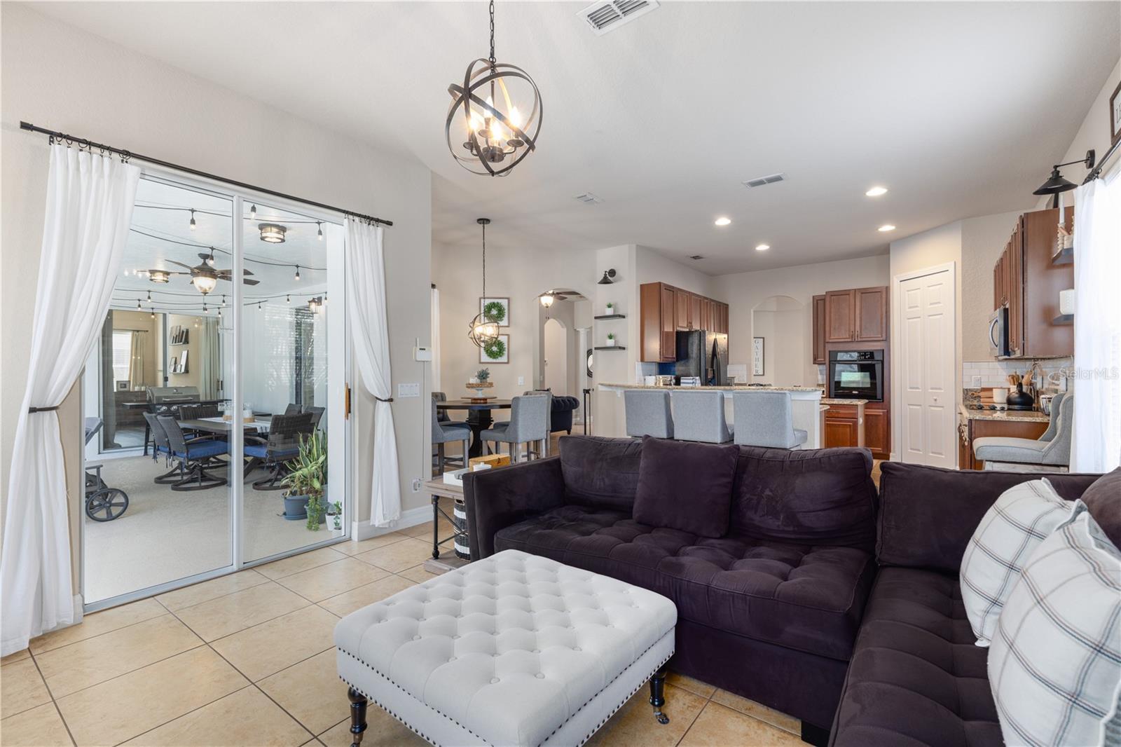 Welcome to your private oasis in the highly desirable Winter Garden, Florida – just 20 minutes from Orlando’s world-famous attractions! This beautifully updated home offers the perfect blend of modern comforts, low-maintenance luxury, and peaceful privacy with no rear neighbors and lush greenery backing the property. Step inside to find elegant tray ceilings, recessed lighting, a dedicated formal dining room, and a flexible extra room ideal for a home office. All bedrooms, loft, and upstairs hallway provide luxury premium laminate flooring. The kitchen shines with fresh granite countertops, brand-new microwave and dishwasher, and plenty of natural light. The primary suite is your personal retreat, featuring a massive walk-in closet, a spacious garden tub, and a large walk-in shower – pure relaxation awaits. Outside, the low maintenance saltwater pool (complete with a new heater) is fully surrounded by a bird cage enclosure for year-round enjoyment without the bugs. Relax on the covered porch sitting area while enjoying total privacy and beautiful greenery. Imagine evenings like this in your own backyard paradise: Additional highlights include: • Pavered driveway and charming courtyard entry in front • Classic tile roof, rain gutters, French drains, and a brand-new irrigation system • Two AC units (only 2 years old), full-house water softener, termite bond, and extra storage racks in the garage • Convenient pool bathroom, small loft area at the top of the stairs, and sidewalks with street lights throughout the neighborhood • All TVs, projector screen in primary bedroom, patio furniture, loungers, and fire pit stay with the purchase! This move-in-ready home sits in a highly rated school district and offers the Florida lifestyle you’ve been dreaming of – privacy, updates, and proximity to everything Central Florida has to offer. Don’t miss this rare opportunity – schedule your private showing today! Video link: https://www.youtube.com/watch?v=tIeVrqvqRHE