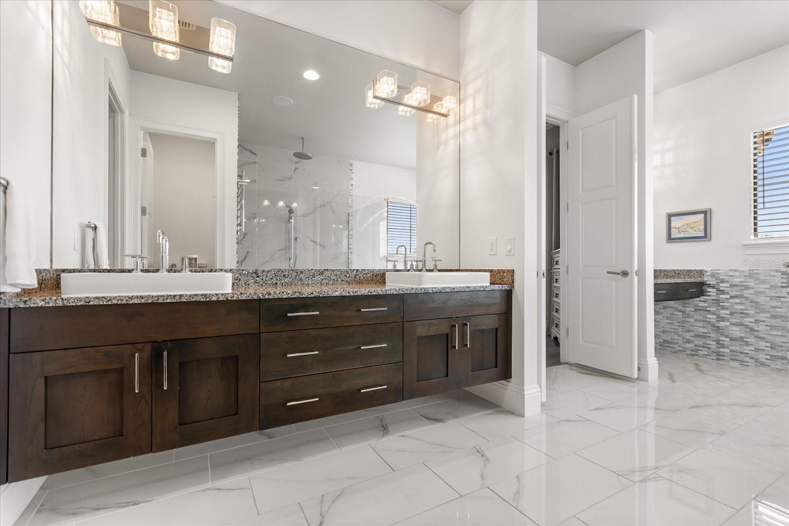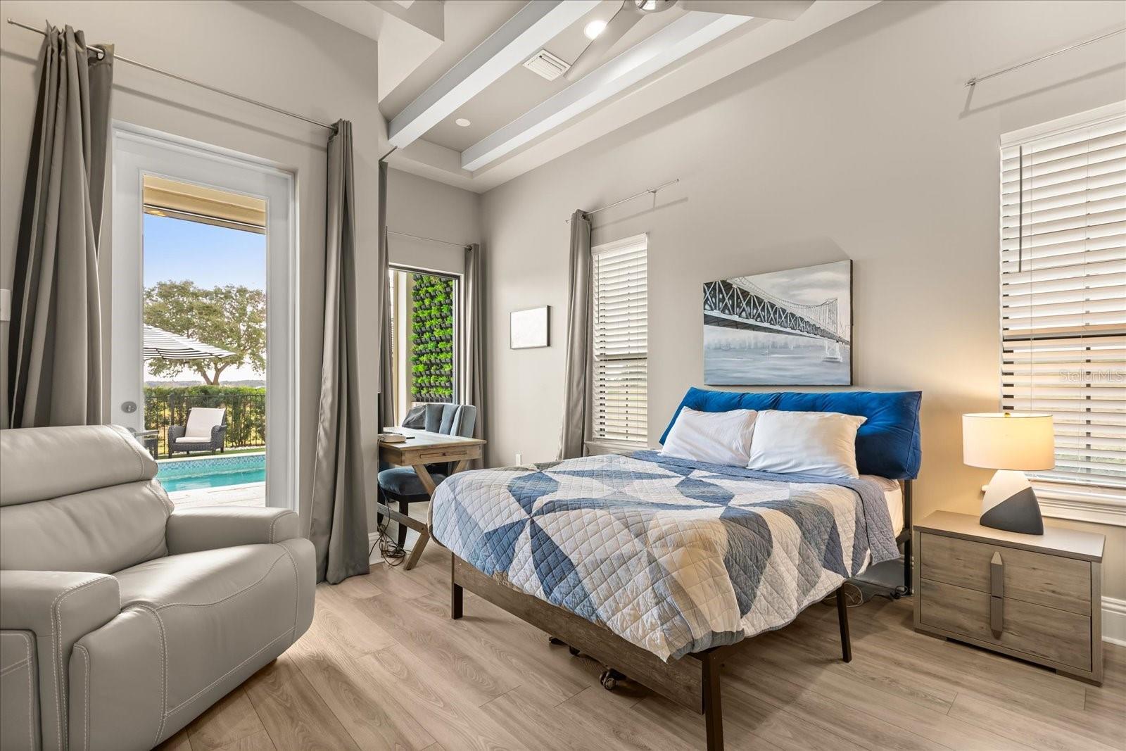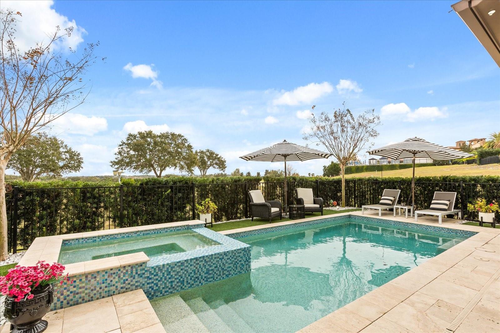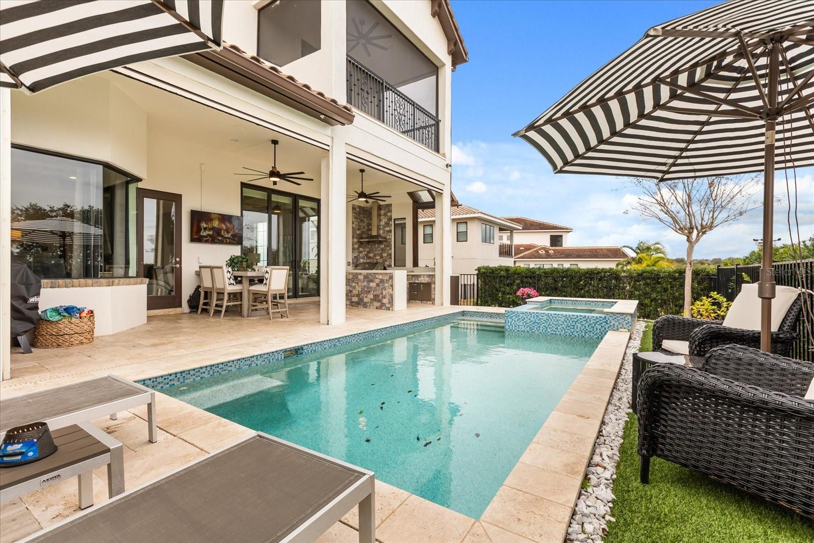 Move in ready exquisite custom home masterfully built by the renowned Vogel Building Group, is perfectly situated in Bella Collina—Central Florida's most exclusive private gated golf community offering an unparalleled lifestyle. Upon entering, you'll be greeted by stunning detail, dramatic high coffered ceilings, and an abundance of natural light that illuminates clean architectural details, elegant designer lighting, and luxurious tile floors throughout. The thoughtful layout includes two expansive primary suites—one on each level, providing exceptional privacy for guests. Each suite boasts resort-style bathrooms, double vanities, spacious walk-in closets, and convenient access to laundry facilities on both levels. The chef-inspired gourmet kitchen impresses with top-tier cabinetry, sleek granite countertops, and striking statement lighting. A bespoke under-stair wine bar adds a touch of sophistication and practicality, perfect for hosting gatherings. Upstairs, a welcoming loft lounge overlooks the main living area below, creating an inviting space for relaxation or casual family get-togethers. Step outside to your own private paradise: a shimmering pool, outdoor summer kitchen, vibrant tropical landscaping, and a fully motorized screened lanai that effortlessly blends indoor and outdoor living. From the second-floor balconies, savor breathtaking sunrises overlooking the pool, or gorgeous sunsets from the front Juliette balcony. Many upgrades have been recently been added to the home. Just steps away, the magnificent Bella Collina Clubhouse delivers an unparalleled country club lifestyle, complete with multiple fine dining venues, spa, Har Tru tennis courts, newly renovated pickleball courts, state-of-the-art fitness facilities offering twenty complimentary fitness classes a week, a magnificent outdoor pool complex and 18 hole Nick Faldo designed golf course with two driving ranges. Enjoy year round social and culinary events for all ages. Located just minutes from Montverde Academy and downtown Winter Garden with easy access to the Florida Turnpike, highways 429 and 408. Don't miss this opportunity to own a true masterpiece in one of Florida's premier resort-style communities! Seller is paying the $40,000 Sports Membership Deposit on behalf of Buyer at closing.