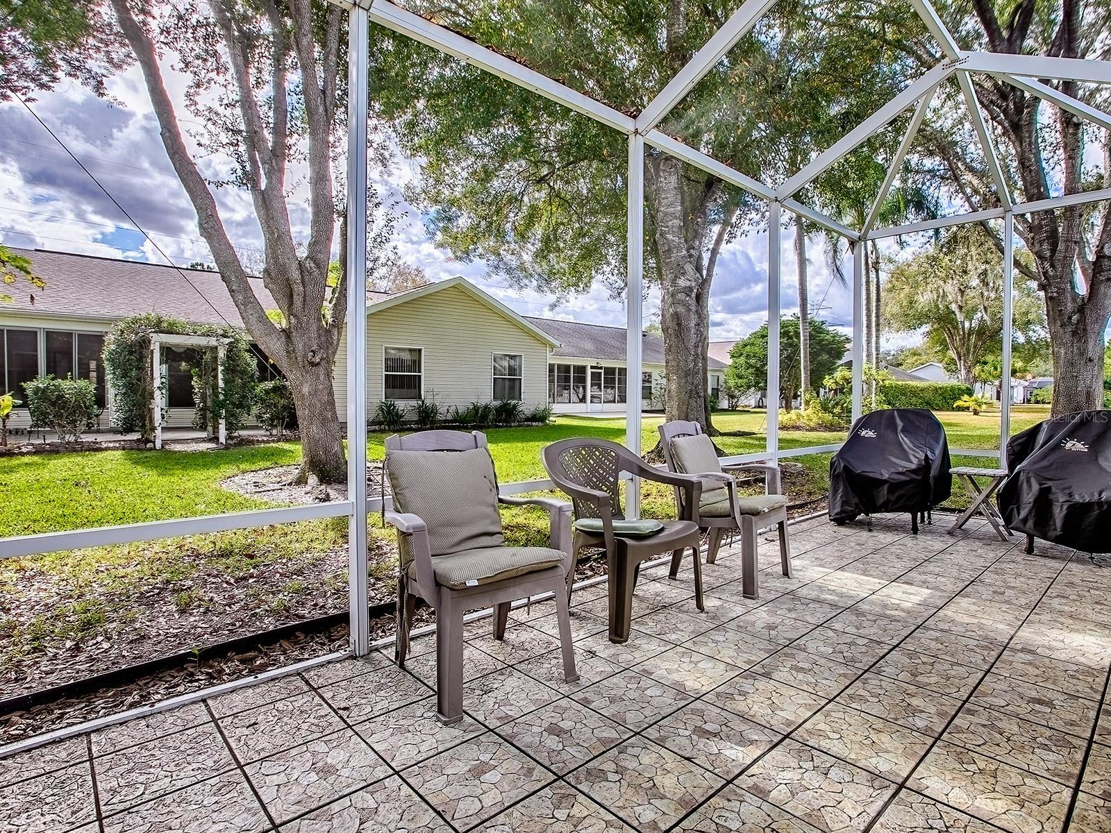 “Move in with confidence—big-ticket updates already done!” Beautifully maintained 2-bedroom, 2-bath home with bonus room located on a desirable corner lot in The Plantation at Leesburg, a premier 55+ gated community. Pride of ownership is evident throughout this well-cared-for residence. Major upgrades include a new roof (July 2023), new A/C (March 2024), and a new refrigerator (2025), offering peace of mind for years to come. The home features a split floor plan, ideal for privacy when hosting guests, and a bright kitchen with a dedicated dining area. The spacious owner’s suite includes a full bathroom and a large walk-in closet. The versatile bonus room is perfect for a den, home office, or craft room. Enjoy Florida living from the screened-in lanai, overlooking beautifully maintained landscaping. Built-in cabinetry in the garage provides ample additional storage. The Plantation at Leesburg is renowned for its resort-style amenities and active social lifestyle, including: Three clubhouses Three pools and spas/hot tubs Two championship golf courses Tennis, pickleball, and softball facilities Two state-of-the-art fitness centers Scenic walking trails Numerous weekly activities and clubs Residents can take their golf cart to the on-site restaurant and lounge, offering weekly entertainment, karaoke, bar bingo, and a variety of popular dinners and appetizers.Low HOA • 24-hour guard-gated security • On-site management * Home is above flood zone level* Home is being removed from the Flood Zone*