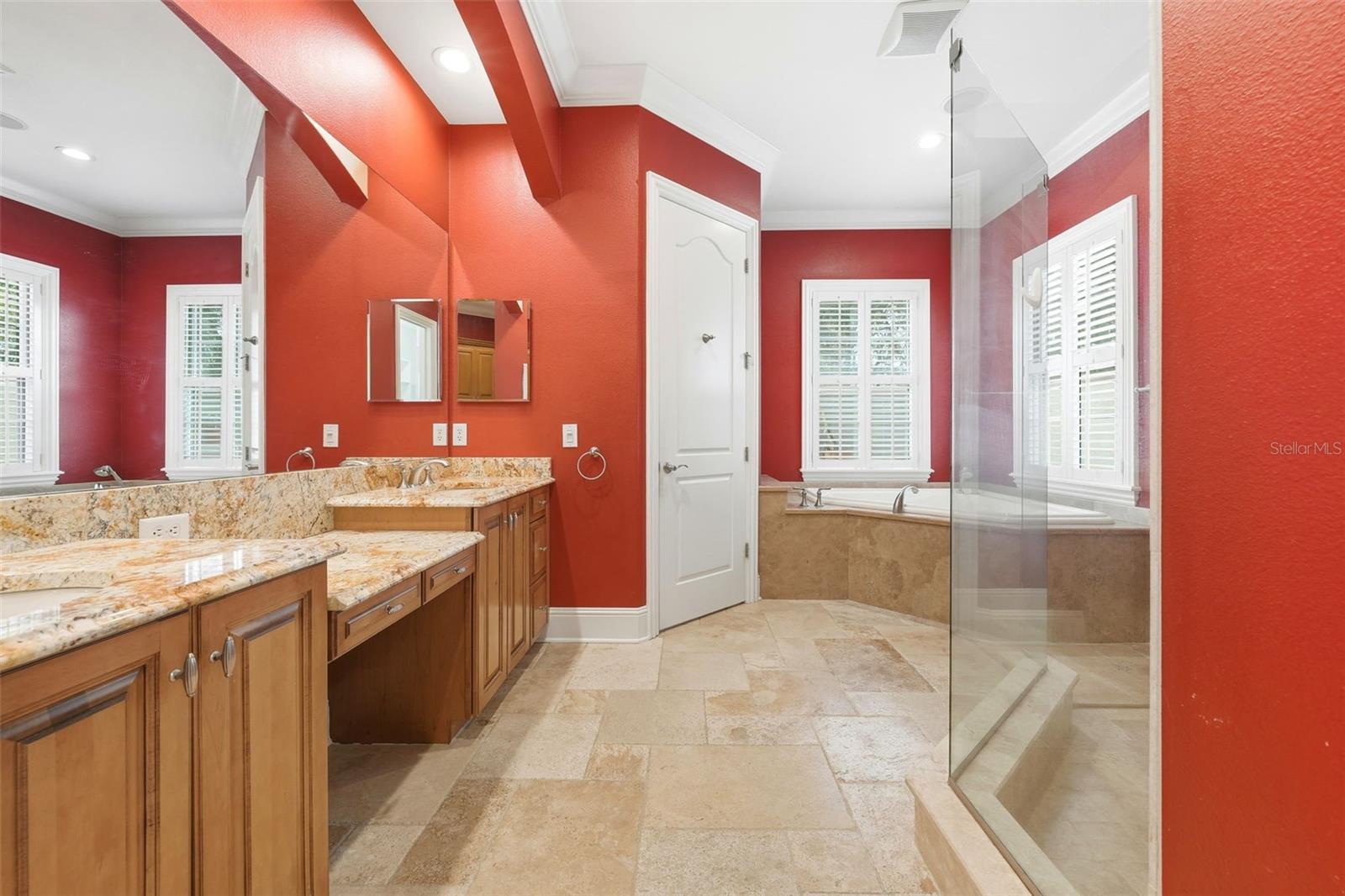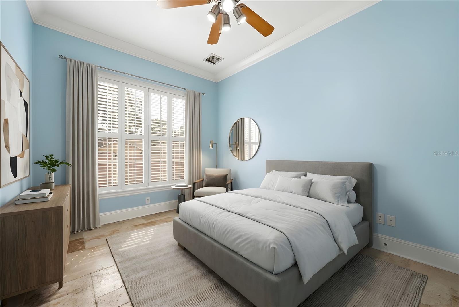 - Built-in Features, Ceiling Fans(s), Crown Molding, Kitchen/Family Room Combo, Open Floorplan, Primary Bedroom Main Floor, Split Bedroom, Stone Counters, Thermostat, Tray Ceiling(s), Walk-In Closet(s), Window Treatments