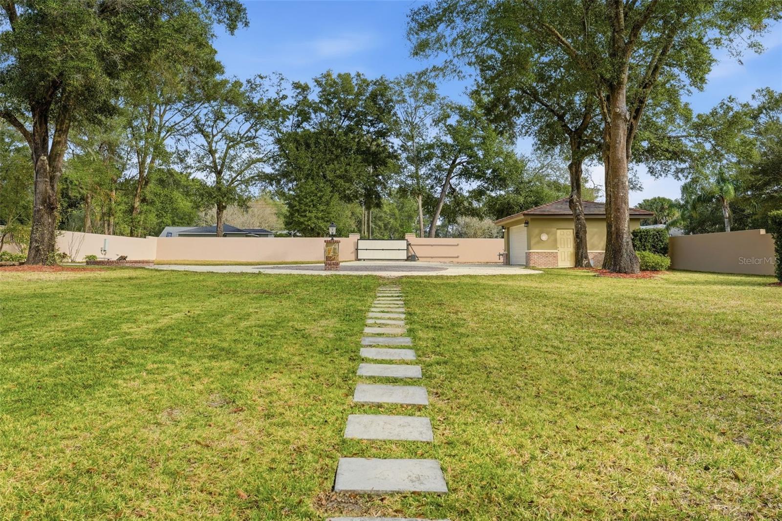 One or more photo(s) has been virtually staged. Meticulously maintained and truly one of a kind, this fully custom 3-bedroom, 2.5-bath residence with a dedicated office/den is situated on 1.1 acres and reflects an exceptional level of craftsmanship, quality materials, and thoughtful long-term care throughout. A custom cherry front door with stained glass sets the tone upon entry, leading into a refined interior featuring travertine stone tile throughout, 10-foot ceilings, 8-foot doors, 11-inch baseboards, crown molding in the main living areas, and tray ceilings with crown molding in the living room, dining room, office/den, and primary suite. Surround sound wiring enhances the living spaces, while fully retractable sliding doors in the living room open to an expansive screened pool deck, creating a seamless indoor-outdoor living experience. The kitchen is both functional and elegant, offering 42-inch cabinetry, a gas cooktop with range hood, double ovens, a brand-new dishwasher, and a breakfast nook overlooking the pool area. Adjacent to the kitchen, the family room features a full masonry wood-burning fireplace and direct access to the outdoor living space. The primary suite also provides private pool access and includes a spacious walk-in closet and an ensuite bath with dual sinks, garden tub, large walk-in shower, and a private water closet with bidet. Bedrooms two and three are joined by a well-appointed Jack-and-Jill bathroom, offering both privacy and functionality. Outdoor living is a focal point of the property, highlighted by a fully screened custom pool and spa totaling approximately 480 square feet, including a heated pool, infinity-style hot tub, waterfall feature, and new pool heater. The outdoor kitchen is exceptionally well appointed with a full masonry fireplace, rebuilt high-end grill with overhead venting, mini refrigerator, granite countertops, and tongue-and-groove ceiling, complemented by a separate outdoor brick fire pit area. Additional features include an oversized 2-car attached garage with epoxy-coated flooring and built-in cabinetry, a detached approximately 480-square-foot garage, cement tile roof with copper flashing, Anderson insulated wood windows, two HVAC systems, a tankless gas water heater, a Honeywell whole-house generator installed in 2024, a 250-gallon gas tank, Icynene foam insulation throughout the attic, full-yard irrigation, a 50-amp RV hookup on a rear concrete pad, new garage door openers, and a security system with cameras accessible via mobile app. The property is fully enclosed with block walls and enhanced by brick-column front entry with automated gates, an automated rear gated entrance, and dual access from Rainey Road and Manistee Road. Located in the Sorrento/Mt. Plymouth area of Lake County, the property offers convenient access to the Wekiva Parkway connecting to Orlando, Orlando International Airport, and regional attractions, while downtown Mount Dora is just a short drive away with waterfront dining, shopping, and year-round events. Surrounded by trails, freshwater lakes, and natural waterways, Lake County provides abundant opportunities for outdoor recreation, with both Florida coastlines reachable for day trips or weekends. With no HOA and a setting that supports golf cart travel in many areas, this exceptional property offers architectural distinction, privacy, and long-term livability in one of Central Florida’s most desirable regions.