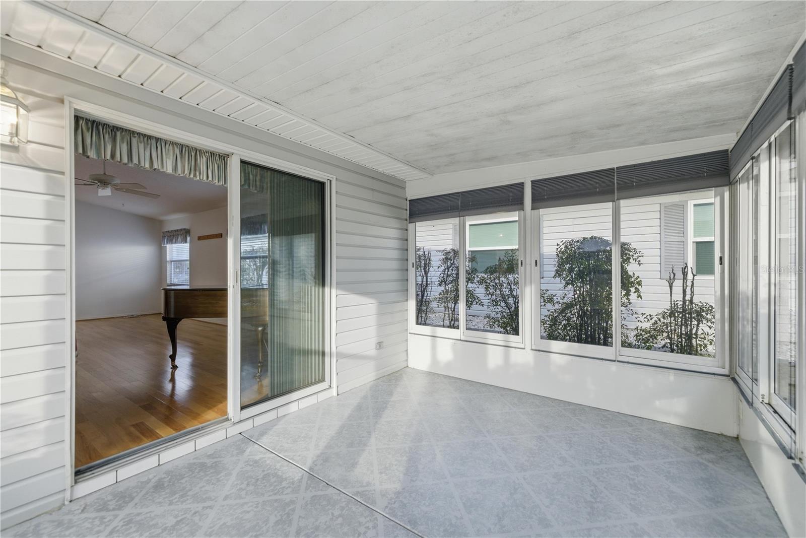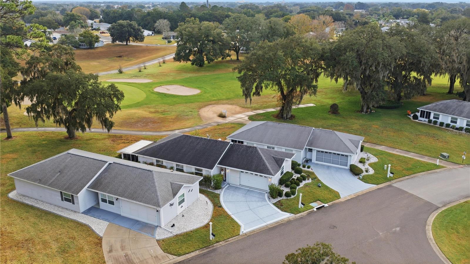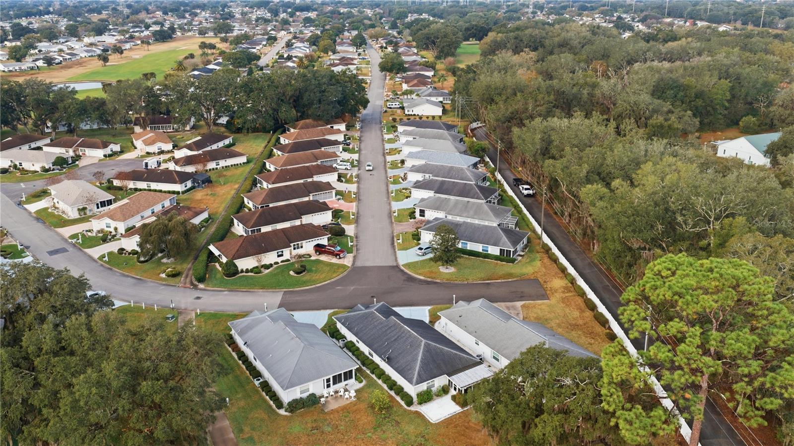 LOVELY VILLA WITH STUNNING GOLF COURSE VIEWS! Located just one mile from The Villages in the highly desirable 55+ Spruce Creek South community, this beautifully maintained 2-bedroom, 2-bath villa offers comfort, convenience, and privacy. The popular VILLA floor plan features a spacious kitchen and attractive wood flooring throughout most of the home. The primary suite includes a walk-in closet and private en-suite bathroom. Relax on the enclosed patio while enjoying tranquil golf course views framed by beautiful matured Granddaddy Oak trees. Situated on a quiet cul-de-sac, this home offers added peace and privacy. In this Villa the resident new owner will enjoy a carefree lifestyle with yard and landscaping maintenance included in the HOA. Restaurants and shopping are easily accessible by golf cart. Golf course villas are rare and there are only a few in the community—this one is a must-see and would also make an excellent seasonal retreat. In General Residents of Spruce Creek South enjoy a vibrant lifestyle with countless amenities, including golf, shuffleboard, pickle ball, tennis, heated community pool, fitness center, separate men’s and women’s saunas, library, nature walks, dog park, Softball field, additional gated fenced in parking if you have a big RV, a boat, extra recreational vehicle or Trailer at an exceptional low cost to residents. There is on-site dining, and there is also a pro-shop which is part of the 18-hole golf course, and an active calendar of clubs and social events. Ideally located near shopping, entertainment, top medical facilities, and just minutes from The Villages, this home truly delivers the perfect blend of convenience, comfort, and community. Don’t miss this extraordinary opportunity—schedule your private or virtual tour today and experience the lifestyle waiting for you at Spruce Creek South.
