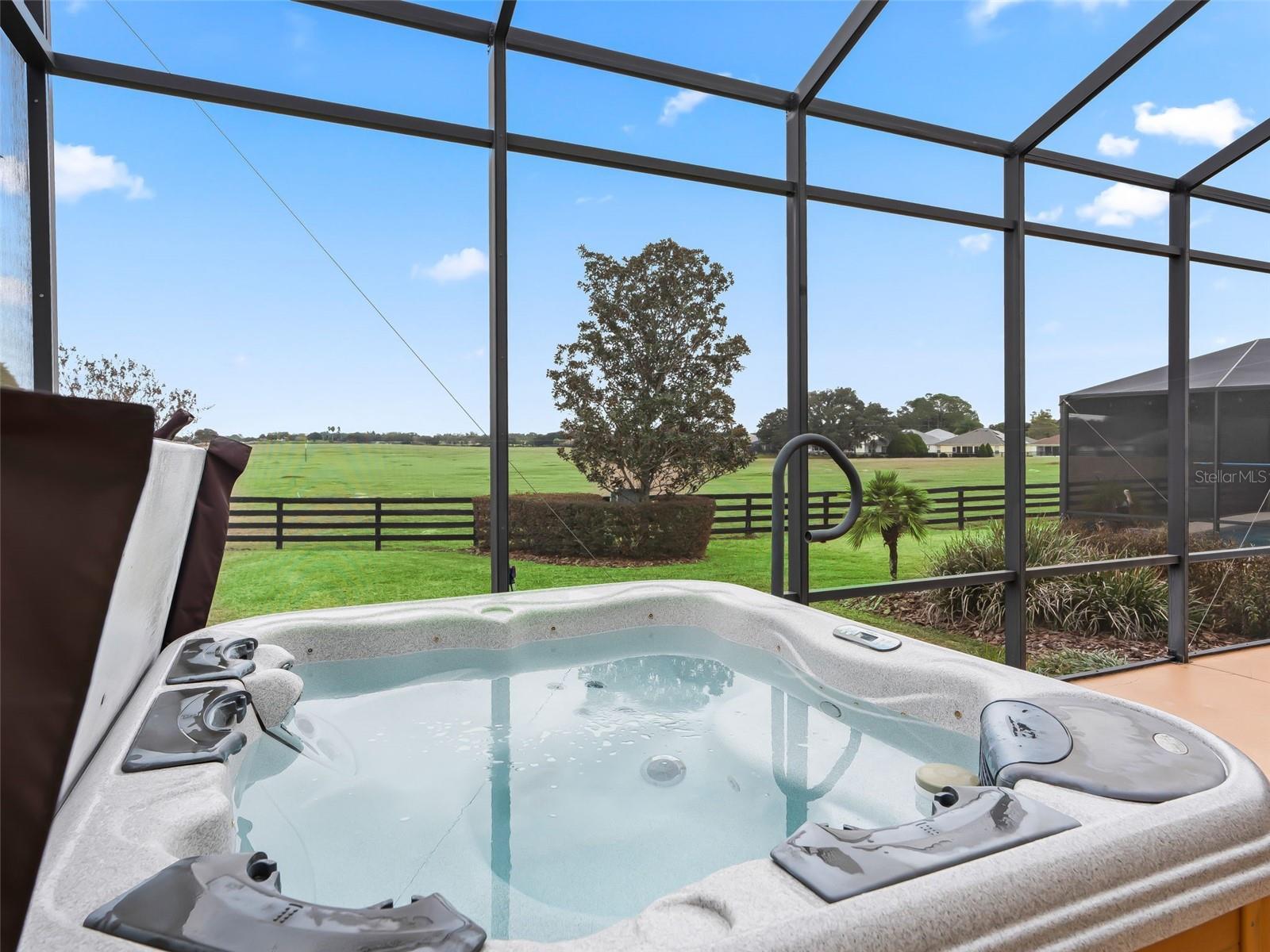 Welcome to this Rancho Mirage (Natchez) model, where thoughtful design meets Florida lifestyle living—Bond Paid! Gorgeous Kitchen with a cooktop and built-in ovens, granite, all stainless steel appliances, and a prep island. Plantation shutters throughout, crown molding in the main living areas and primary suite, and extensive custom cabinetry and shelving that elevate every space. The unique primary suite features a private attached office/craft room with a cedar-lined window seat and storage, plus an ensuite with two walk-in closets, double-sink vanities, and a built-in make-up vanity. The front guest room offers a built-in Murphy bed with lighting, drawers, and shelving. Enjoy a large two-car garage with lots of cabinetry for extra storage, a setback golf-cart garage with room for up to two carts, and a large window. Step outside to the extended lanai with hot tub, fire pit, and fully equipped summer kitchen with custom cabinetry and granite counters, all overlooking the peaceful owl and tortoise preserve—perfect for morning coffee and breathtaking sunrises. New Thermostat 2026, Roof 2023, Lanai Screens 2023, Exterior Painted 2023, Ceramic Tile Sealed 2023, Kitchen Remodel 2012, Dishwasher 2020, Primary Bathroom updated in 2022. Call for your appointment today! Let’s get you living the dream in The Villages!