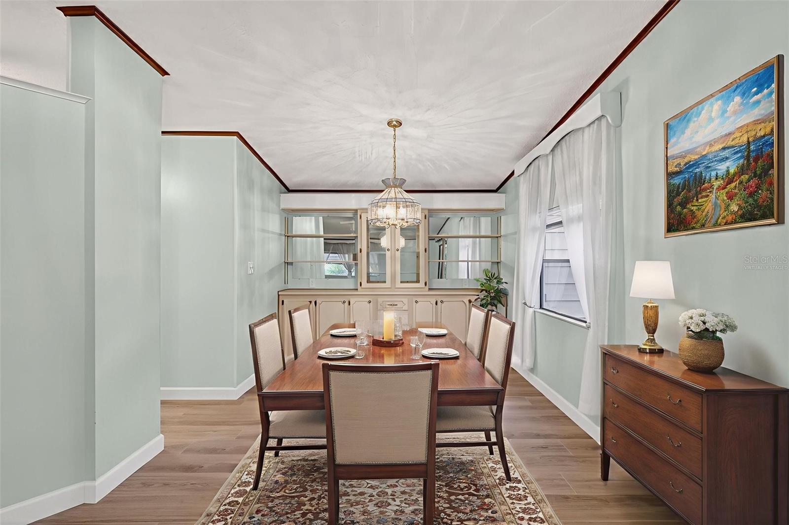 One or more photo(s) has been virtually staged. MOVE-IN READY.. Location, Location, Location.. This 2 bedroom, 2 bathroom Manufactured home located in the desirable 55+ Plantation at Leesburg is ready for its new owners. Conveniently located CLOSE TO THE FRONT GATE, the drive time out of the neighborhood is just a few minutes, while also being just steps away from the club house and several of the amenities that the neighborhood has to offer. There are no rear neighbors as this home provides the rare opportunity to be just steps from the club house! This home has had several upgrades made recently including a FRESH COAT OF PAINT THROUGHOUT THE HOME 2025, NEW ROOF OCTOBER 2023, NEW HVAC 2022, NEW WATER HEATER 2022, NEW KITCHEN APPLIANCES 2024 and NEW LUXURY VINYL PLANK FLOORING installed 2024 throughout the main living area of the home. Driving up to the home you will be pleased by the long driveway, and well maintained yard. Entering the property, you are greeted by the 10X14 Florida Room perfect for a sitting room, TV room, or the perfect space for all of your indoor plants. The living/ dining room combination provides plenty of space for family gatherings and has natural sunlight beaming in throughout the day. The dining room features a built-in with lighting to display your favorite trinkets and formal dining pieces. The kitchen features brand new appliances, cream colored cabinetry, and an eat-in space to enjoy your meals. The laundry room is located in the hallway off the kitchen, which leads to the garage featuring an electronic remote controlled privacy screen, overhead storage, a storage closet, a pegboard workshop area, room to park your car/ golf cart, and a door which leads to the enormous back patio ready for your back yard dreams to come true. The back patio is perfect for potted plants, a grilling area, and some outdoor furniture so you enjoy the back yard year round. Walking back into the home down the main hallway you will find the owners suite with a walk in closet, en-suite bathroom with a garden tub, and built-ins for all of your storage needs. The guest bedroom is large enough to double as a hobby room, man cave, or anything that your heart desires, and has a large closet for additional storage, if needed. Remember you are just STEPS from the club house, a pool, and several outdoor sports - it doesn't get better than this! The Plantation at Leesburg is an active 55+ community with several amenities including 3 club houses, three swimming pools, two 18-hole golf courses, lighted tennis courts, world class fitness centers, men's & women's wet and dry saunas in the fitness center, pickle ball, bocce ball, shuffleboard, softball/ baseball field, horseshoes, beautiful lakes, great fishing, drama clubs, computer clubs, broadway caliber shows, ballroom dancing, billiards, large swimming pools, crafts, full-time activity directors, and Plantation Oaks Restaurant. Call for your private showing today!