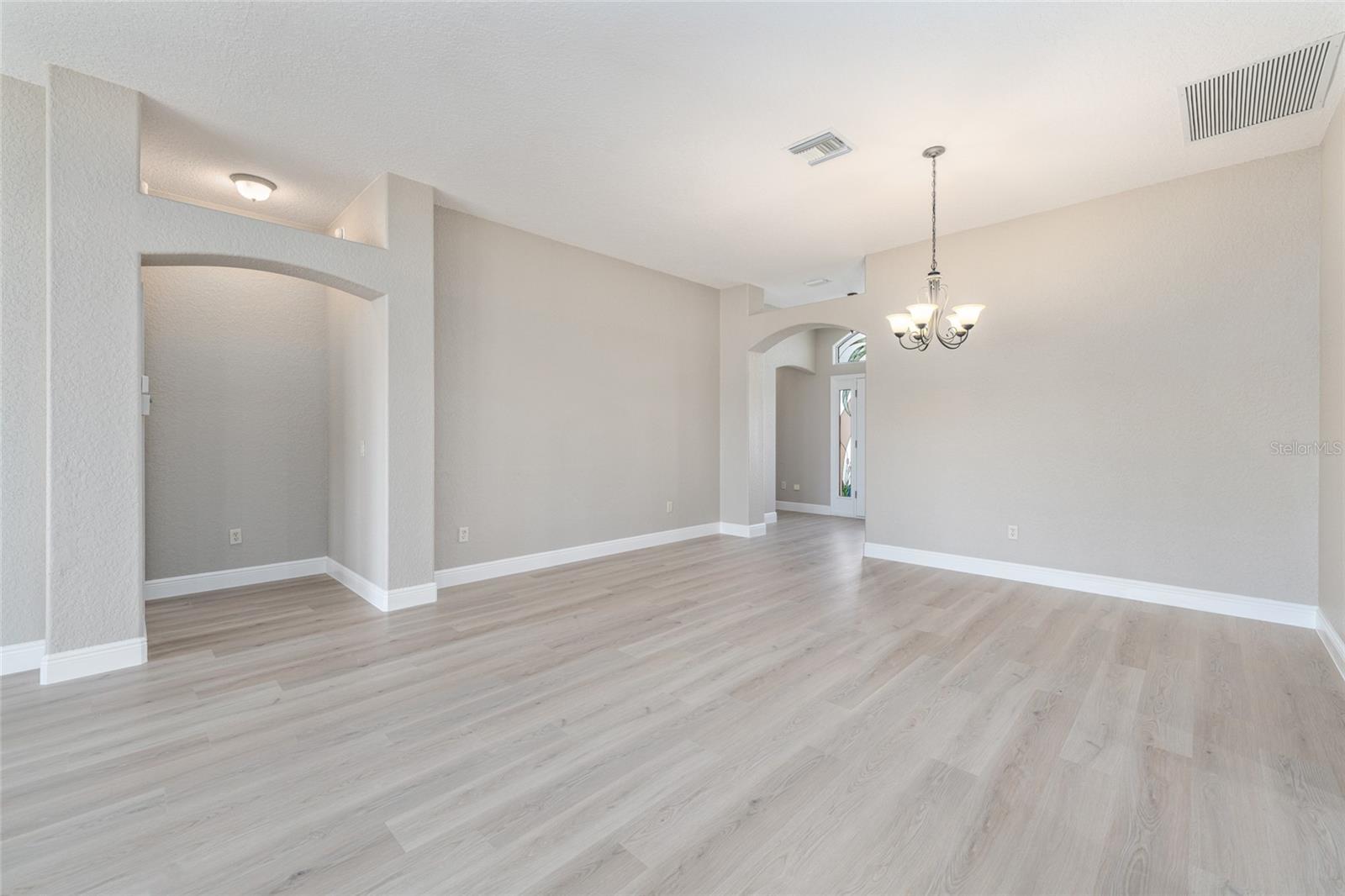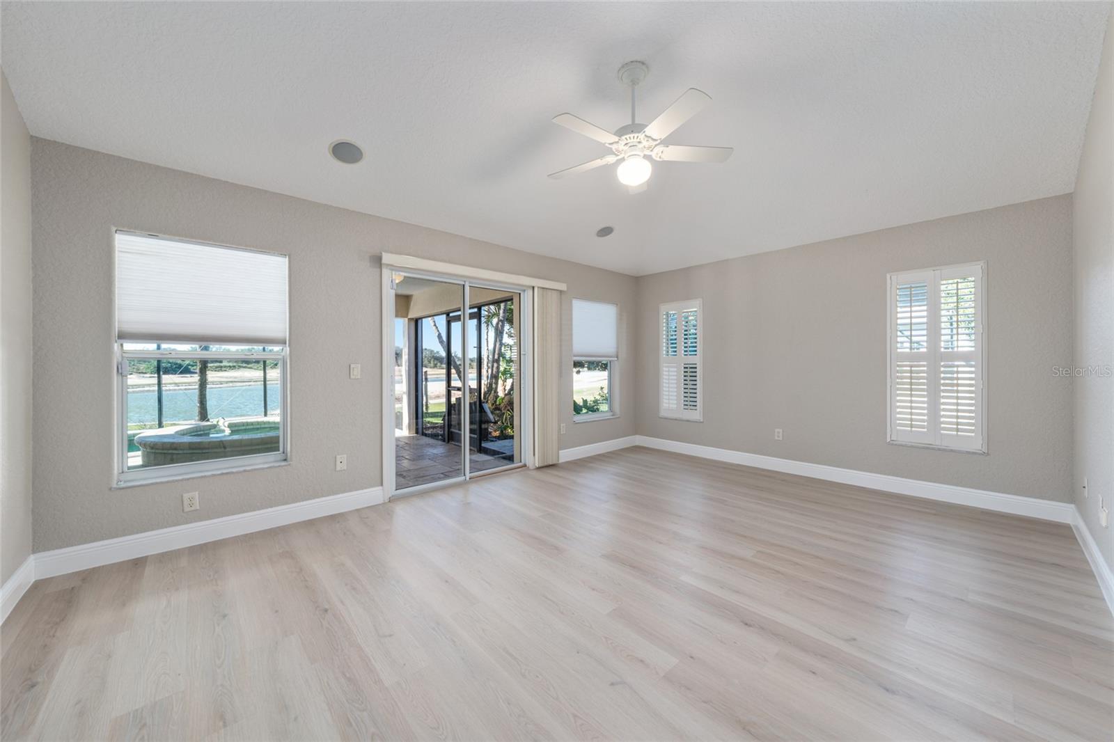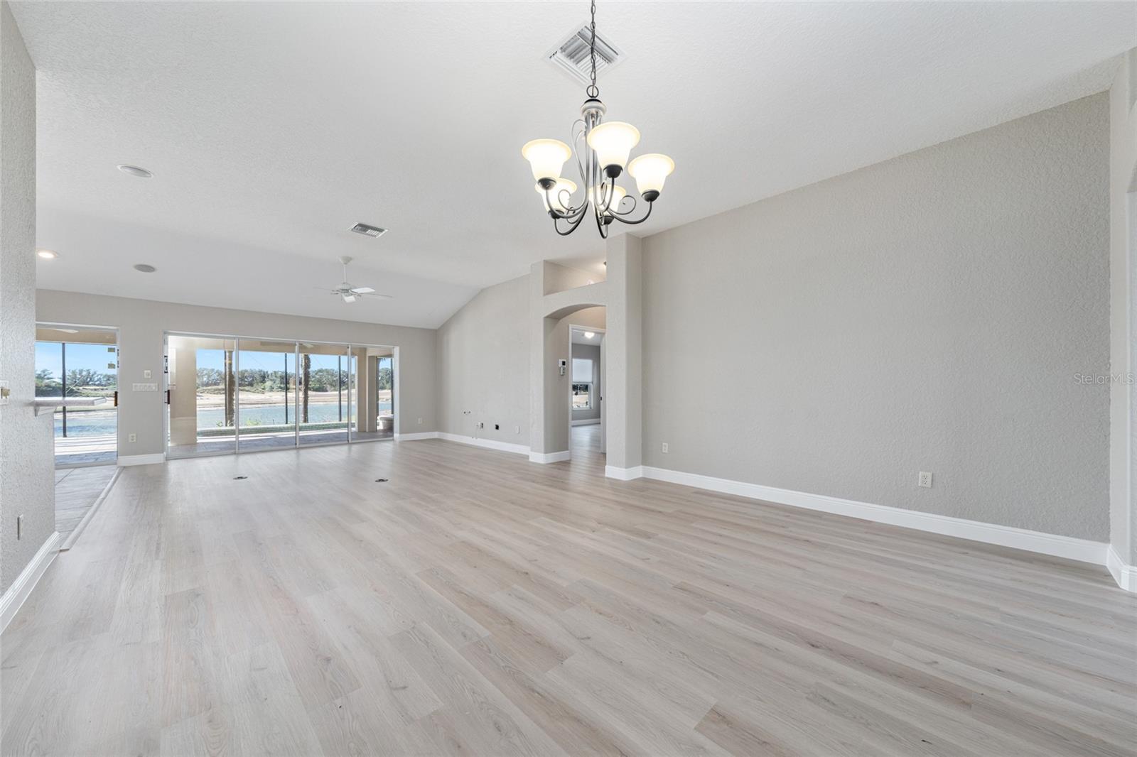 ONE OF A KIND IN SUNSET POINTE! Located on HERON GOLF COURSE with WIDE OPEN VIEWS of the lake, golfers and wildlife on Heron Golf Course, plus FANTASTIC SUNSET VIEWS over LAKE MIONA. The BOND IS PAID on this 3,180 sq ft CUSTOM LANTANA with 2025 ROOF and 2024 HVAC The improvements start at the front of the property with pavers on the driveway and front walkway as well as the added front patio, perfect for an umbrella table or seating group. A beautiful STAINED GLASS FRONT DOOR with sidelights and radius transom welcomes you into the foyer with IMMEDIATE VIEWS to the lanai, golf course and lake. From here, the Living and Dining areas are open to the Kitchen and Breakfast area, all of which have DIRECT SLIDING DOOR ACCESS TO THE LANAI/POOL/PATIO for EASE OF ENTERTAINING and every day living. The open kitchen faces the rear of the home, with great water and golf views! There is new LVP flooring through the living and dining areas as well as the primary suite and guest wing. Kitchen, breakfast area and laundry room are tiled. All of these areas have new 5 1/4" baseboards installed, plus new interior paint including walls, doors and trim. The Primary Suite with golf and water views is located at the rear of the home and has ensuite bath, walk in closet, double vanities, walk in shower, lighted ceiling fans and multiple windows in bedroom and bath for great natural light. The GUEST WING is located at the front of the home and includes TWO LARGE GUEST ROOMS, both with ceiling fans and closets, a hall linen closet and a GUEST BATH with tub/shower combination. There is an INSIDE LAUNDRY ROOM with additional open storage and cabinets A 450 sq ft first floor BONUS ROOM with air conditioning, lighted ceiling fans and FULL BATH plus a second story air conditioned LOFT that spans the back of the home and measures approximately 700 sq ft are accessible through the breakfast area or the Laundry/Pantry room. This bonus room offers a variety of uses and has access to the garage, lanai and LOFT which has WINDOWS ALL AROUND FOR FANTASTIC PANORAMIC VIEWS. The EXPANSIVE SCREENED PATIO which includes a JETTED POOL & SPA and COVERED LANAI provides an additional 1,100+ SQ FT OF OUTDOOR LIVING SPACE! . The home also has natural gas for heating and cooking, plantation shutters and a whole house vacuum system. An oversized two car garage with golf cart garage has fresh paint on the walls and the floor is newly refinished by Garage Flooring Pros. This property is ideally located minutes from Lake Sumter Landing and halfway between Spanish Springs and Brownwood Paddock Square. The golf course is under renovation and expected to be completed by spring. Some golf course photos were taken before renovation began.