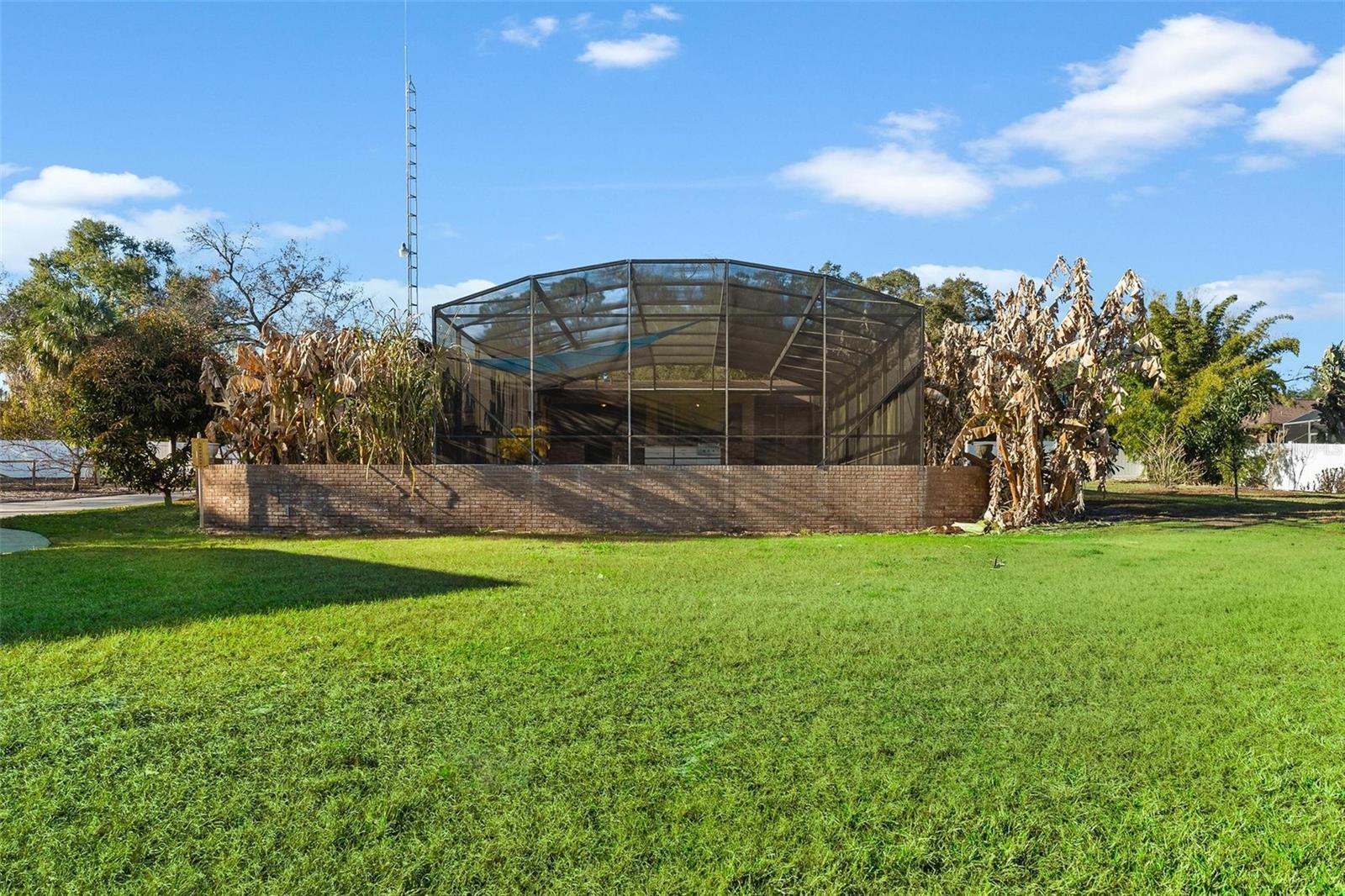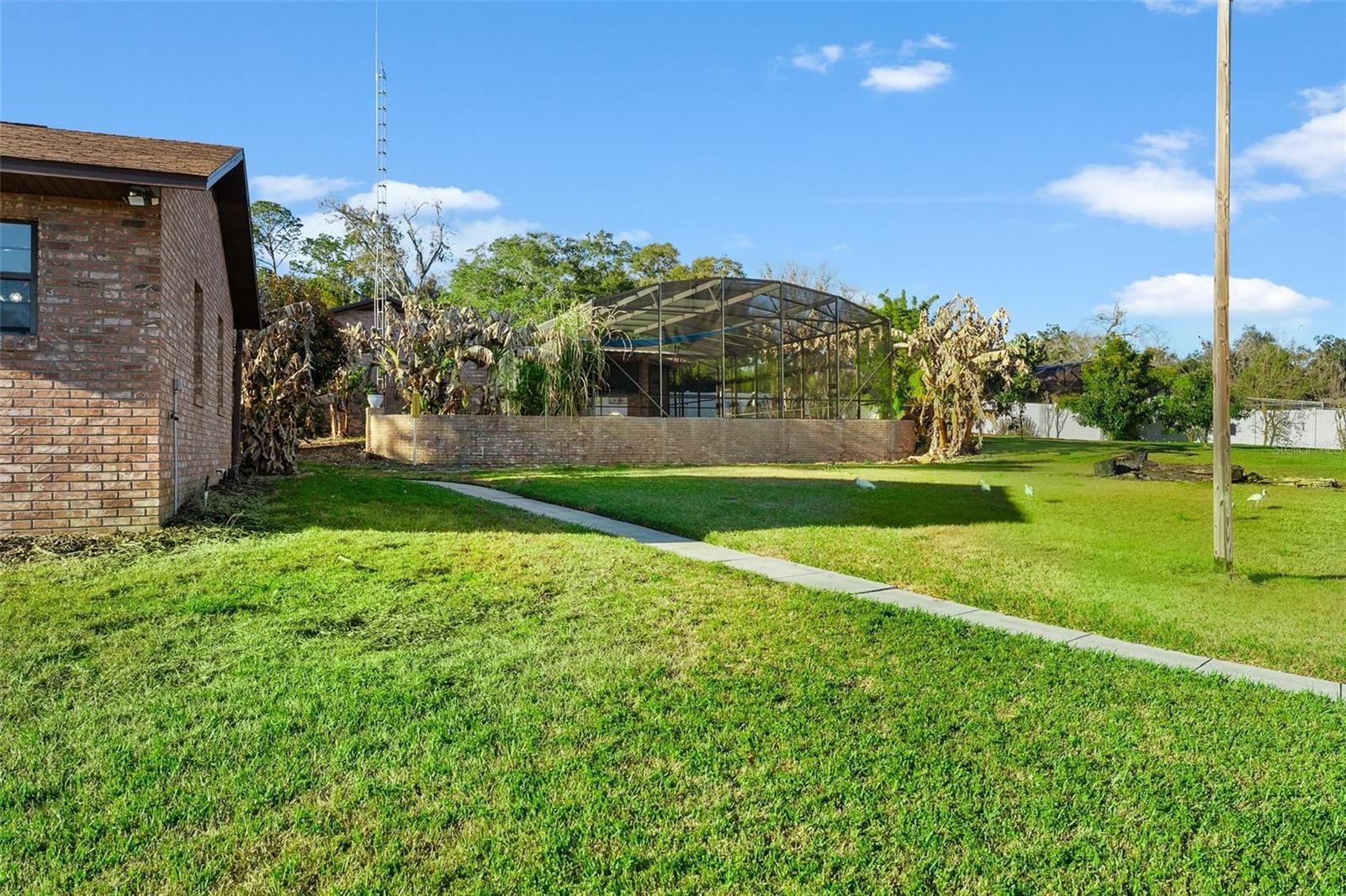 CHAIN OF LAKES CANALFRONT ...Two Homes/ One Price with POOL! Room for everyone plus store up to 6 cars+ in the Garages!! .NO HOA on this 1.23 acre plus property with a variety of producing fruit trees to enjoy including citrus, apple, Pear, Key Lime, Pineapples, Mango and more...FISH FROM YOUR OWN BACKYARD and room for 2 boats in your DOUBLE BOATSLIPS! Also, enjoy the ability to have a direct community boat ramp access next door!! Main house with Roof Replacement in year 2025 boasts a spacious 3-bedroom, 2 bath home with 1736 living space with an attached 2 car garage that features a mini split AC system to cool! Home boasts a wood burning fireplace with an antique/historic 1700's barnwood mantle in the Family Room to enjoy! Original living room converted to a formal dining area. Kitchen has been remodeled and enhanced with a "Chefs" Island, updated appliances and beautiful Granite countertops! Primary Bedroom with Tray ceiling and crown molding features a walk-in closet and spa like bath to include a large soaking tub for "Bubble Bath "relaxation...double sinks, and separate shower!! Split bedroom design gives privacy to bedrooms 2 & 3 that share the guest bath with an entrance to the pool/ patio area! You will love the adorable 2 bedroom/ 1 bath cottage with 1161 square feet of living space, to include a kitchen/ living room area, inside laundry room and an attached 28 x 29 (room for 4 vehicles) garage... ready for the teenager or "mother-n-law! Cottage room dimensions...Living Room 14 x 13.9, Kitchen 11 x 8, Bedroom 1 12.6 x 11.3 Bedroom 2 12.5 x 11.7.and Bath 11 x 7.6 Two Drain Fields, Well and Septic on Property. Enjoy the woodshed great for storage of Firewood and Garden Tools...SPARKLING POOL with diving board awaits your summer fun is oversized and screened in ready for making happy memories with friends and family. BBQ's will be easy with the built-in grill and outdoor kitchen area with sink!! RARE FIND...DON'T MISS THIS OPPORTUNITY!!