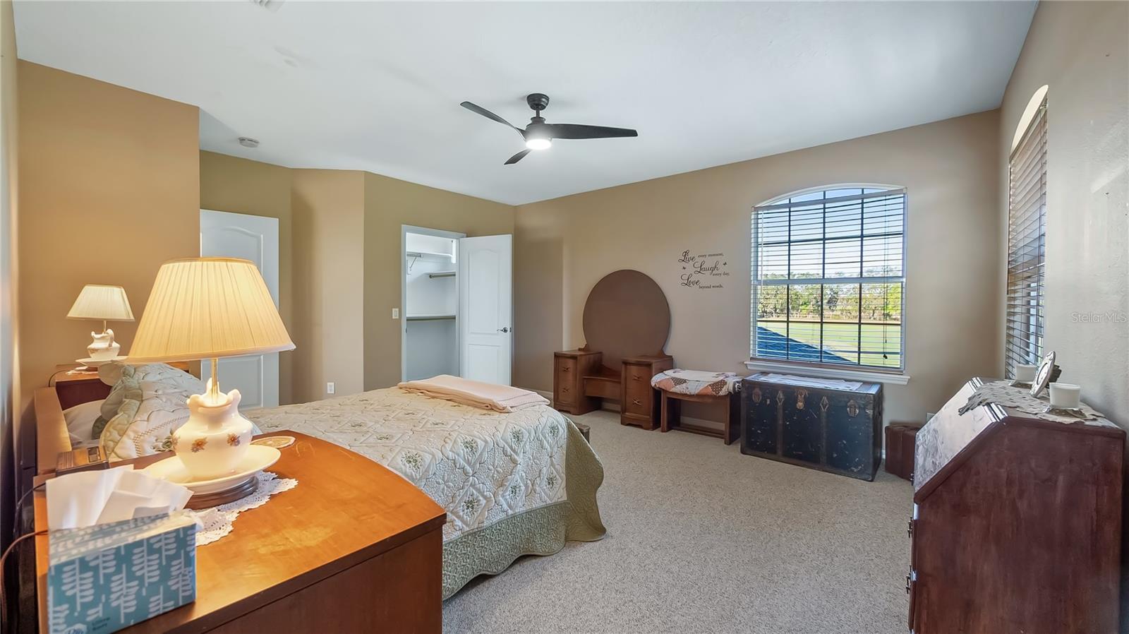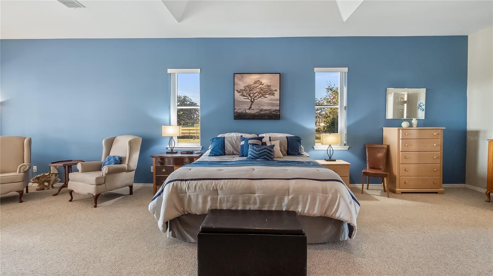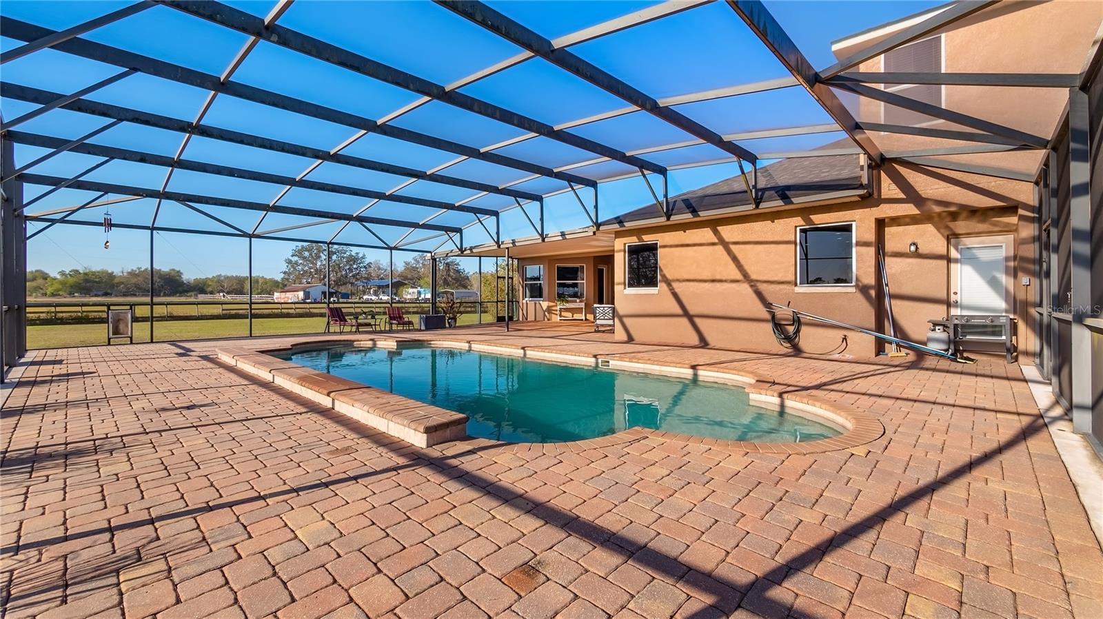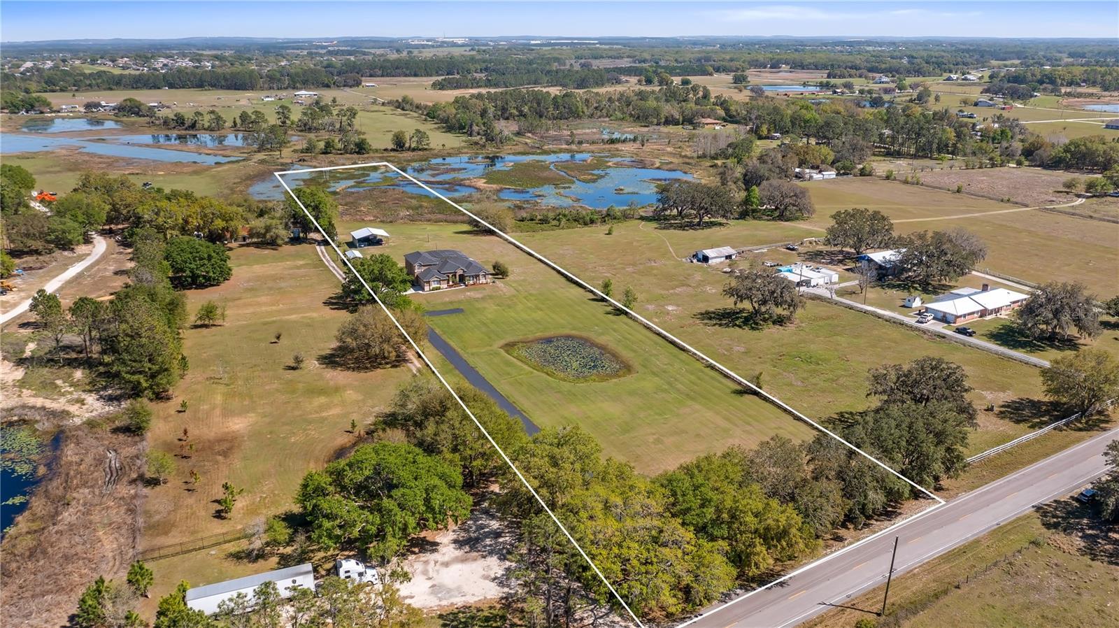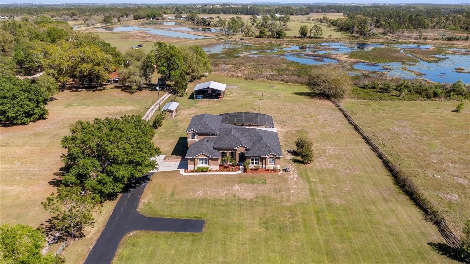 Welcome to your dream home, a stunning five-bedroom, four-bath property set on five acres of beautiful land. This exceptional residence offers comfort and luxury, featuring a thoughtfully designed floor plan that seamlessly blends formal and casual living spaces. The home provides a peaceful retreat while remaining conveniently close to all amenities you need. Upon entering, you’ll immediately appreciate the spacious and inviting layout. The main level boasts four generously sized bedrooms, each filled w/natural light and offering ample walk-in closet space. The oversized primary suite is a sanctuary, complete with large walk-in closet and a luxurious en-suite bath. For added convenience, the main level also includes two additional full baths. Upstairs, a large loft provides plenty of flexibility for a home office, entertainment area or additional living space. A private bedroom and full bath upstairs make an ideal guest suite or a quiet retreat for those seeking extra privacy. This home is loaded with modern features and recent upgrades, including a fiber modem with speeds of up to one gig, delivering fast and reliable internet for work, streaming or gaming. The downstairs air-conditioning unit has recently been health-checked by Rinaldi’s to ensure efficient, year-round performance, the upstairs is new and an additional air-conditioning unit has been installed in the garage. The home is also equipped with a fully owned surge protector system for added peace of mind. The garage has been updated with a fresh epoxy floor, offering a clean and durable finish. Major systems have been thoughtfully maintained and replaced, including the roof, well pump and water heater. New gutters have also been installed around the home, enhancing drainage and long-term protection. Outdoor living is equally impressive. A 36-by-36-by-12-foot pole barn with separate 200-amp service and water provides endless options for storage, hobbies or workshop. Whether you’re a car enthusiast, DIYer or simply need space for recreational equipment, this barn delivers. Enjoy peaceful mornings in the beautiful lanai with eastern exposure, where stunning sunrises can be enjoyed and even a rocket launch. The lanai overlooks a tranquil no-bank lake, further enhancing the serene setting of this private estate. Wildlife enthusiasts will appreciate abundance of native birds, including hawks, owls, cardinals, eagles, falcons and sand cranes, making this property a nature sanctuary. For recreation and relaxation, the property features an 18,000-gallon saltwater sports pool with water features and lighting, powered by a variable-speed Pentair pool pump, ideal for swimming, entertaining or unwinding. The yard is a gardener’s dream, offering fertile soil suitable for year-round vegetable gardening, with a dedicated garden area ready to produce abundant harvests. An air-conditioned shed provides a comfortable and practical space for gardening tools/equipment. This five-acre parcel includes approximately 3.5-plus acres of dry, usable land with no flood insurance required. With no HOA, you’ll enjoy the freedom to make this property your own. A lighted, gated and freshly sealed paved driveway leads to the home, providing privacy, security and a welcoming arrival. This remarkable estate balances seclusion, modern upgrades and natural beauty, a one-of-a-kind place to call home. Don’t miss the opportunity to own this incredible property and schedule your private showing today.
