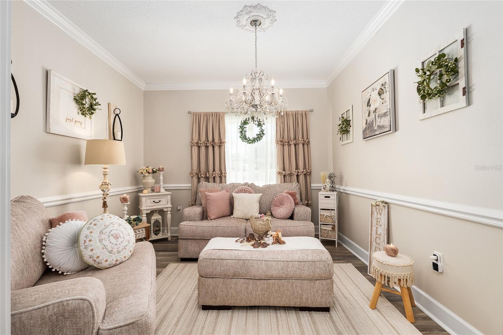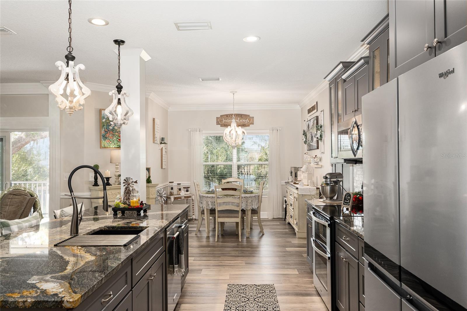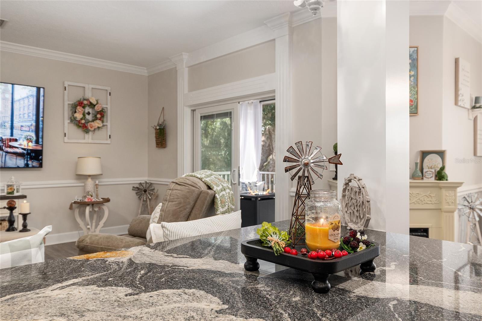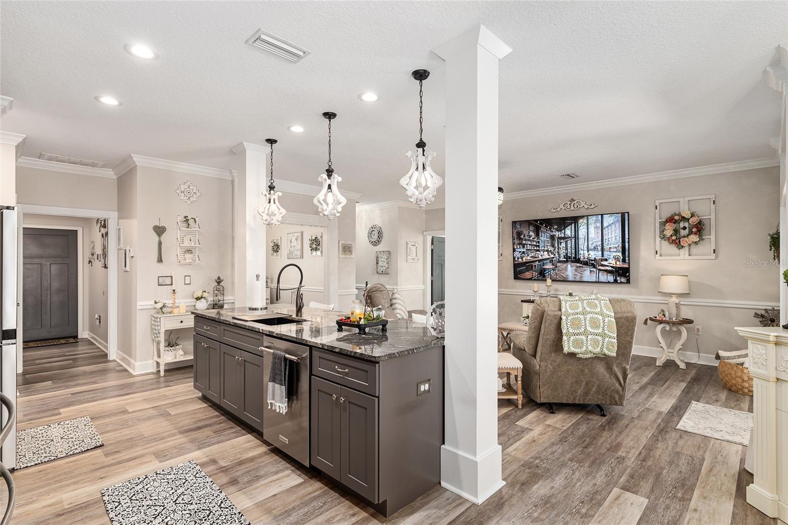 - Built-in Features, Ceiling Fans(s), Chair Rail, Crown Molding, Eat-in Kitchen, Kitchen/Family Room Combo, Open Floorplan, Stone Counters, Walk-In Closet(s), Wet Bar, Window Treatments