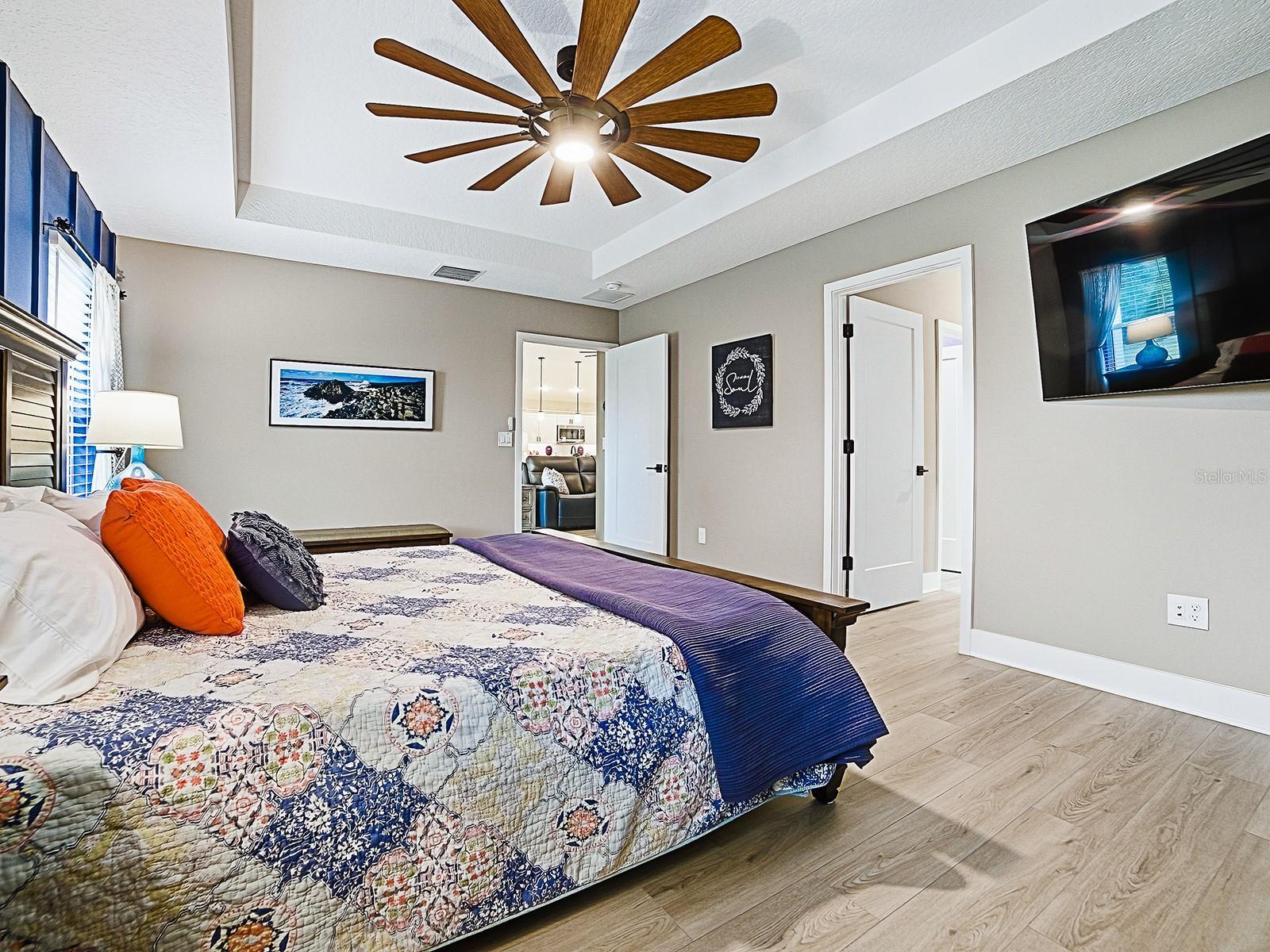 - Ceiling Fans(s), Eat-in Kitchen, High Ceilings, Open Floorplan, Primary Bedroom Main Floor, Solid Surface Counters
