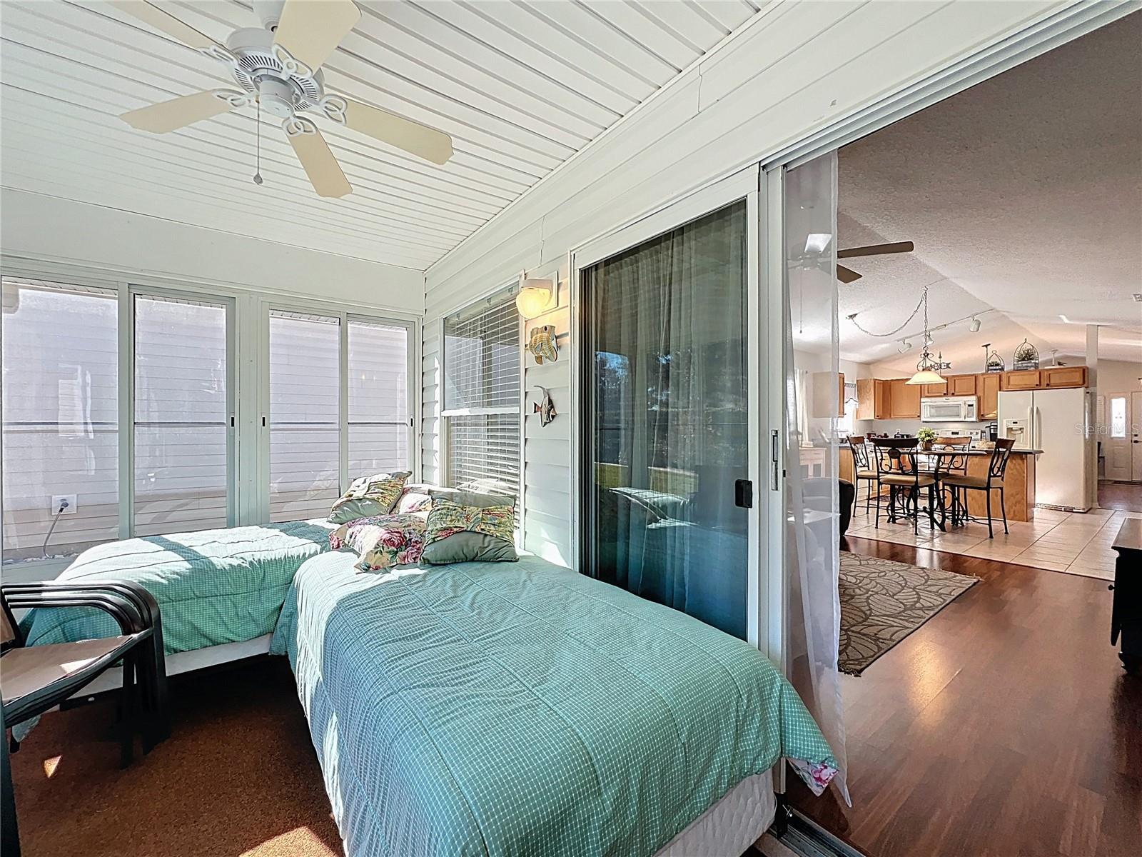 Welcome home to this beautifully maintained 2-bedroom, 2-bath single-family residence located in a gated 55+ golf community offering relaxed, resort-style living. Filled with abundant natural light and a cozy from porch, this bright and airy home features an open floor plan with both a formal living area and a comfortable family room, creating distinct yet connected spaces for entertaining and everyday living. The eat-in kitchen opens to the living room, while the separate dining room is attached to the family room, with the kitchen thoughtfully positioned between the two—providing both functionality and privacy while maintaining an open, welcoming flow. Spacious bedrooms offer comfort and retreat, and the home’s layout enhances its open yet well-defined feel. Recent updates include a roof in 2021, resurfaced kitchen counters and master bath shower, new shower glass enclosures, fresh interior paint, front door paint and garage door paint! The yard was also resoded! Enjoy additional living and entertaining space in the screened-in lanai, perfect for morning coffee or evening gatherings. Residents have access to outstanding amenities including three community pools, two golf courses, a clubhouse with restaurant, tennis courts, and pickle ball courts. Golf View features a secondary quarterly HOA covering lawn maintenance and granting exclusive access to a private pool reserved for Golf View residents. This home offers easy, low-maintenance living in a vibrant community designed to enjoy every day.